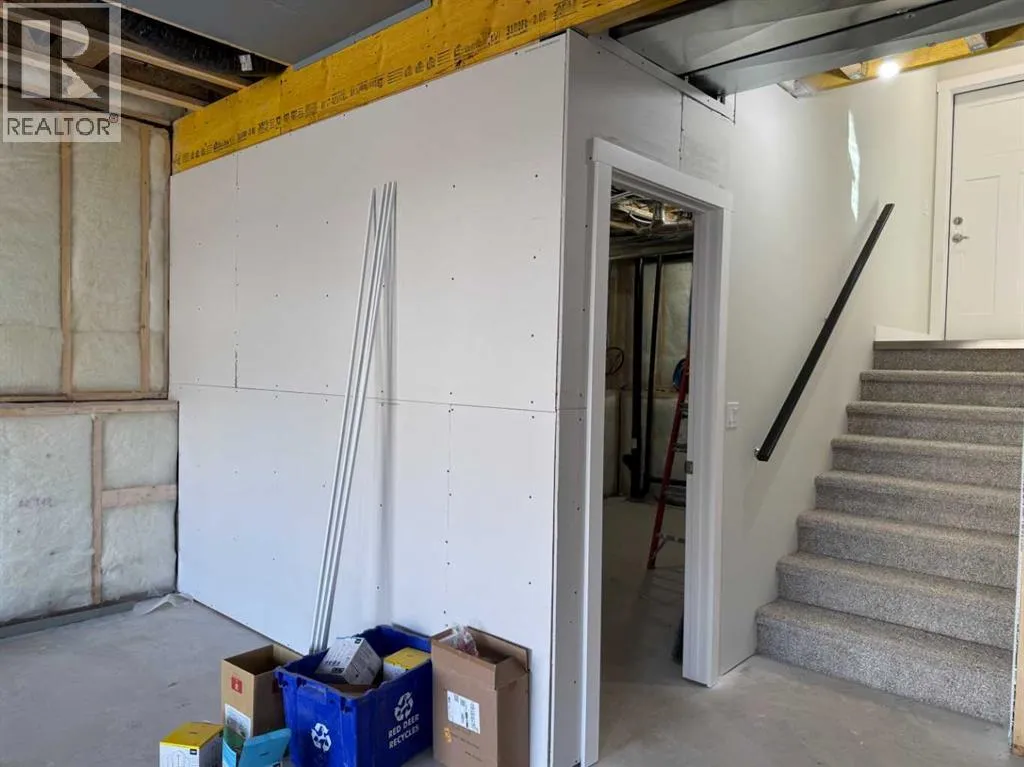 IN A DESIRABLE QUIET CLOSE LOCATION IN VALLEY RIDGE BLACKFALDS WITH A WALKOUT BASEMENT! WELCOME TO THIS SAN MARIA HOMES NEW BUILD MODIFIED BILEVEL! Enter to a spacious and tiled entry leading to the MAIN LEVEL OPEN PLAN LIVING/DINING/KITCHEN with luxury vinyl plank flooring, vaulted ceilings and an eye-catching electric fireplace with a floor-to-ceiling accented stone surround. Crisp white linen paint throughout! Impressive and Functional Dream Kitchen with white cabinetry/quartz countertops/center island with extended breakfast bar/pantry and all stainless steel appliances included (fridge with water!). The dining area, adjacent to the kitchen, is a generous size with a garden door out to the deck with a metal railing surround. Two secondary bedrooms on the main level and the main 4 pce bath with quartz countertop. The Primary Bedroom on the upper level has a walk in closet and 4 pce ensuite with quartz countertop and tile floor. The WALKOUT BASEMENT is open for development with 9 ft ceilings and sliding doors leading out to the concrete patio.....The basement also has roughed-in infloor heat and a furnace /laundry room combination that is framed and drywalled... The backyard is fenced on two sides! TAXES NOT YET ASSESSED..... (id:27476)