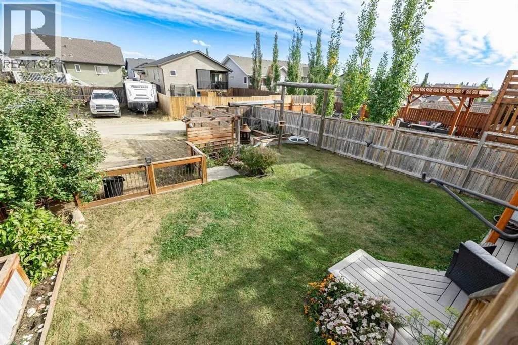 This inviting bilevel home is the perfect blend of function and location! Offering 4 bedrooms, 2 full bathrooms (including a private 4 piece ensuite in the primary), and an open floor plan designed for modern living, it checks all the boxes. Kitchen has a garden door leading to the East facing backyard. Warm and inviting, with a mix of laminate flooring and carpet. The fully finished basement provides a spacious family area 2 bedrooms,separate laundry area tucked away plus a rough-in for an additional bathroom, giving you room to grow. Step outside to the fully fenced yard, with an upper and lower deck ,landscaped and ready for summer fun with the kids or family pets, even adequate space for garden beds with rear parking for 2 vehicles.There is even a possibility for RV parking or building a detached garage. Ideally situated close to the new school, nearby parks, and local amenities, while keeping your commute simple with quick access to Hwy 2A and Hwy 2. A wonderful home in a family-friendly location awaits you and your family! (id:27476)