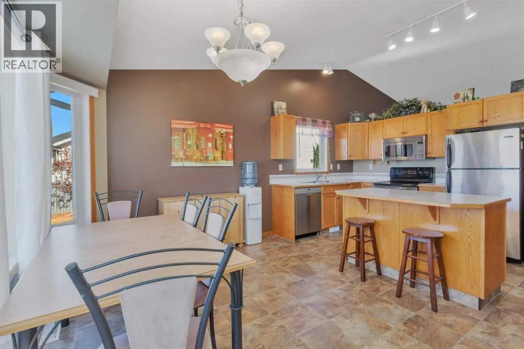 This is a desirable Classic floorplan, fully developed 2+2 Bedroom Bi-level with 3 baths and an Attached Garage. Main floor has Dark maple hardwood, Vaulted ceilings and an open Kitchen Dining area. Kitchen Has an island and classic oak cabinets, a pantry and the dinette looks right onto the deck and backyard. Primary features a 3 pc. ensuite. Downstairs for family comfort is a large Familyroom with a Gas Fireplace. 2 Additional Bedrooms and the utility/laundry room. Upgrades include; Shingles 1 year old, Furnace 1.5 years old, Hotwater tank 2 years old. A/C keeps you cool on hot Summer days. The massive Backyard is great for Children to play in. Large Deck expands right across the rear of the home and features a dog run underneath. Located close to local parks and playgrounds in a family area. (id:27476)