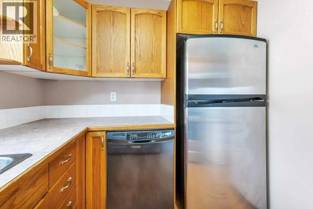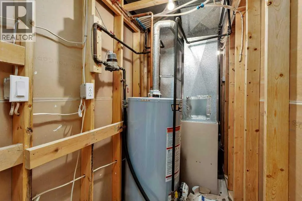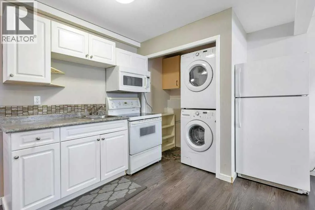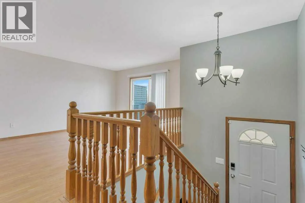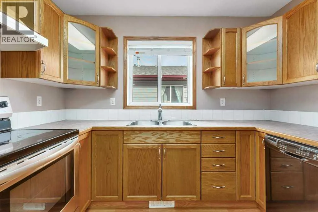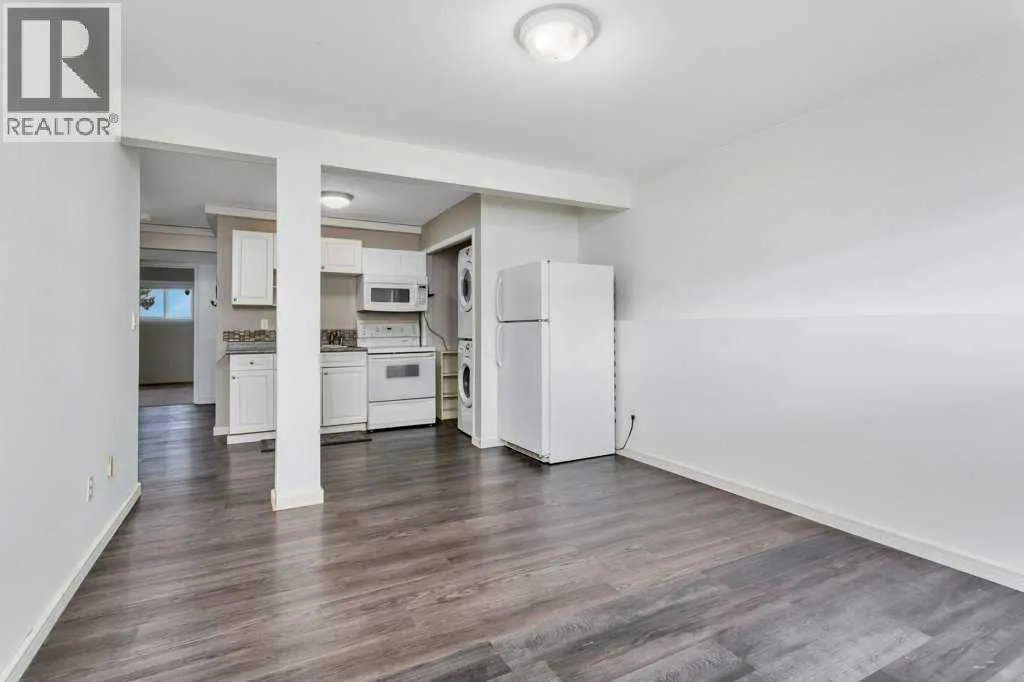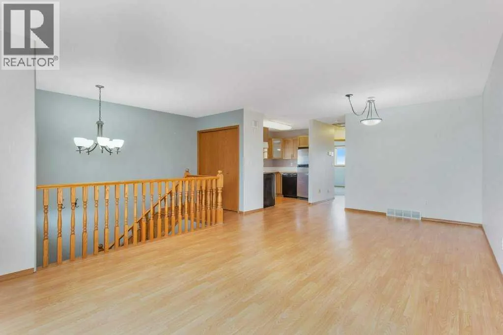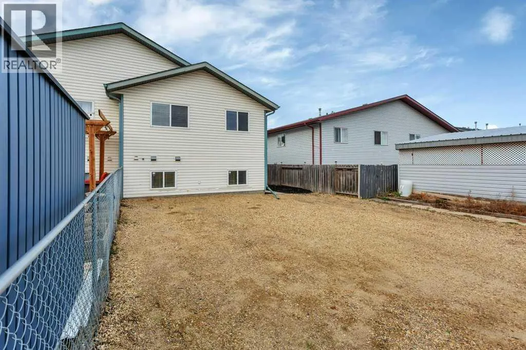 MOVE IN READY HALF DUPLEX IN BLACKFALDS. Excellent starter home or revenue potential here. You'll appreciate the neutral paint colors throughout with a bright open concept floor plan. The functional kitchen offers all appliances, ample cabinet & counter space, and a pantry for additional storage. Enjoy the spacious living & dining space with large sliding patio doors to the west exposed deck. Full four piece bathroom and two bedrooms complete the main floor. The lower level is completed and features a convenient kitchenette, extra large bedroom, four piece bath and roomy family room. East exposed back yard is low maintenance with a large gravel parking pad which allows for multiple vehicles to park and a small RV or trailer. Recent updates include shingles in 2023 and recycled rubber on the front sidewalk and steps. This a convenient location with just a short walk to all downtown amenities, hockey arena and the Abbey Center. (id:27476)