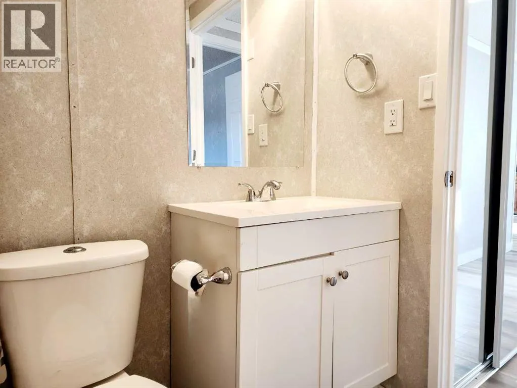 Welcome home to this beautifully renovated mobile home in a quiet and clean park in Blackfalds. This is a great starter home or for anyone looking to downsize. With many previous renovations such as windows, doors, floors, bathrooms, plumbing, light fixtures, furnace, hot water tank, skylight, blocking, decking, siding, and skirting. And additionally added extra insulation around the skirting, barn door on the ensuite bathroom, new paint and a few great gardens with a 1000 gallon water tank too catch rain water to water the gardens. The very large yard and the two decks make for lots of room for entertaining!! The lot rent includes water, sewer, garbage and snow removal (id:27476)