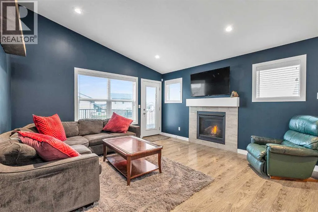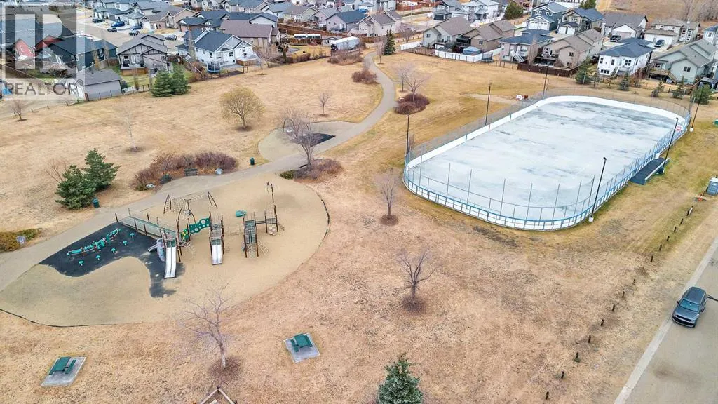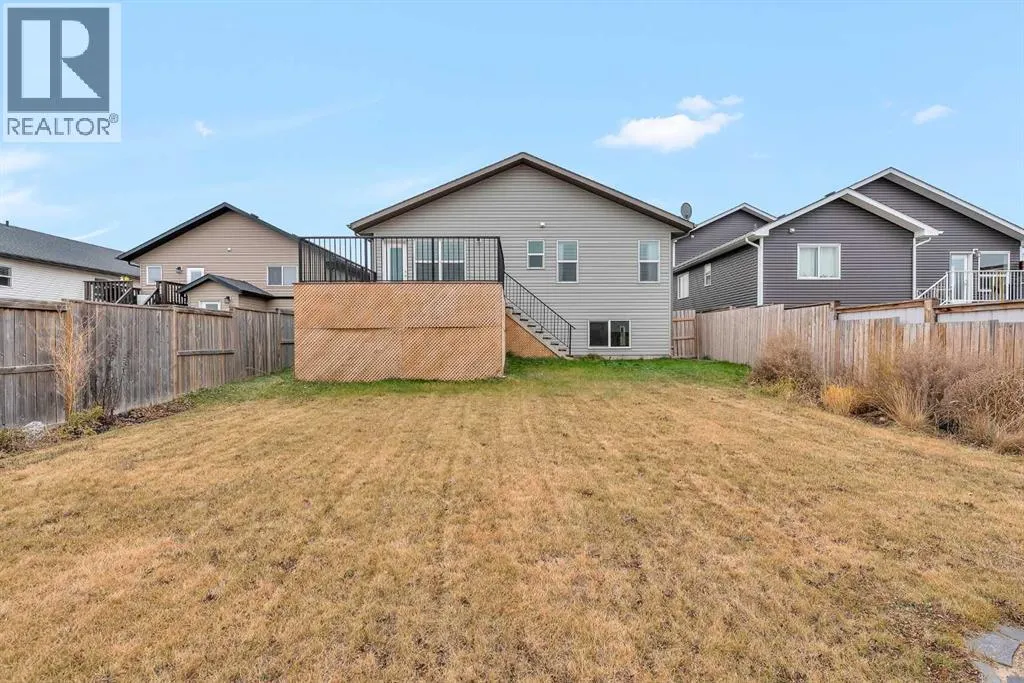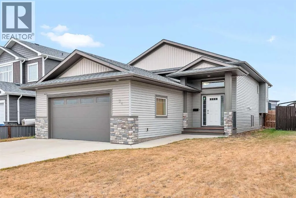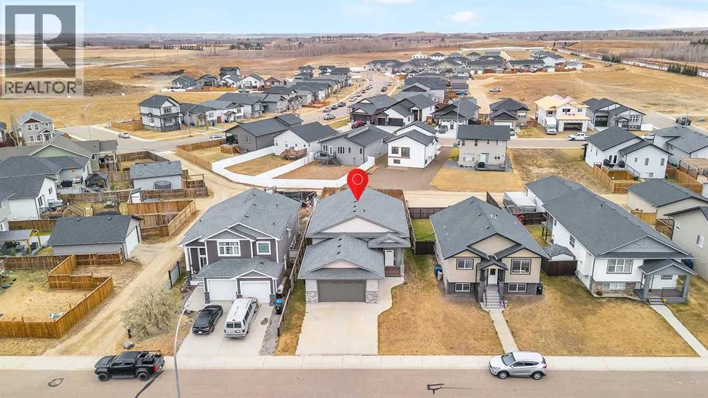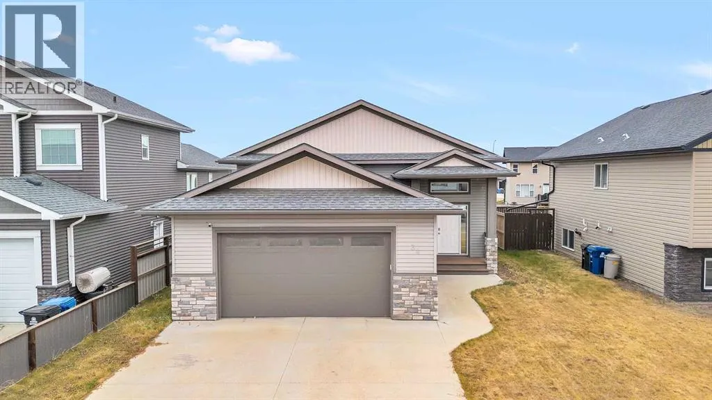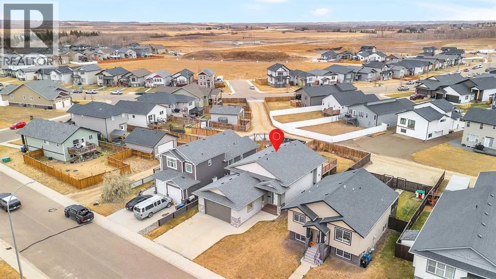 Welcome to this warm and inviting property located on a QUIET FAMILY FRIENDLY STREET in Blackfalds, a wonderful place to raise children or enjoy a peaceful lifestyle. This home offers a functional layout, great curb appeal, and a SPACIOUS YARD WITH RV PARKING, making it a standout choice in this price range. Step inside to a LARGE TILED FRONT ENTRY with DIRECT ACCESS TO THE FINISHED 24X24 GARAGE, perfect for busy family routines. The main floor features SOARING VAULTED CEILINGS and an OPEN CONCEPT LIVING, DINING AND KITCHEN AREA, creating a bright and welcoming atmosphere. The kitchen is equipped with a LARGE ISLAND, CORNER PANTRY, STAINLESS STEEL APPLIANCES, FULL TILE BACKSPLASH, and SOFT CLOSE CABINETRY. The living room is centered around a COZY GAS FIREPLACE and opens onto a DECK overlooking the impressive yard, ideal for BBQs, gatherings, and watching the kids play. The main level offers 3 BEDROOMS AND 2 FULL BATHROOMS, including a spacious PRIMARY SUITE with HIS AND HER CLOSETS and a 4 PIECE ENSUITE. The layout provides comfort and convenience for families of all ages. The BRIGHT LOWER LEVEL is UNFINISHED WITH LARGE WINDOWS, offering incredible potential for future development. There is space to add 2 MORE BEDROOMS, a FULL BATHROOM, and a FAMILY ROOM, giving you the flexibility to expand as your needs grow. The MASSIVE LANDSCAPED BACKYARD includes UNDER DECK STORAGE and REAR RV PARKING WITH RV GATE AND ALLEY ACCESS. Plenty of room for toys, pets, gardens, or just relaxing outdoors. The OVERSIZED 24X24 GARAGE comes with a BUILT IN WORKBENCH, perfect for a hobbyist or handy homeowner. This is a WELL CARED FOR HOME in a great community with parks, schools, and amenities nearby. A pleasure to show and a place you will be proud to call home. (id:27476)