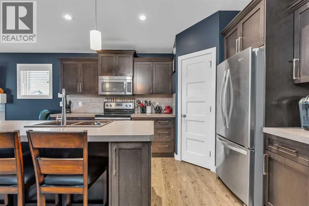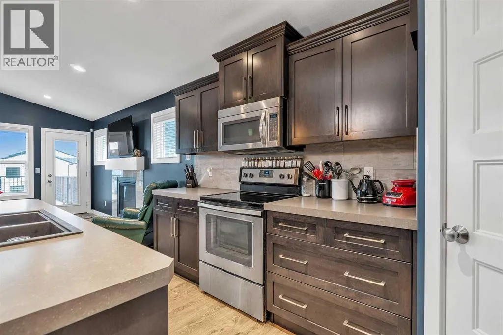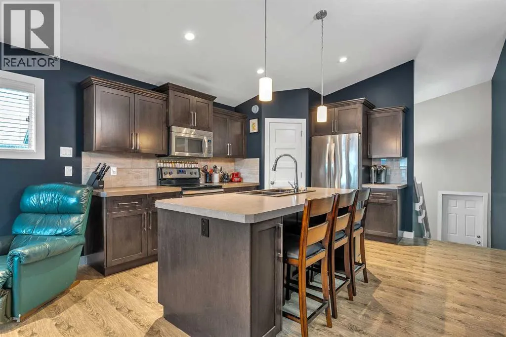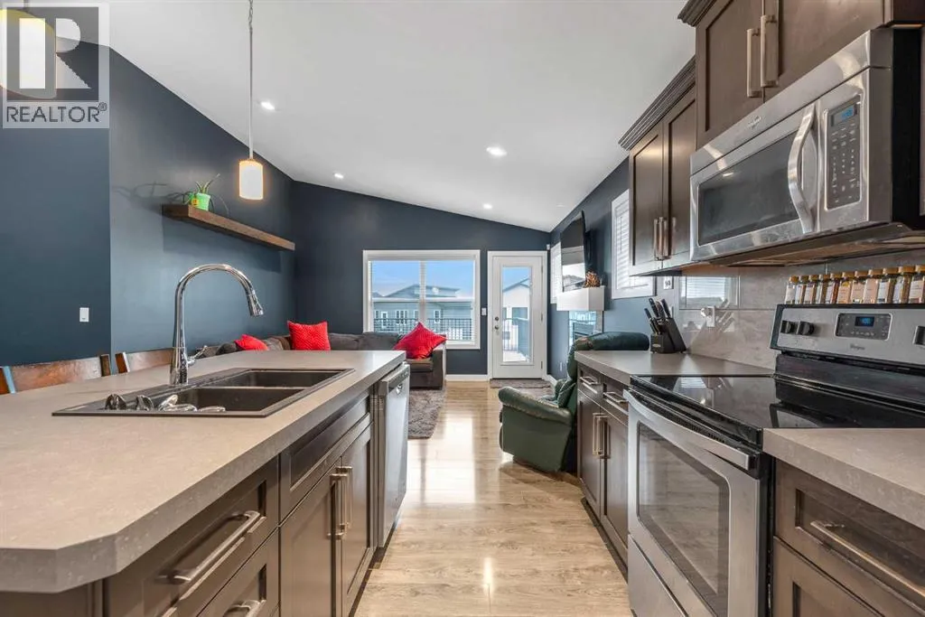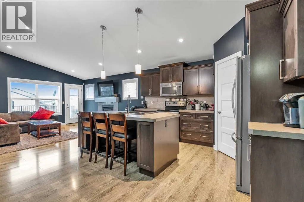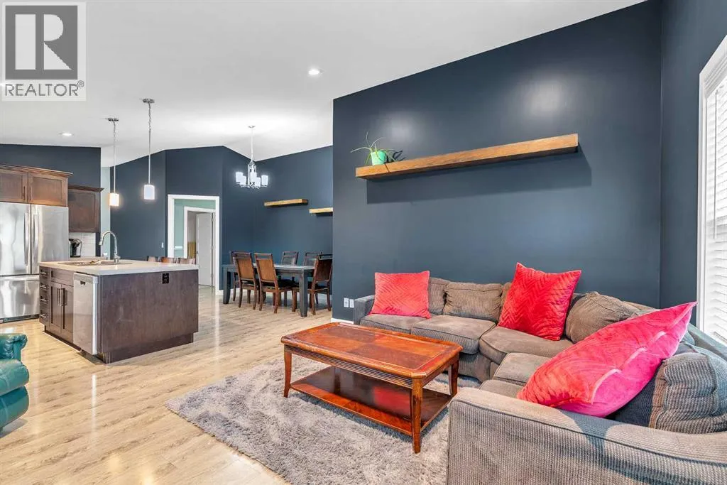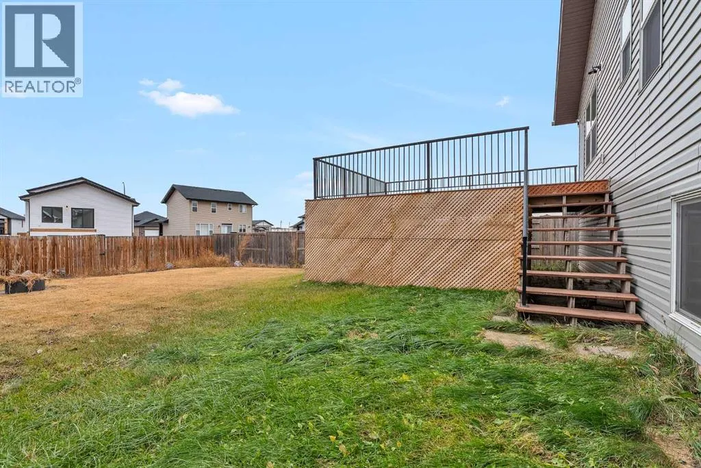 Welcome to this warm and inviting property located on a QUIET FAMILY FRIENDLY STREET in Blackfalds, a wonderful place to raise children or enjoy a peaceful lifestyle. This home offers a functional layout, great curb appeal, and a SPACIOUS YARD WITH RV PARKING, making it a standout choice in this price range. Step inside to a LARGE TILED FRONT ENTRY with DIRECT ACCESS TO THE FINISHED 24X24 GARAGE, perfect for busy family routines. The main floor features SOARING VAULTED CEILINGS and an OPEN CONCEPT LIVING, DINING AND KITCHEN AREA, creating a bright and welcoming atmosphere. The kitchen is equipped with a LARGE ISLAND, CORNER PANTRY, STAINLESS STEEL APPLIANCES, FULL TILE BACKSPLASH, and SOFT CLOSE CABINETRY. The living room is centered around a COZY GAS FIREPLACE and opens onto a DECK overlooking the impressive yard, ideal for BBQs, gatherings, and watching the kids play. The main level offers 3 BEDROOMS AND 2 FULL BATHROOMS, including a spacious PRIMARY SUITE with HIS AND HER CLOSETS and a 4 PIECE ENSUITE. The layout provides comfort and convenience for families of all ages. The BRIGHT LOWER LEVEL is UNFINISHED WITH LARGE WINDOWS, offering incredible potential for future development. There is space to add 2 MORE BEDROOMS, a FULL BATHROOM, and a FAMILY ROOM, giving you the flexibility to expand as your needs grow. The MASSIVE LANDSCAPED BACKYARD includes UNDER DECK STORAGE and REAR RV PARKING WITH RV GATE AND ALLEY ACCESS. Plenty of room for toys, pets, gardens, or just relaxing outdoors. The OVERSIZED 24X24 GARAGE comes with a BUILT IN WORKBENCH, perfect for a hobbyist or handy homeowner. This is a WELL CARED FOR HOME in a great community with parks, schools, and amenities nearby. A pleasure to show and a place you will be proud to call home. (id:27476)