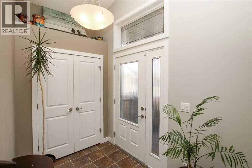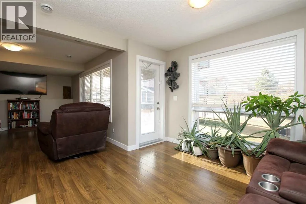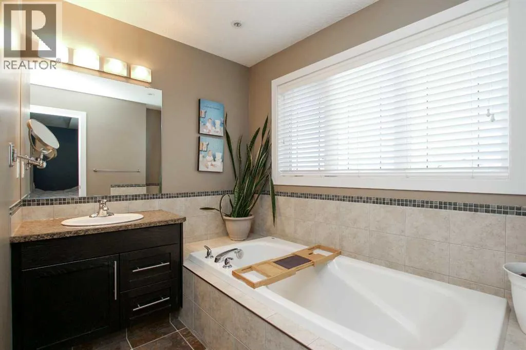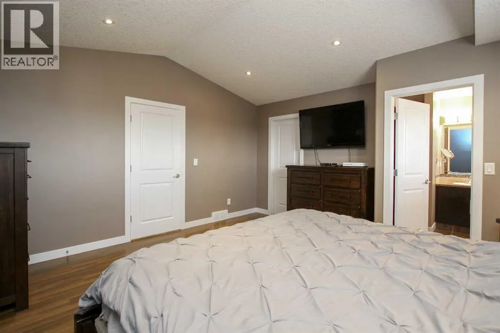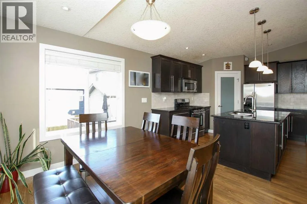 FULLY DEVELOPED 5 BEDROOM, 3 BATHROOM MODIFIED BI-LEVEL ~ WALKOUT BASEMENT ~ BACKING ONTO A WALKING PATH & POND ~ SEPARATE SIDE ENTRY ~ Covered front veranda leads to a welcoming foyer with high ceilings ~ The open concept main living space is complemented by soaring vaulted ceilings and large windows that fill the space with natural light and have views of the natural space just behind ~ The kitchen offers a functional layout with plenty of dark stained cabinets, full tile backsplash, tons of granite counter space including a massive island with pendant lights above, and a walk in pantry ~ Easily host large gatherings in the dining space that's surrounded by floor to ceiling windows, and garden door access to the sunny west facing deck with more great views ~ The spacious living room features a cozy gas fireplace with stacked stone surround, mantle and space for your TV above ~ 2 main floor bedrooms are both a generous size with ample closet space ~ 4 piece main bathroom has an oversized vanity and a linen closet ~ The private primary suite is tucked away on it's own level and features soaring vaulted ceilings, a spa like ensuite with a soaker tub and separate walk in shower, a large walk in closet, and additional storage space ~ Lower level mud room just off the garage has large windows and offers a second, separate entry on the side of the house with access to the basement with conveniently located laundry and a large storage just at the bottom of the stairs ~ The fully finished basement features high ceilings, large above grade windows, built in speakers and operational in floor heat and two laundry hook ups~ Large L-shaped family room with plumbing roughed in for a wet bar has plenty space for a media area and games tables ~ Garden door from the family room walks out to a covered concrete patio with wiring for a hot tub ~ Two basement bedrooms are located adjacent to a 4 piece bathroom and linen closet ~ 25' L x 24' W double attached garage is insulated, finish ed with painted drywall, has built in shelving, two overhead doors and a man door leading to the front yard ~ The backyard is landscaped, has a fire pit, garden shed, and is fully fenced with direct access to the walking trails and natural reserve just behind ~ Easy access to parks, playgrounds, schools, and shopping ~ Pride of ownership is evident in this well cared for home! (id:27476)