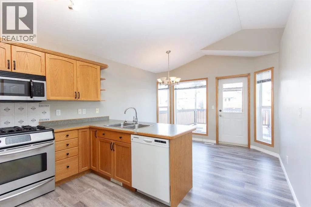 LOCATION, LOCATION, LOCATION! Situated on a huge lot, this fully finished bi-level sits across from a beautiful pond and park space with paved walking paths, and is just a short walk from playgrounds and the Abbey Centre! Features and recent upgrades in this home include newer vinyl plank flooring, updated baseboards, shingles (2019), hot water tank (2022), central A/C (2022), composite decking, vaulted ceilings, and more! Stepping inside, the front entry leads up to a large living room with a cozy gas fireplace and a view of the pond across the street. The kitchen features oak cabinetry, stainless steel appliances including a gas stove, a pantry, and an eating bar that opens directly into the dining area where a garden door leads to the back deck. Down the hall, you'll find a nicely sized kids' bedroom, the main 4 pce bathroom, and a spacious primary suite with dual closets and a private 3 pce ensuite. The fully finished basement offers a large rec room, two additional bedrooms, another 3 piece bathroom, and plenty of storage space. Outside, this large fully fenced yard has ample room to add RV parking, and the back deck has been updated with composite decking, and there's enclosed storage underneath along with a large shed. The single attached garage is insulated and boarded, and the large driveway offers additional off street parking. Quick possession is available. (id:27476)