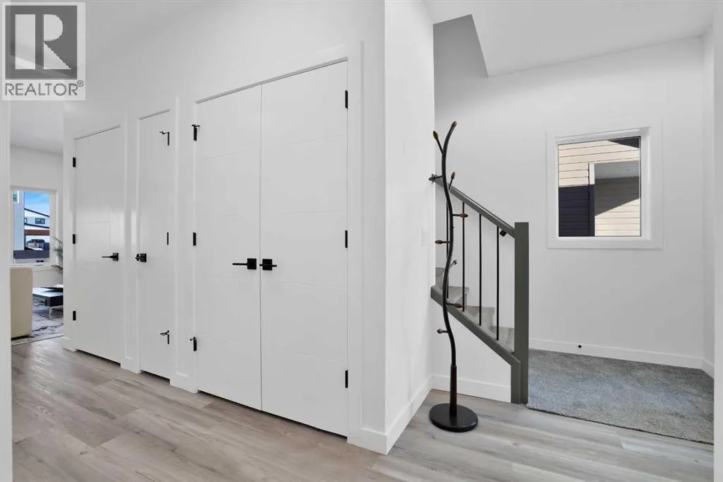 Welcome to the RUBY built by Award Winning Abbey Platinum Master Built on the highly desirable Palmer Circle in Blackfalds. This 1586 sq foot 2 storey has an amazing modern sight lines and curb appeal with stunning brick accents, wood grain metal siding . A spacious entrance greets you as you enter this 3 bedroom 2.5 bath home. An open floor plan , living room with a fireplace , large kitchen with amazing backsplash and quartz countertops . As you take a walk upstairs you will find a Primary bedroom with a 3 pcs ensuite, as well as 2 more ample sized bedrooms and a 4 pc bath. This home has an upstairs laundry are for added convivence. The unfinished basement features 9 foot ceilings and can accommodate a 4 pcs bath, family room and a bedroom, just add your own creative design. (id:27476)