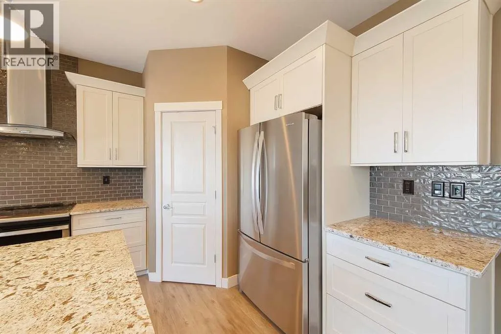 For more information, please click the "More Information" button. Welcome to 4244 Westbrooke Road, an exceptional two-storey residence that captures your attention the moment you walk in. The foyer sets the tone with its inviting colour palette and durable vinyl plank flooring that extends seamlessly across the main level. Just off the entrance is a handy two-piece bathroom and a well-organized mudroom offering direct access to the garage and walk-in pantryâmaking day-to-day life smooth and efficient. The main living area serves as the hub of the home, perfectly crafted for hosting and connecting. A large granite-topped island anchors the kitchen, which is equipped with stainless steel appliances, soft-close cabinetry, and a modern, functional design. The dining area transitions effortlessly into the living room, where a warm gas fireplace creates an ideal setting for relaxing with loved ones. Head upstairs to discover three comfortable bedrooms and a handy laundry room designed for effortless living. The primary bedroom creates a calming getaway, complete with a walk-in closet and a spa-inspired ensuite featuring two sinksâan ideal space to relax and recharge. The beautifully completed lower level enhances the homeâs livability, showcasing a welcoming family room highlighted by a second gas fireplace, a spacious additional bedroom, and a full bathroomâperfect for accommodating guests or supporting a growing familyâs needs. Step outside into a backyard designed for relaxation and enjoyment. The patio deck leads directly to the hot tub, surrounded by beautifully maintained landscaping, in-ground sprinklers, and a cobblestone pathway that guides you to a peaceful sitting area beneath a pergola. With no neighbours behind you and a vast green space stretching out beyond the property, the atmosphere is both open and tranquilâyour own private outdoor retreat. Set in a sought-after Blackfalds community, youâll enjoy being close to schools, parks, play areas, the skate par k, BMX track, and a variety of shopping options, with the highway only moments away. This home is in exceptional conditionâcompletely move-in ready and waiting to welcome you. (id:27476)