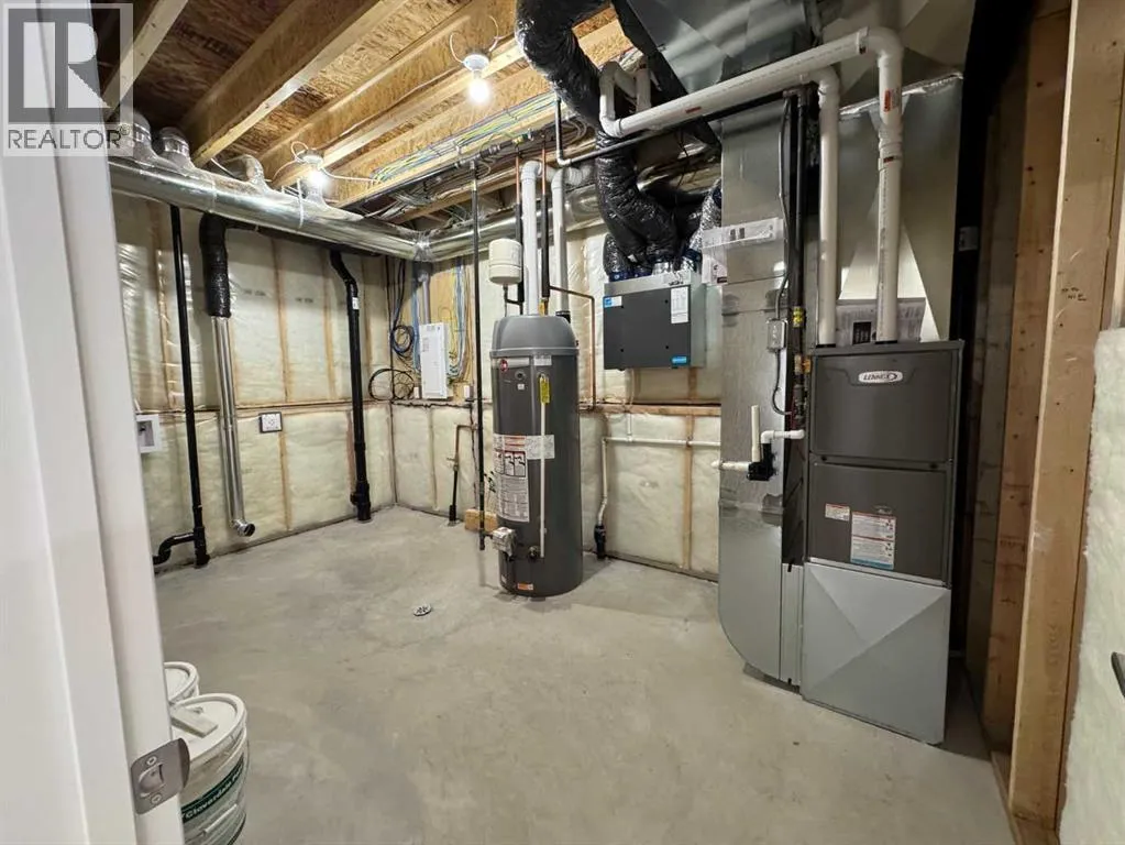 WELCOME TO THIS EXQUISITE 'WALKOUT' NEW BUILD MODIFIED BILEVEL IN ASPEN LAKES WEST BLACKFALDS WITH A REAR YARD ALREADY FENCED ON TWO SIDES AND A PLEASANT S.E. VIEW FROM THE SUNNY AND SPACIOUS UPPER DECK! Quality Construction and Gorgeous Finishings with Crisp White Linen Paint Throughout! A beautiful and spacious tiled entry greets you leading up to the MAIN LEVEL S.E. FACING SUNNY OPEN PLAN LIVING/DINING/KITCHEN with Luxury Vinyl Plank Flooring, Vaulted Ceilings and a Stunning Fireplace with a Floor-to-Ceiling Cream Accented Stone Surround! Impressive and Functional Dream Kitchen with White Cabinetry/Quartz Countertops/Center Island with Extended Breakfast Bar/Pantry and All Stainless Steel Appliances included (Fridge with Water)! The adjacent Dining Area is a good size with a garden door out to the S.E. DECK with metal railing surround! Two Secondary Bedrooms complete the main level together with the 4 Pce Bath with quartz countertop... The Primary Bedroom is on the Upper Level with a Walk In Closet and a 4 Pce Ensuite with quartz countertop and tile floor. The WALKOUT BASEMENT, with 9 ft ceilings, is open for development with sliding doors leading out to a concrete patio. The basement also has "roughed in" infloor heat. TAXES NOT YET ASSESSED..... (id:27476)