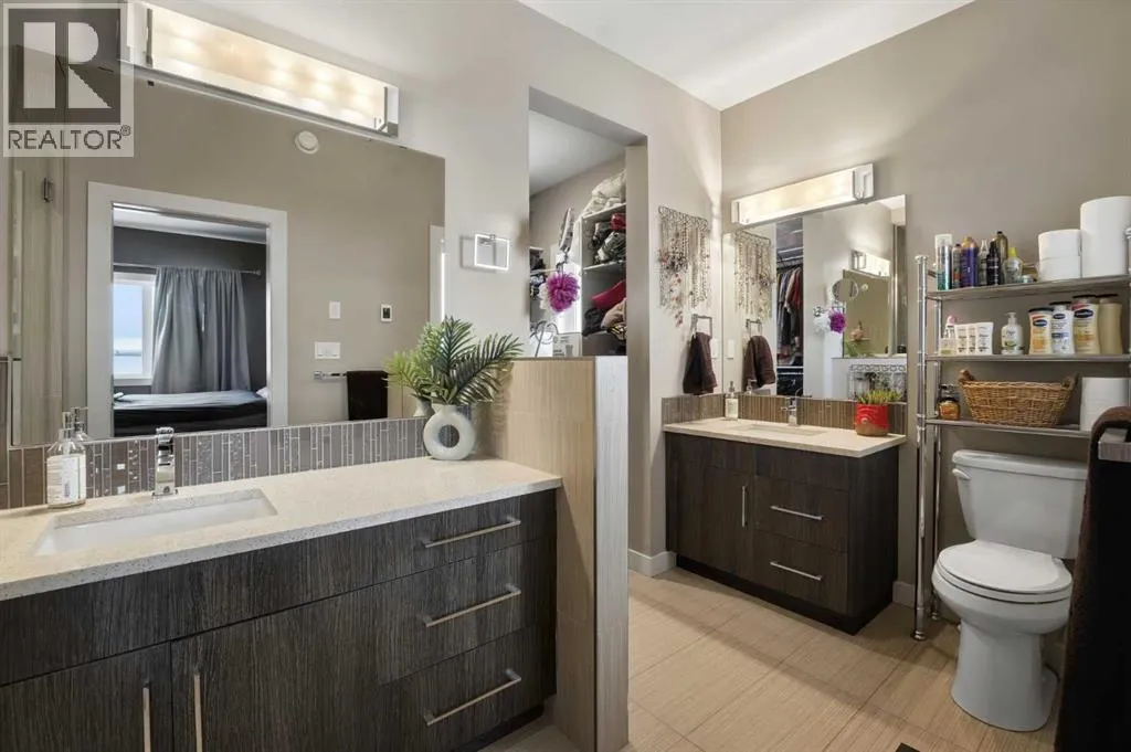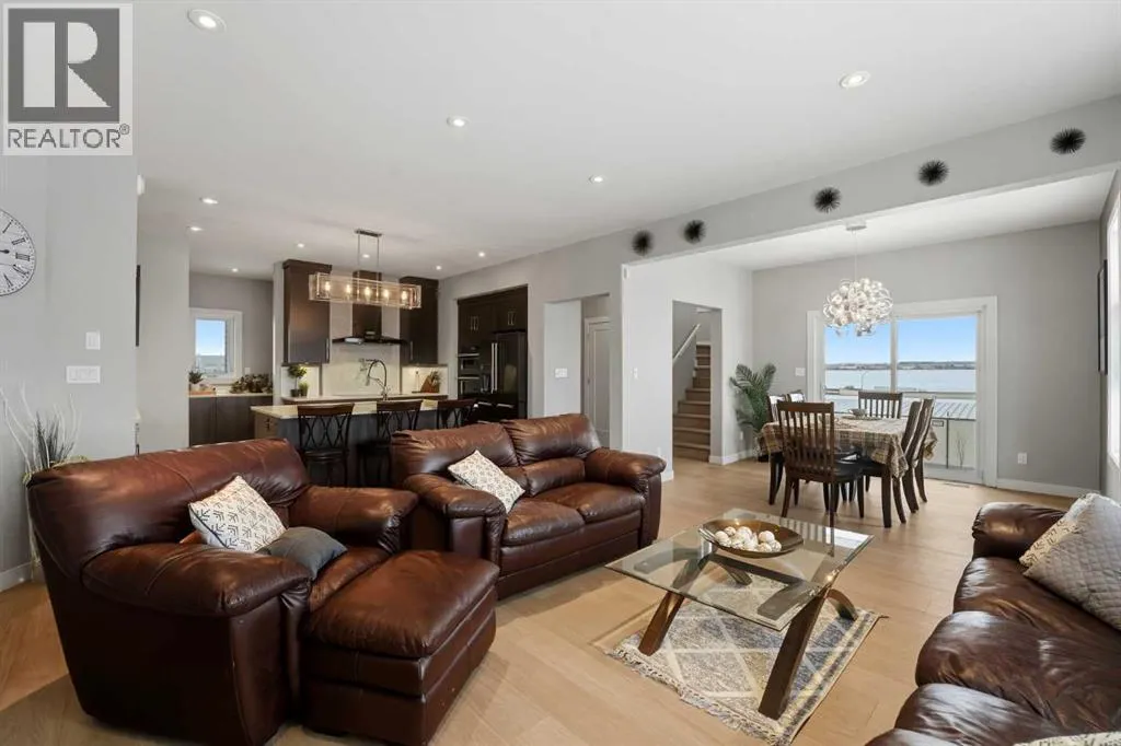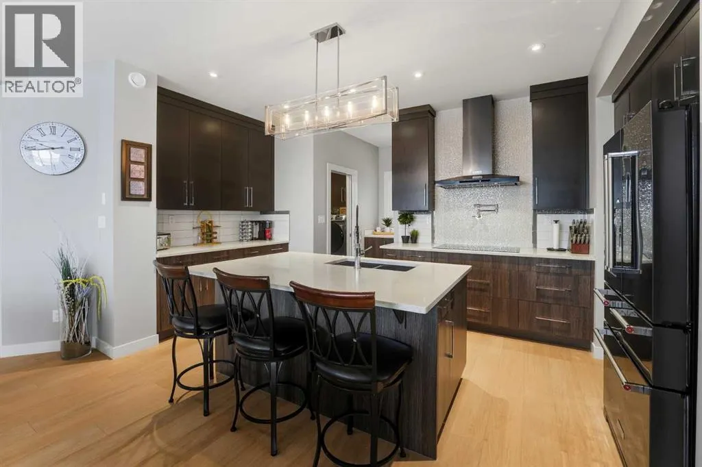 Experience the height of modern luxury in this custom-built Mason Martin home, where an abundance of designer windows creates a beautifully bright and open atmosphere. The gourmet kitchen is a chefâs dream, featuring premium quartz countertops, a stylish backsplash, slate appliances, an induction stovetop with a pot filler, and both walk-in and butlerâs pantries. Uniquely designed for convenience, the spacious primary suite is located on the main floor and boasts a luxurious ensuite with a custom no-lip shower and walk-in closet. The upper level offers two additional bedrooms and a sun-drenched bonus room ideal for an office or play space, while the massive walk-out basement features in-floor heating ready for your future development. Complete with central A/C, a heated flex room off the garage perfect for a gym or workshop, and footings already in place for a future deck, this one-of-a-kind property is perfectly situated at the end of a quiet close with a stunning view. (id:27476)