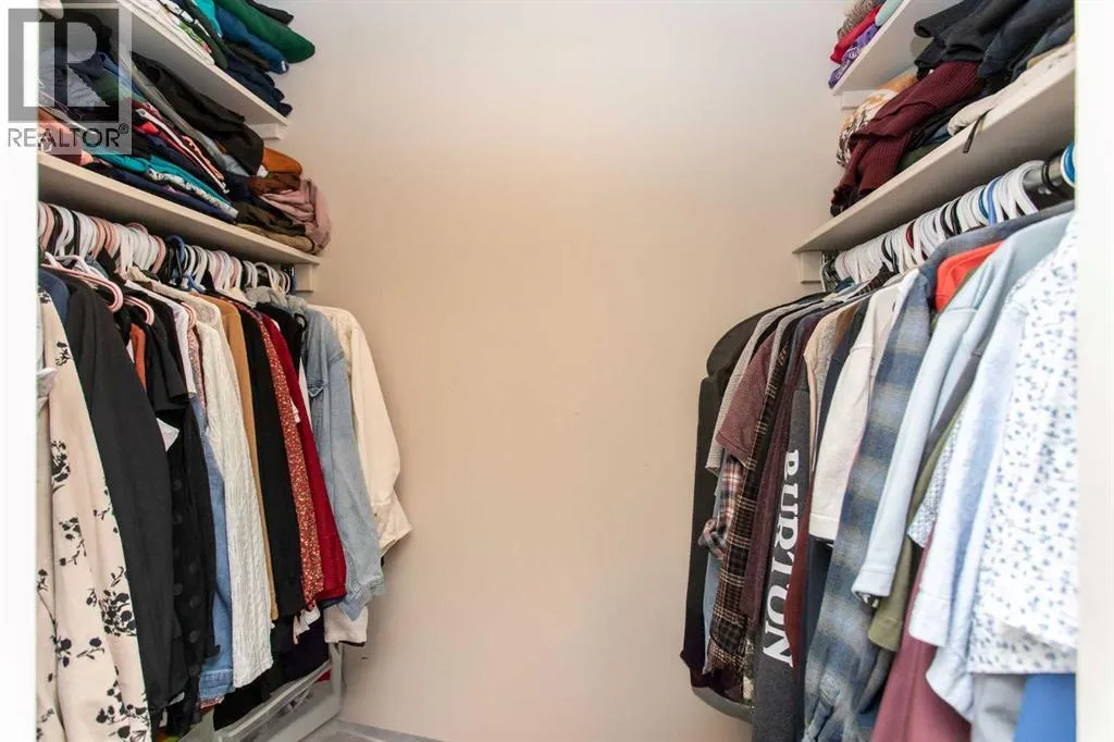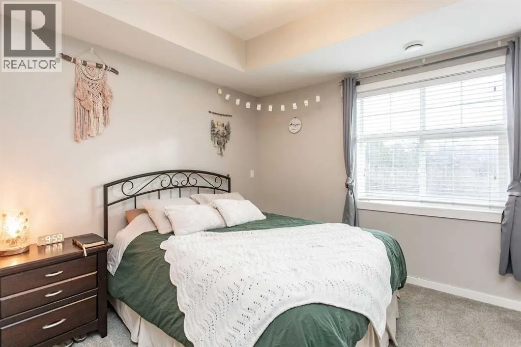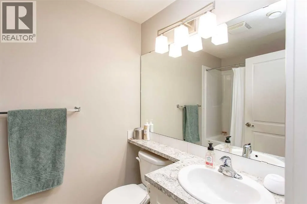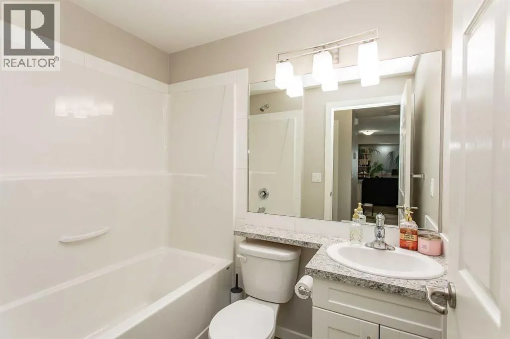 Find the perfect combination of comfort and convenience in this two bedroom two bath condo in Valley Crossing. This development is highly desirable for its quick and easy access to QEII for commuters and it's close proximity to great recreation options close to home - with the Abbey Centre and some beautiful walking trails just steps from your door. Ideally situated on the outside corner of the complex, where it enjoys a quiet privacy and a sunny south facing balcony overlooking the trees - this beautiful upper level unit provides a perfect tranquil escape after a long day. Warm and inviting and in excellent condition, this home has been obviously well maintained and gently lived in. An open floor plan with high ceilings and neutral plank flooring flows smoothly from a clean white kitchen with eating bar to a separate dining area and through a spacious bright living room out to that covered balcony. The primary bedroom is a private sanctuary and features both a walk-in closet and a full four piece ensuite. The second bedroom currently serves as a perfect home office, and there is a second full bath and a separate laundry/utility room with storage. Included are two powered parking stalls within easy view, and visitor parking close to the door. This building is pet friendly, professionally managed, and the condo fees are comparatively low. (id:27476)