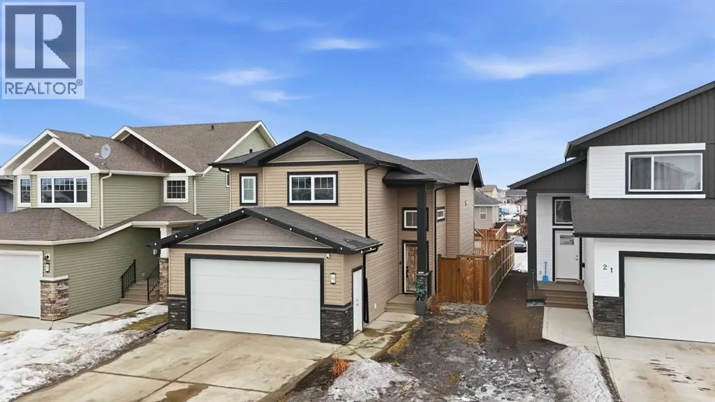 Welcome to 17 Vermont Close in Blackfalds â a fully developed modified bi-level offering 5 bedrooms and 3 bathrooms in a quiet close with excellent access to Highway 2. Built in 2014, this home features a bright open-concept main floor with vaulted ceilings, quartz countertops, and a functional layout ideal for families and entertaining. Three bedrooms are located on the upper levels, including the private primary suite with ensuite, while the fully finished basement offers two additional bedrooms, a full bathroom, and a well-designed living space. Enjoy the convenience of central air conditioning, a double attached HEATED garage, fenced backyard, and rear alley access. Located in a family-friendly neighborhood close to schools, parks, and amenities, this move-in-ready home checks all the boxes. (id:27476)
