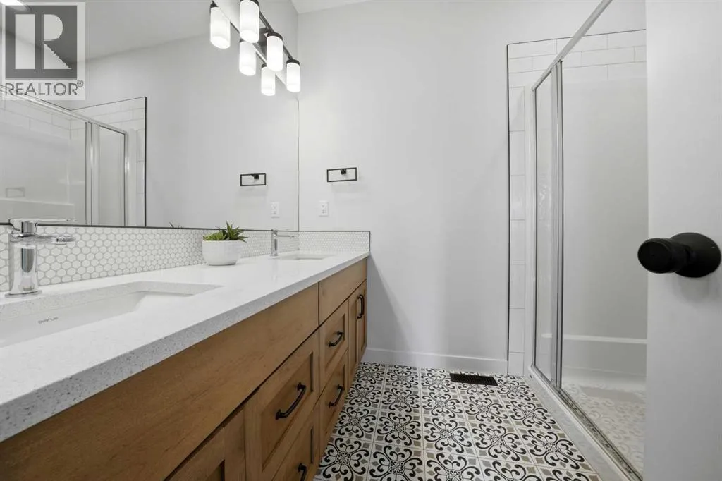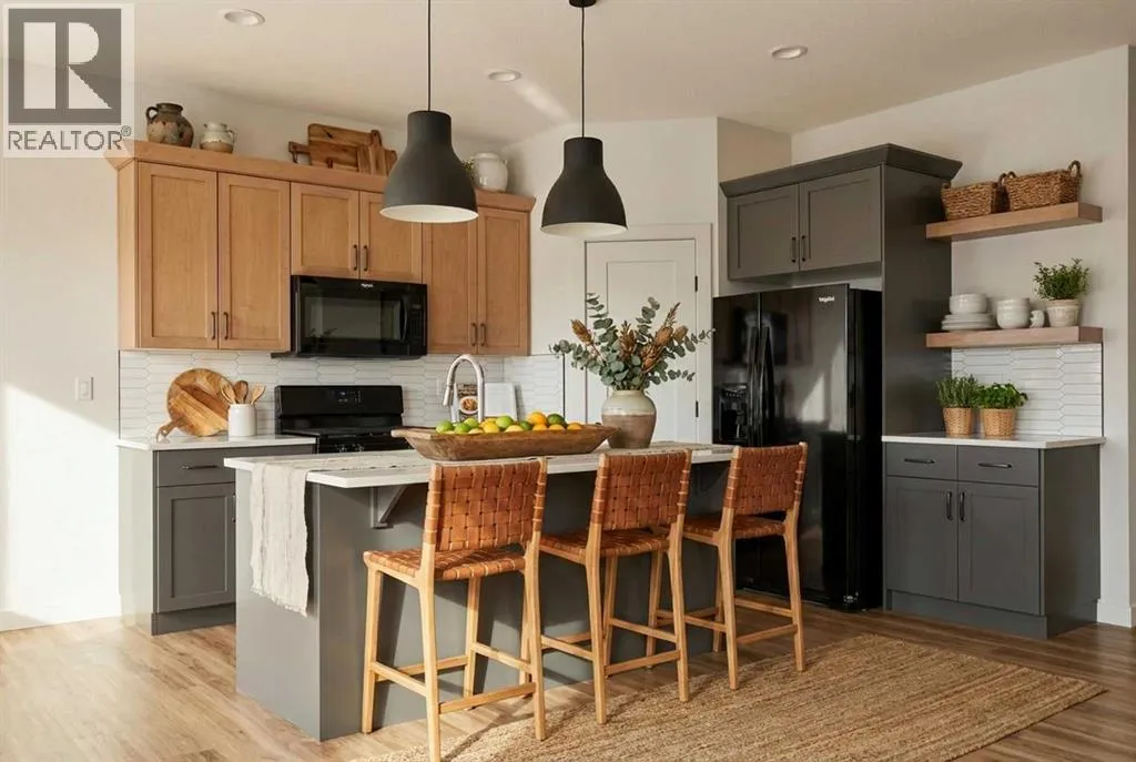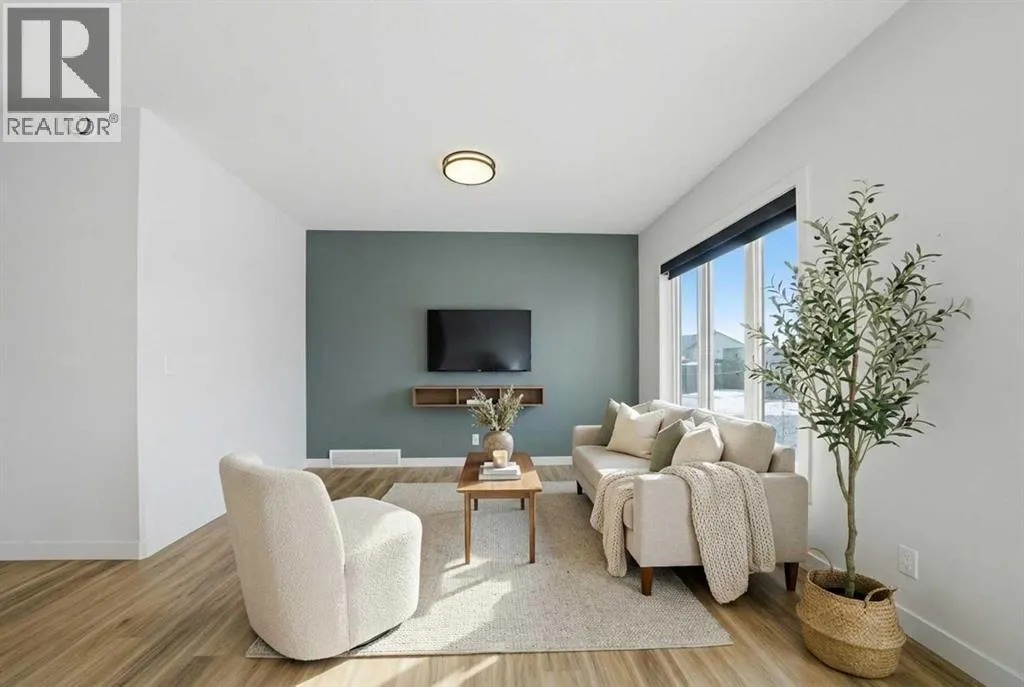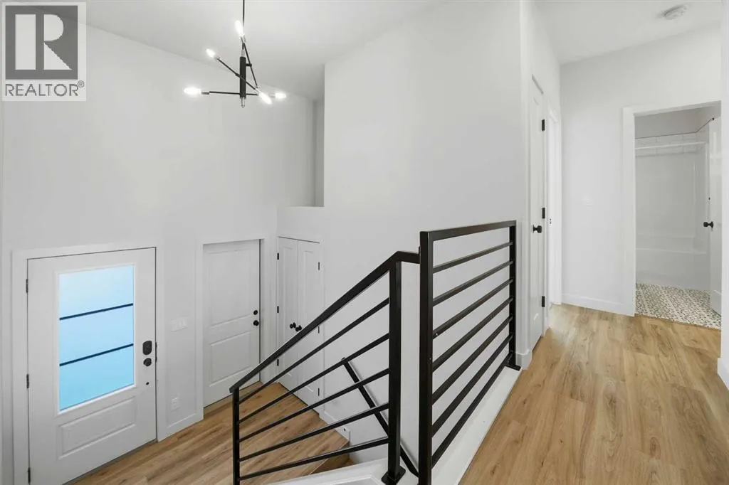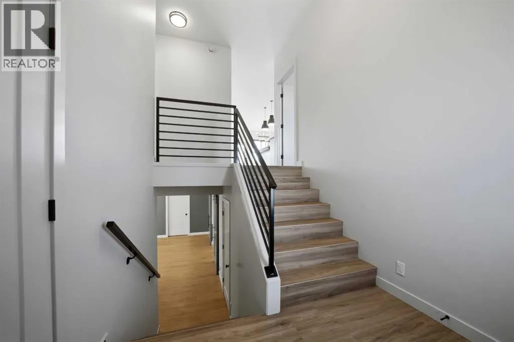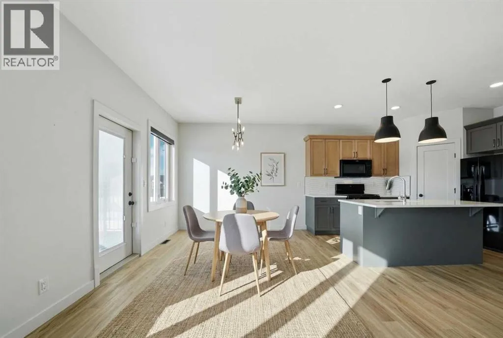 Welcome to 9 Aztec Street in the desirable community of Aurora in Blackfalds. A beautifully upgraded bi-level built by True-Line Developments offering quality craftsmanship and exceptional design throughout. From the moment you arrive, the stunning curb appeal stands out with its attractive blend of stonework, wood accents, and modern vertical siding. A welcoming front entry opens to a wide staircase accented by sleek black metal railing, setting the tone for the stylish finishes found throughout the home. The main floor showcases an impressive kitchen designed to be both functional and beautiful, featuring upgraded two-tone cabinetry, full quartz countertops, deep corner pantry, floating shelves, modern light fixtures, and matching black appliances including an upgraded gas stove. The open concept layout flows seamlessly into the spacious dining and living areas, highlighted by large windows fitted with custom blinds that flood the space with natural light. Garden doors lead to the rear deck with gas line for BBQ, overlooking the massive fully fenced yard. perfect for relaxing or entertaining. Both the covered front veranda and rear deck feature durable Moisture Shield composite decking for long lasting, low maintenance enjoyment. The main floor offers three bedrooms, including a generous primary retreat complete with walk in closet and private ensuite featuring dual vanities and a standup shower. Convenient main floor laundry adds everyday ease. The professionally developed basement is thoughtfully designed for family living and entertaining, offering a large media area, an expansive family room behind stylish barn doors, an additional bedroom, and a beautifully finished three piece bathroom with full tile surround and walk in shower. A substantial storage area provides excellent space for seasonal items and organization. Located within walking distance to neighborhood shopping and close to schools, parks, and amenities, this home offers the perfect blend of styl e, function, and location in one of Blackfaldsâ newer communities. A move in ready home that shows pride of ownership with thoughtful upgrades throughout. (id:27476)