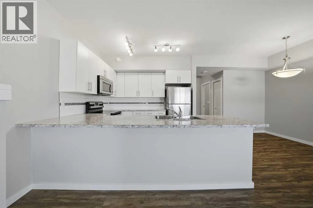UPPER LEVEL CONDO AT VALLEY CROSSING - Beautifully maintained EAST FACING condo features an OPEN CONCEPT and is close to the skate and mountain bike parks. This development borders the popular Abbey Center, a park, walking trails and has convenient entry to Highway 2 and Highway 2A. Inside you'll find 2 BEDROOMS & 2 full BATHROOMS. There is also IN-SUITE LAUNDRY, LARGE COVERED DECK and 2 assigned POWERED PARKING STALLS right outside your door plus lots of visitor stalls. The kitchen has ample counter space with LARGE PENINSULA and cabinets that have been upgraded to soft-closures and has stainless steel appliances. This condo is very well ran and CONDO FEES are LOW. (id:27476)