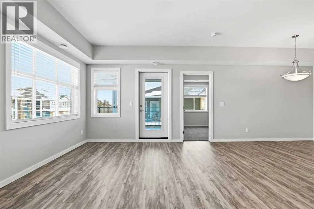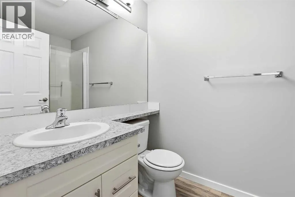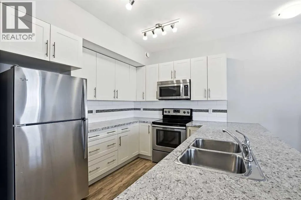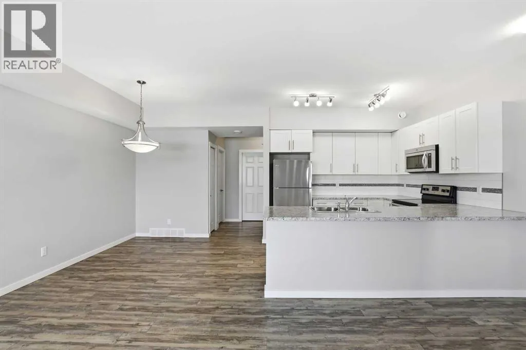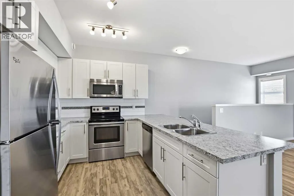 UPPER LEVEL condo in the popular VALLEY CROSSING development. Pull into one of your 2 ASSIGNED POWERED PARKING STALLS right in front of your front door. Once on the main living level - you'll fall in love with the OPEN CONCEPT KITCHEN & LIVING AREA with a large peninsula perfect for entertaining guests or just appreciating the tons of counter space you have for meal preparation or baking. The living area opens out to the COVERED NORTH/EAST FACING DECK. Back inside is 2 good sized BEDROOMS including the primary and ENSUITE WITH UPGRADED SHOWER. There's another full bathroom as well as IN-SUITE LAUNDRY. Come check it out!! It's easy to find because it's right beside the Abbey Center, walking trails and shopping and has quick access to both Hwy 2 and Hwy 2A. (id:27476)
