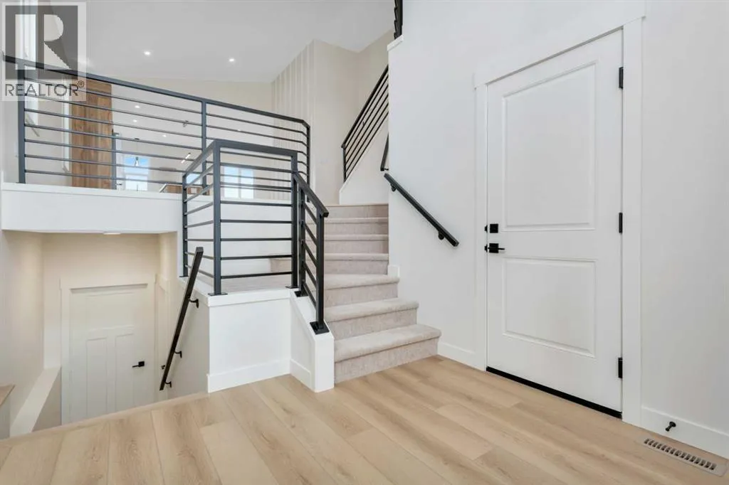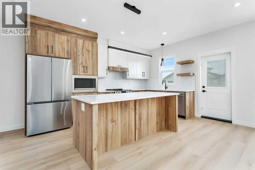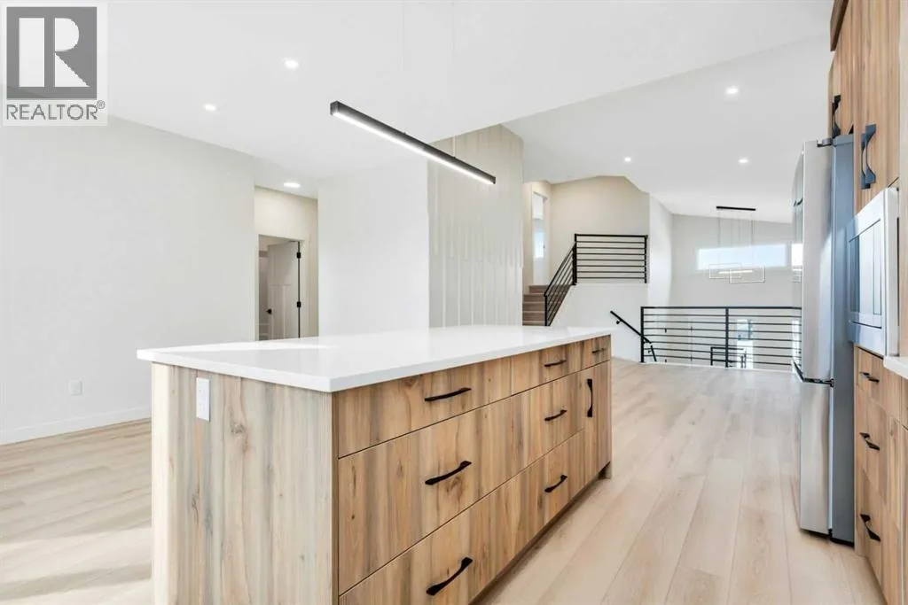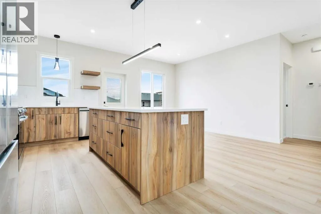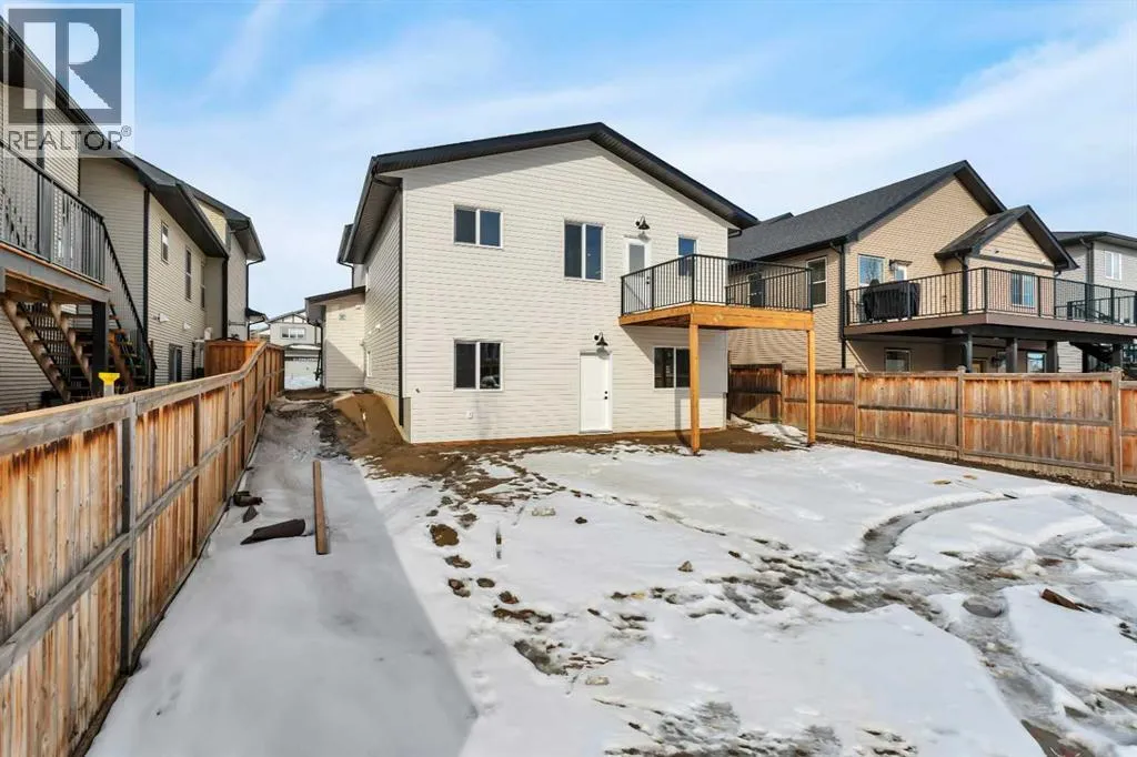 Welcome to 77 Maclean Close in McKay Ranch, Blackfalds. This 1,480 sq. ft. modified bi-level by Manhani Builders features a modern farmhouse design with quality finishes throughout. The open main floor offers a vaulted ceiling, large windows, and a spacious functional layout. The kitchen includes solid birch plywood cabinets, quartz countertops, and upgraded stainless steel appliances, along with a convenient main-floor laundry. The primary bedroom includes a walk-in closet and full ensuite. The 24 x 24 attached garage with an 18-foot door provides plenty of space. Enjoy the composite front porch and 12 x 10 back deck. The walk-out basement is roughed in for in-floor heat and future development. This home is equipped with a 75-gallon upgraded hot water tank, an energy-efficient furnace, and a heat recovery ventilation (HRV) system, providing enhanced comfort, improved indoor air quality, and long-term energy efficiency. Backed by a 10-year Progressive Home Warranty. This home is ready for possession, with front landscaping to be completed in the spring. (id:27476)