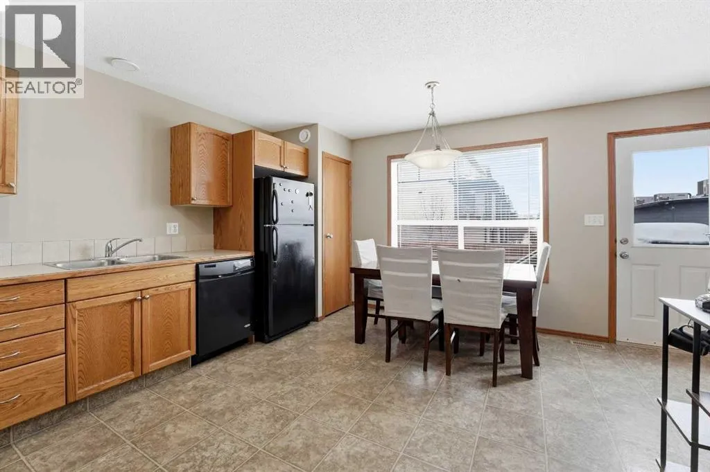 Pack your bags this property is move-in ready with a quick possession! 3 bedroom, 2 bathroom townhouse situated across from a park. Laminate flooring throughout the main level and most of the upper level with new carpet in one bedroom. A large bay window in the front living room offers an abundance of floor space and natural light. Oak cabinets in the spacious kitchen and appliances are included! 2 piece bathroom at the back entrance that leads to the deck and fenced yard. On the upper level, you will find a 4 piece bathroom, 3 bedrooms with a very spacious primary bedroom with his and her closets. The basement is undeveloped with RI for a 3rd bathroom. Great starter property! Quad lock insulated foundation for energy efficiency. 2 parking spaces right in front plus visitor parking. Condo fee's of $270 monthly include exterior maintenance, management, building & fire insurance, snow removal, lawn care (not in backyards). Pets are allowed with approval. (id:27476)