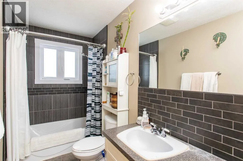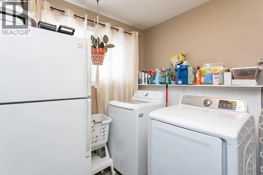 Presenting an updated bungalow located in the heart of Blackfalds, ready to welcome its new owners. This property has undergone notable renovations in recent years, including new windows installed last year and a redesigned main living area featuring an open concept layout. The modernized kitchen offers off-white cabinetry, a newer backsplash and countertops, and lighting and newer appliances. Primary bedroom plus a second bedroom and fur piece bathroom complete the main level. The third bedroom has been converted into a main floor laundry room but can easily be restored to its original use. The four-piece bathroom is highlighted by a beautifully tiled bathtub and shower combination, serving as a focal point of the home. The basement is partially developed, with one room currently functioning as an office that could be converted to a bedroom (please note: windows do not meet egress requirements). There is also a family room and a games room area, providing ample opportunity for customization according to personal preferences. The furnace was replaced around 2009. Additional features include a fenced yard, back alley access, and ample space for RV parking or gardening. The property is conveniently situated near amenities, shopping, the multiplex, and restaurants. Quick possession is available and the home is a pleasure to view. (id:27476)