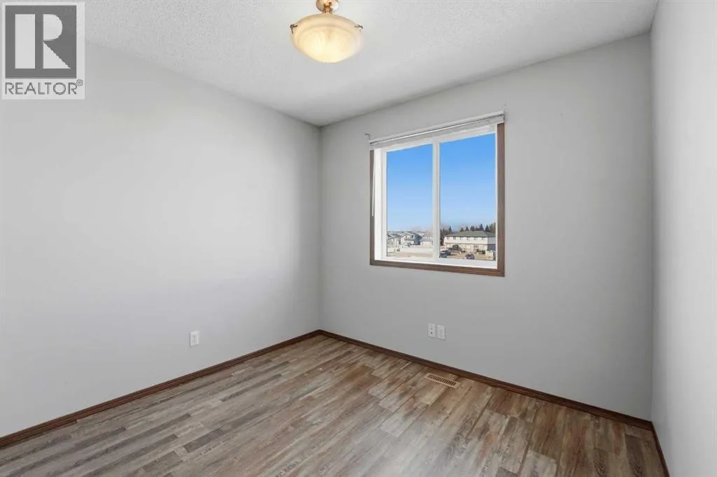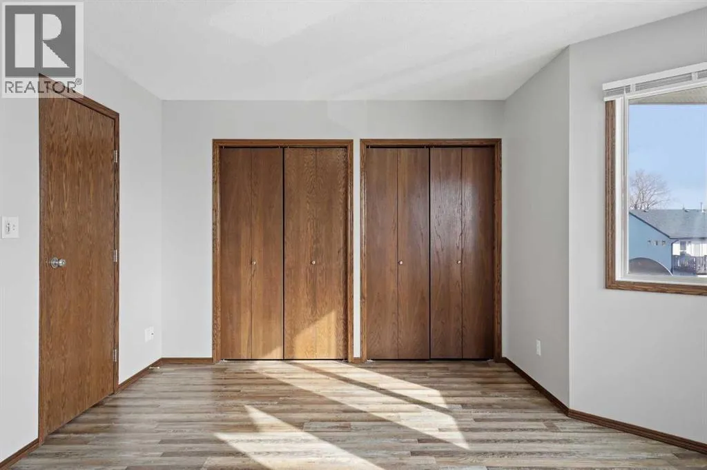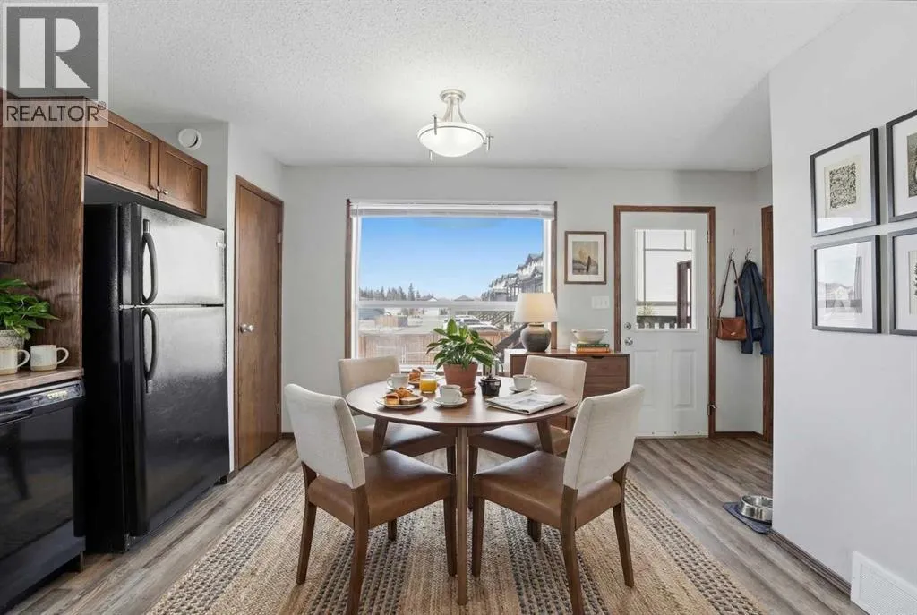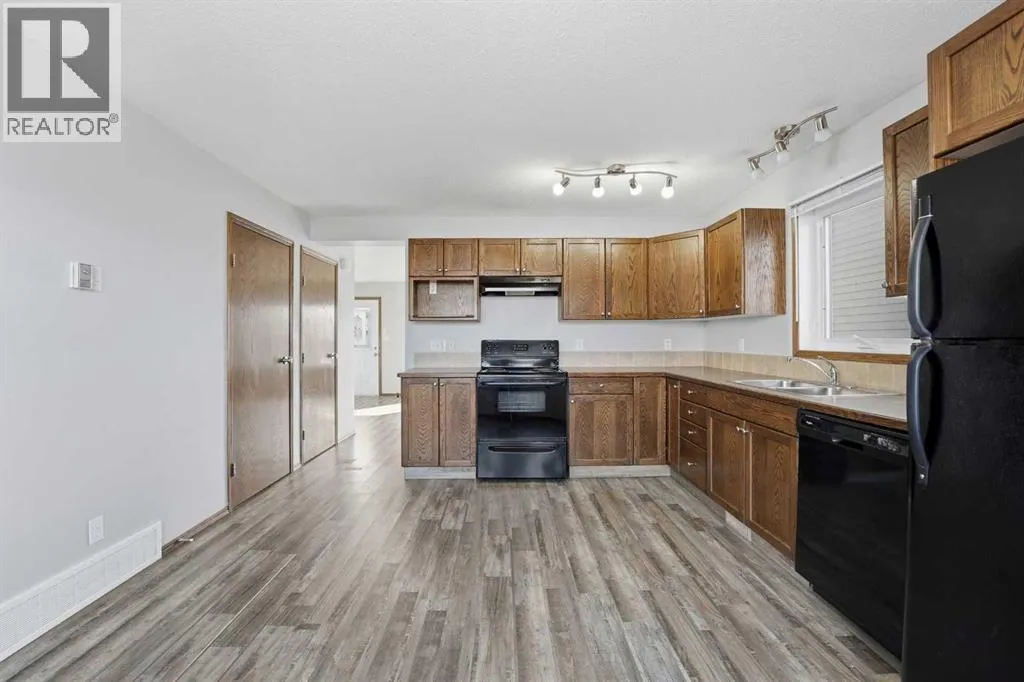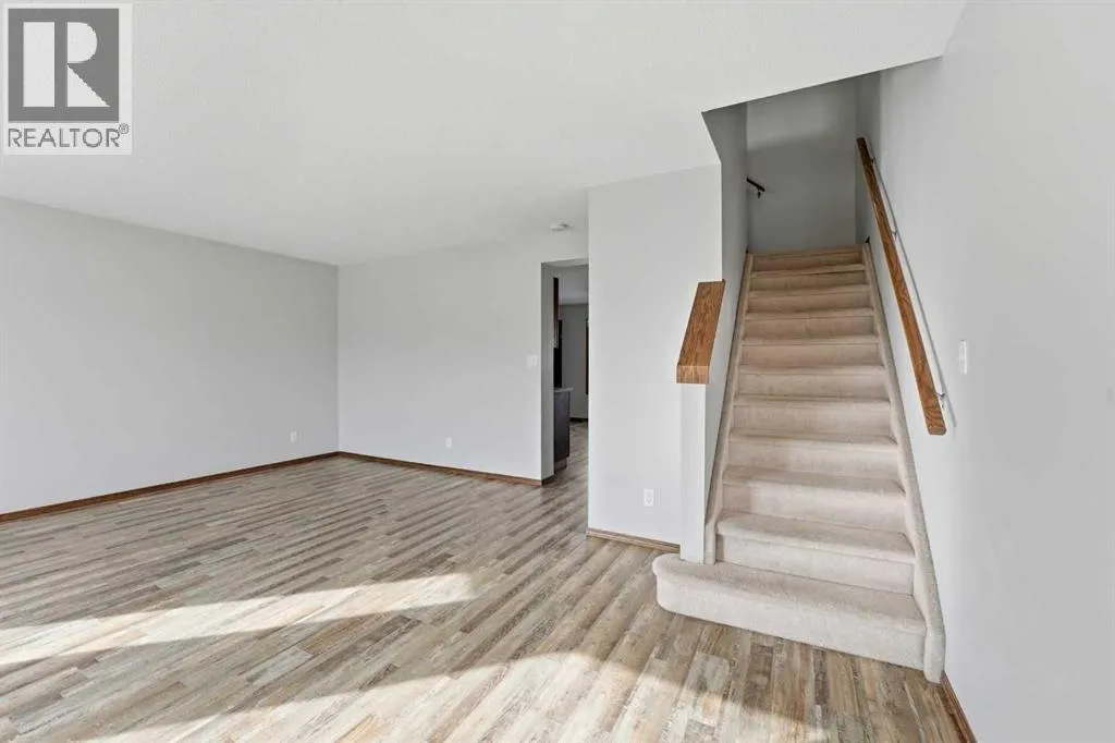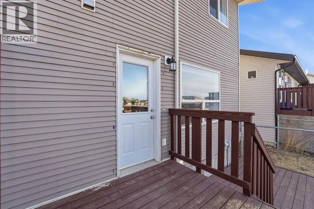 End unit townhouse situated across from a park with 2 parking spaces out front plus visitor parking. 3 bedrooms, 2 bathrooms, vinyl plank flooring throughout the main and upper levels with carpet on the stairs. A large bay window in the front living room offers an abundance of floor space and natural light. Oak cabinets with a dark stain in the spacious kitchen and appliances are included! 2 piece bathroom at the back entrance that leads to the deck and fenced yard. On the upper level, you will find a 4 piece bathroom, 3 bedrooms with a very spacious primary bedroom with his and her closets. The basement is undeveloped with RI for a 3rd bathroom. Great home for someone starting out or looking to downsize! Quad lock insulated foundation for energy efficiency, (warm in the winter, cool in the summer months)! Condo fee's of $270 monthly include exterior maintenance, management, building & fire insurance, snow removal, lawn care (not in backyards). Pets are allowed with approval. (id:27476)