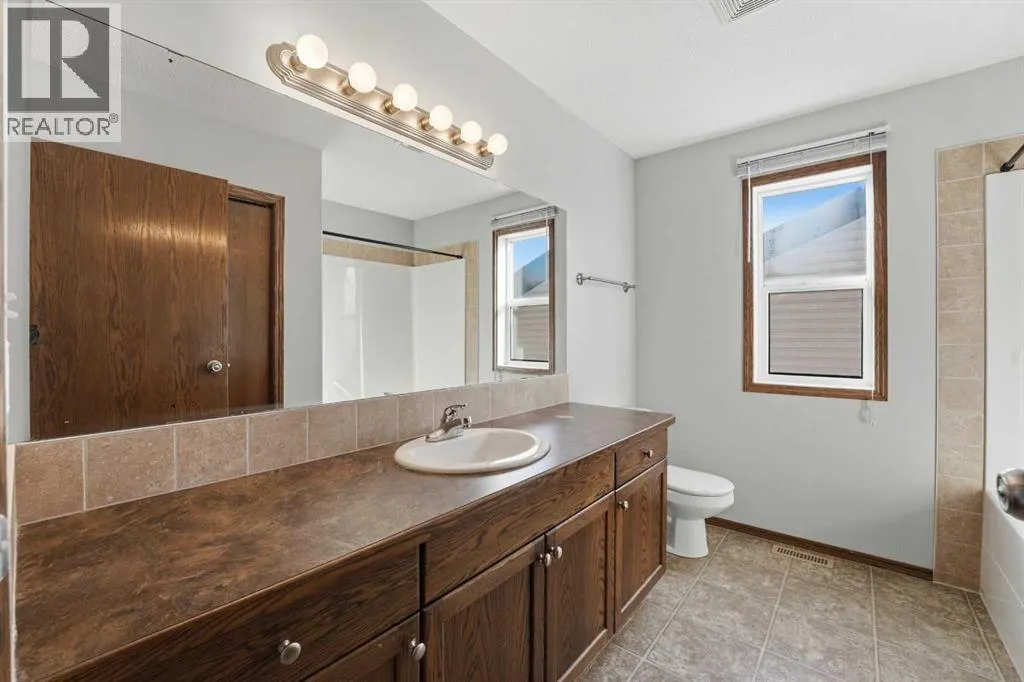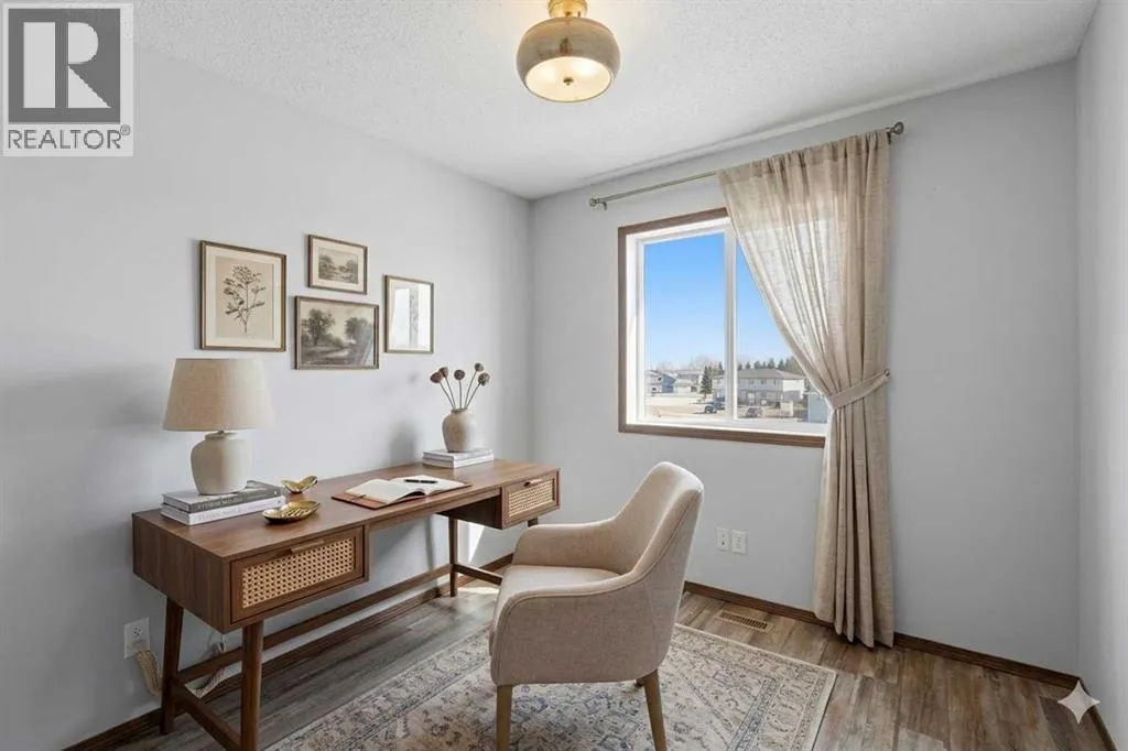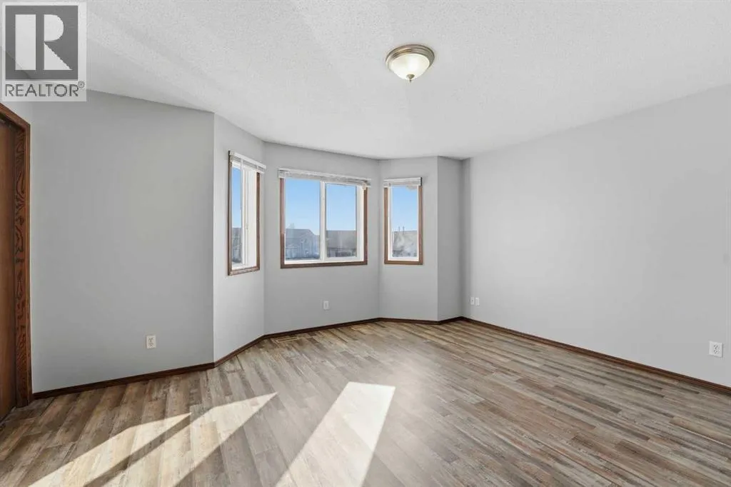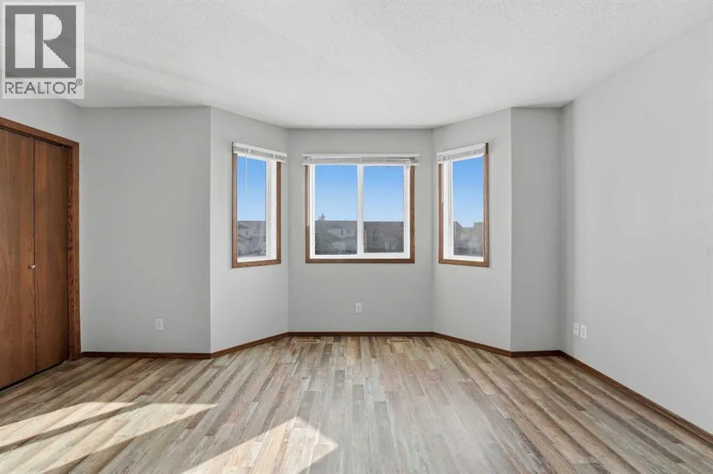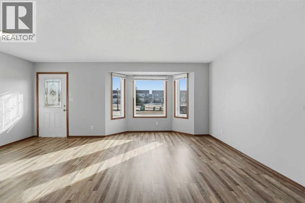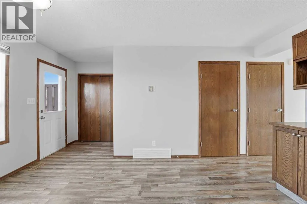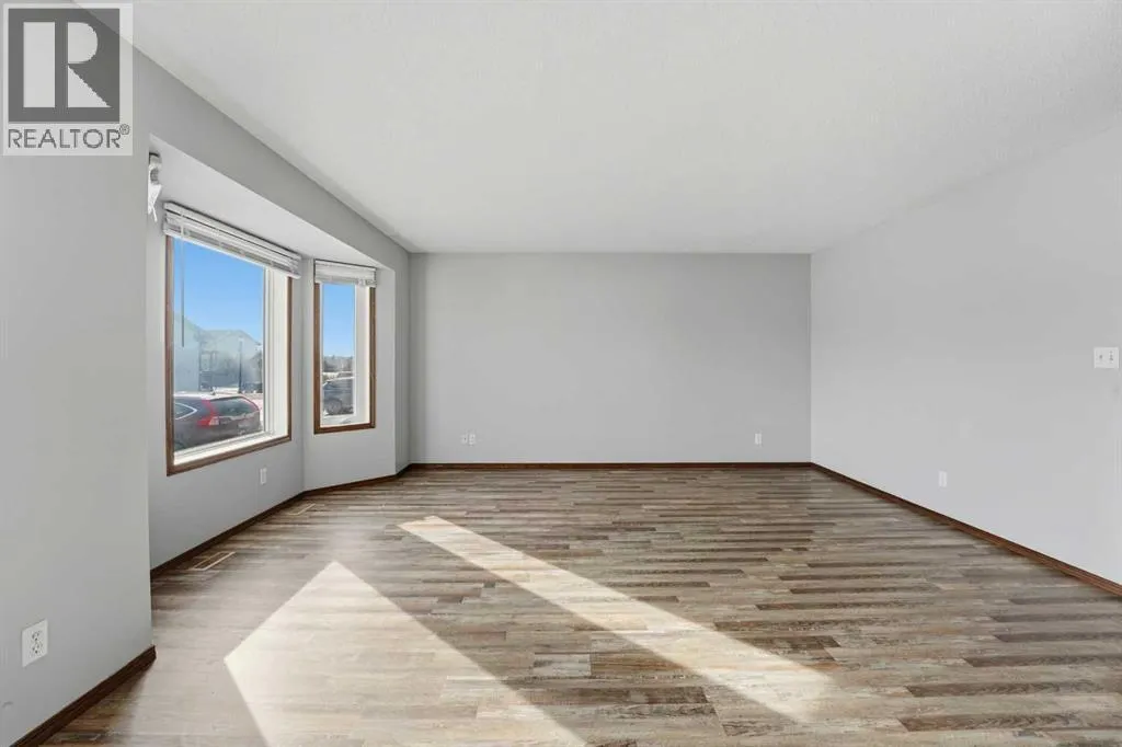 End unit townhouse situated across from a park with 2 parking spaces out front plus visitor parking. 3 bedrooms, 2 bathrooms, vinyl plank flooring throughout the main and upper levels with carpet on the stairs. A large bay window in the front living room offers an abundance of floor space and natural light. Oak cabinets with a dark stain in the spacious kitchen and appliances are included! 2 piece bathroom at the back entrance that leads to the deck and fenced yard. On the upper level, you will find a 4 piece bathroom, 3 bedrooms with a very spacious primary bedroom with his and her closets. The basement is undeveloped with RI for a 3rd bathroom. Great home for someone starting out or looking to downsize! Quad lock insulated foundation for energy efficiency, (warm in the winter, cool in the summer months)! Condo fee's of $270 monthly include exterior maintenance, management, building & fire insurance, snow removal, lawn care (not in backyards). Pets are allowed with approval. (id:27476)