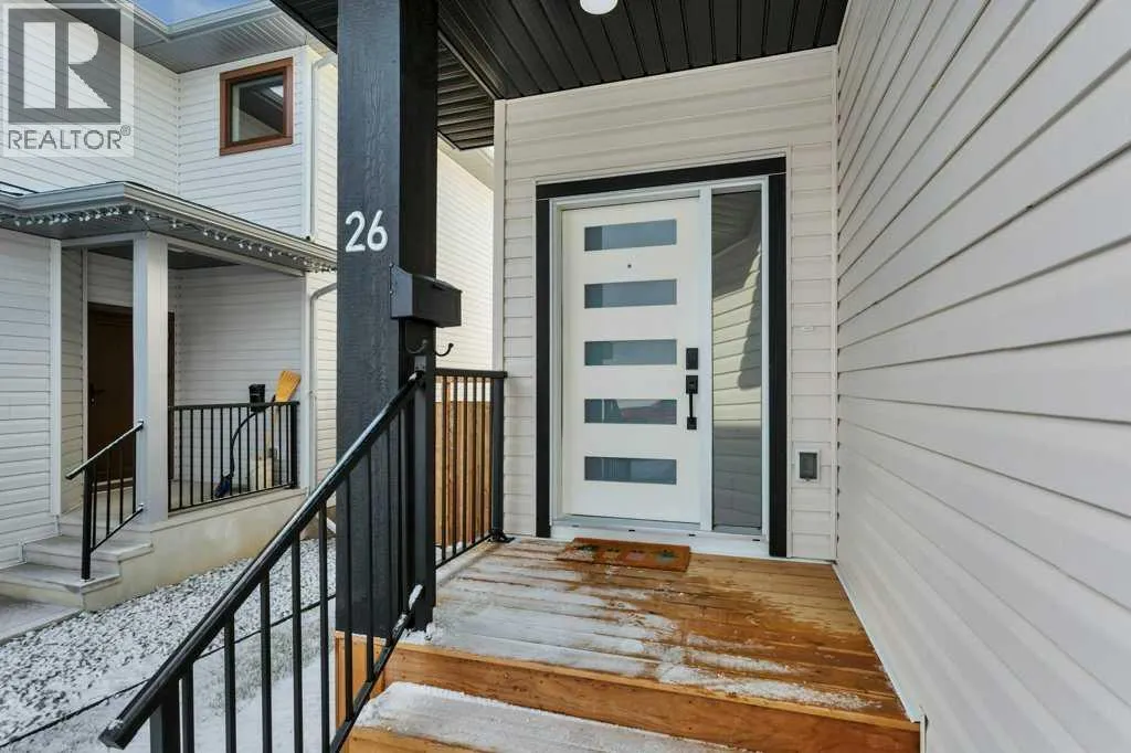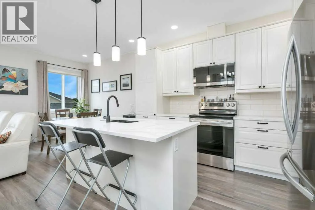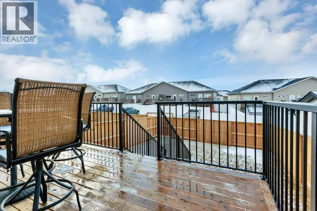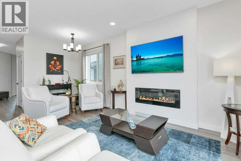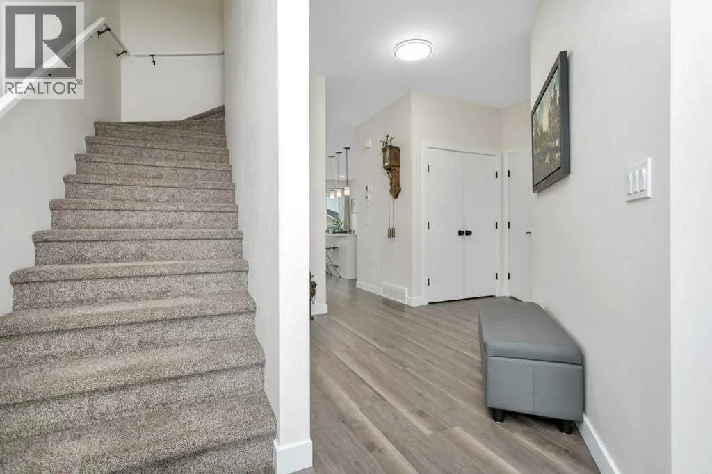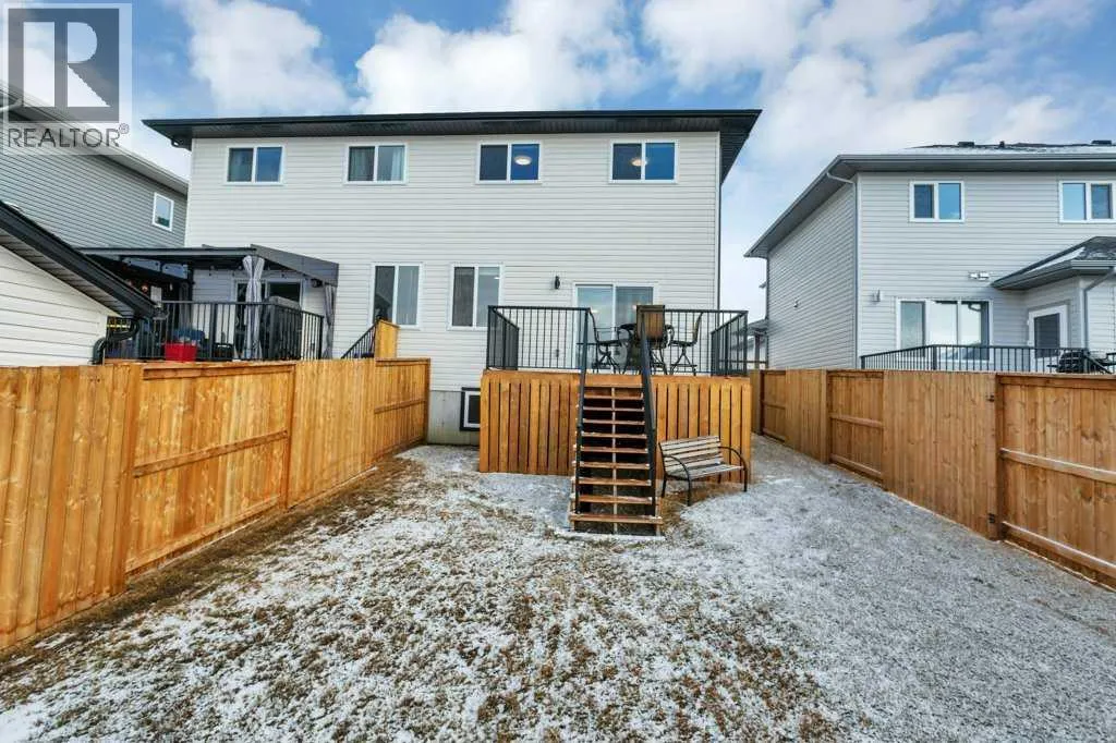 ALMOST BRAND NEW IN ATHENS PLACE! This one owner semi-detached home in Blackfalds is the perfect place to call home. Be welcomed at the front entrance to a large foyer with ample closet storage. The open concept main floor offers 9' ceilings complete with a large living space with electric fireplace, modern white kitchen, large island, quartz countertops, stainless steel appliances and a dining space with garden door to the back yard. Two piece bathroom completes the main level. This home also comes complete with newly installed blinds. Head upstairs, you will find vinyl plank and plush carpet throughout, a bright primary retreat with a five piece ensuite including dual sinks and walk-in closet. Upstairs there is also a spacious laundry room, two additional bedrooms and four piece bathroom. The basement is undeveloped and offers room for a fourth bedroom, third bathroom and family room. The south facing rear yard has been fully fenced and landscaped and offers all day sunshine along with additional storage below the deck. Attached garage is insulated and has 220v power. This is an exceptionally well cared for home in a quiet cul-de-sac, making it the perfect for you and your family! (id:27476)