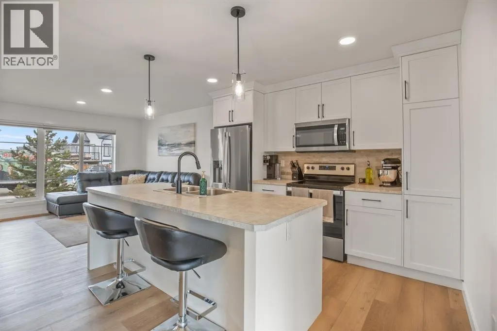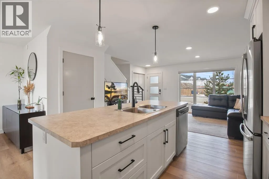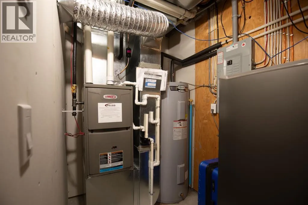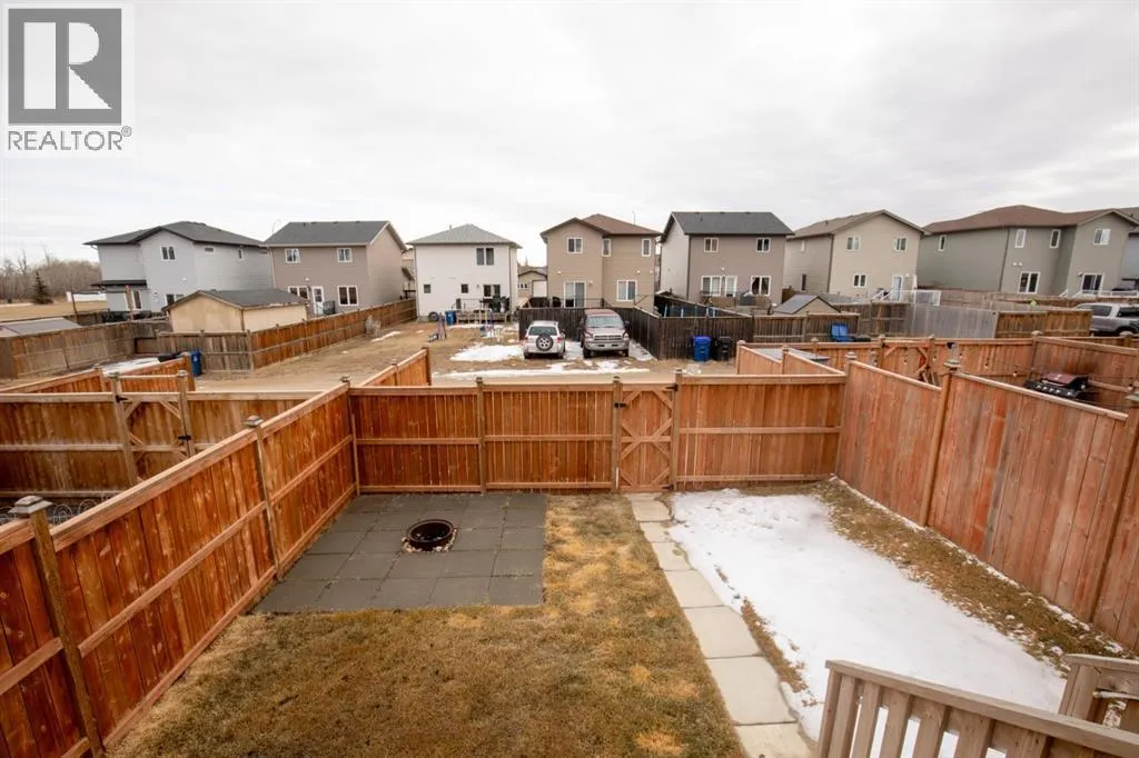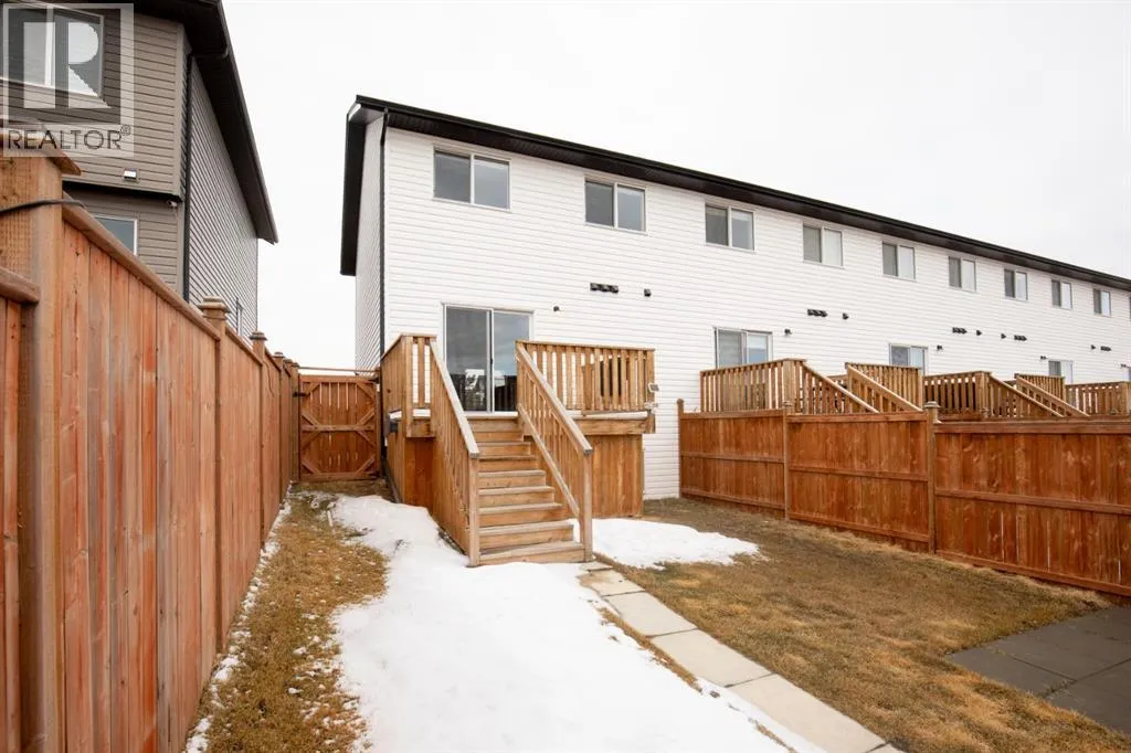 No Condo Fees! End unit with A/C! Located in a family-friendly neighbourhood in the Town of Blackfalds, this home is close to schools, parks, shopping, and the Abbey Centre, making it a great fit for families, first-time buyers, or investors. This well-maintained 3 bedroom, 2.5 bathroom townhouse offers a functional layout and modern finishes throughout. The bright open-concept main floor features a spacious living room, dining area, and kitchen complete with stainless steel appliances, perfect for both everyday living and entertaining. A convenient half bath with main floor laundry is located just off the back entrance. Upstairs, youâll find three bedrooms, all equipped with upgraded blackout blinds. The primary bedroom includes a full ensuite and a large closet, along with an additional full bathroom with a tub for the secondary bedrooms. The basement is unfinished but offers excellent potential, featuring large windows and rough-in for a fourth bathroom. This generous space has previously been used as a home gym and movie room, while still providing plenty of storage. Outside, enjoy a fully fenced backyard with a deck, covered storage below, and a cozy firepit area. The rear parking pad is oversized and includes two plug-ins for added convenience. A great opportunity to own an end unit with no condo fees and thoughtful upgrades throughout! (id:27476)