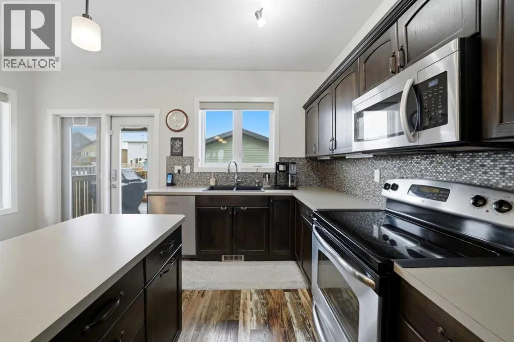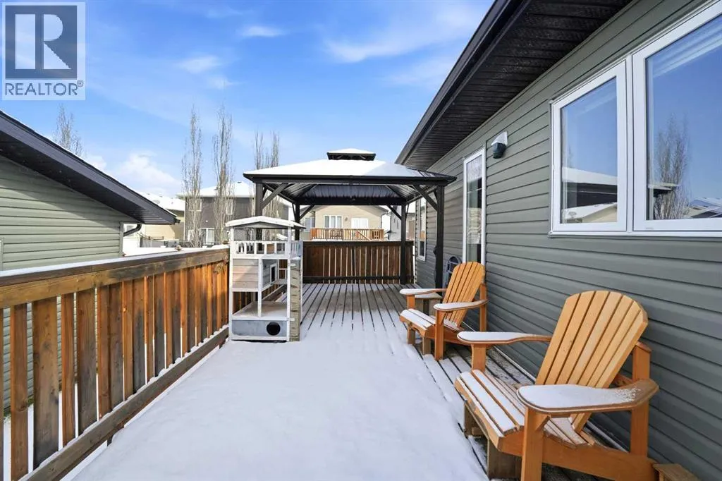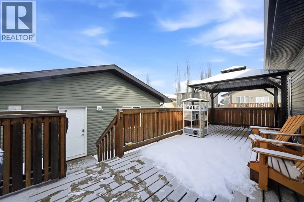 This beautifully maintained BUNGALOW is the perfect blend of COMFORT, STYLE and FUNCTIONALTY- An inviting home filled with NATURAL LIGHT streaming from both the EAST and WEST! From the moment you step inside, youâre welcomed by a warm, neutral palette and an IMMACULATE interior that feels both MODERN and TIMELESS. The OPEN-CONCEPT main floor is designed for effortless living and entertaining, featuring a STUNNING MAPLE kitchen with a large island, wall pantry, stainless appliances and UPGRADED LIGHTING that adds a touch of ELEGANCE throughout the space. The thoughtful layout includes two bedrooms on the main floor, along with the convenience of MAIN FLOOR LAUNDRY ROOM! The primary suite is a true retreat, complete with spacious his/her closet, and a lovely 4-piece ensuite bathroom, creating a private and RELAXING ESCAPE. Downstairs the FULLY DEVELOPED BASEMENT expands your living space even further. It boasts a generous 15x30 recreation room with a WET BAR-perfect for hosting or unwinding-as well a large bedroom that can comfortably accommodate two king size beds, a double closet and a 4-piece ensuite. With three bedrooms in total- two of which have ensuites- this home offers exceptional comfort and FLEXIBILITY for families and guests alike. Every detail has been designed to create a bright, WELCOMING, and MOVE IN READY space you'll be proud to call home. Double doors from the dining lead to an EXCEPTIONAL GENERIOUS SIZED PATIO (10x30) where you can relax out of the sun under your new PERGOLA. Other great features and upgrades include: gas line for BBQ, Outside storage unit, RV parking, AIR CONDITIONING, KINETICO water filtration system, sump pump, heated garage, reverse osmosis, wire shelving in basement, new fridge and dishwasher, new fence, covered front VERANDA, central vacuum, roughed in- in floor heat. All this tucked away in the BEAUTIFUL newer subdivision of MORRIS COURT! Blackfalds is a growing close-knit community with ALL THE AMENITIES one could ask for, and only 8 minutes to RED DEER. (id:27476)