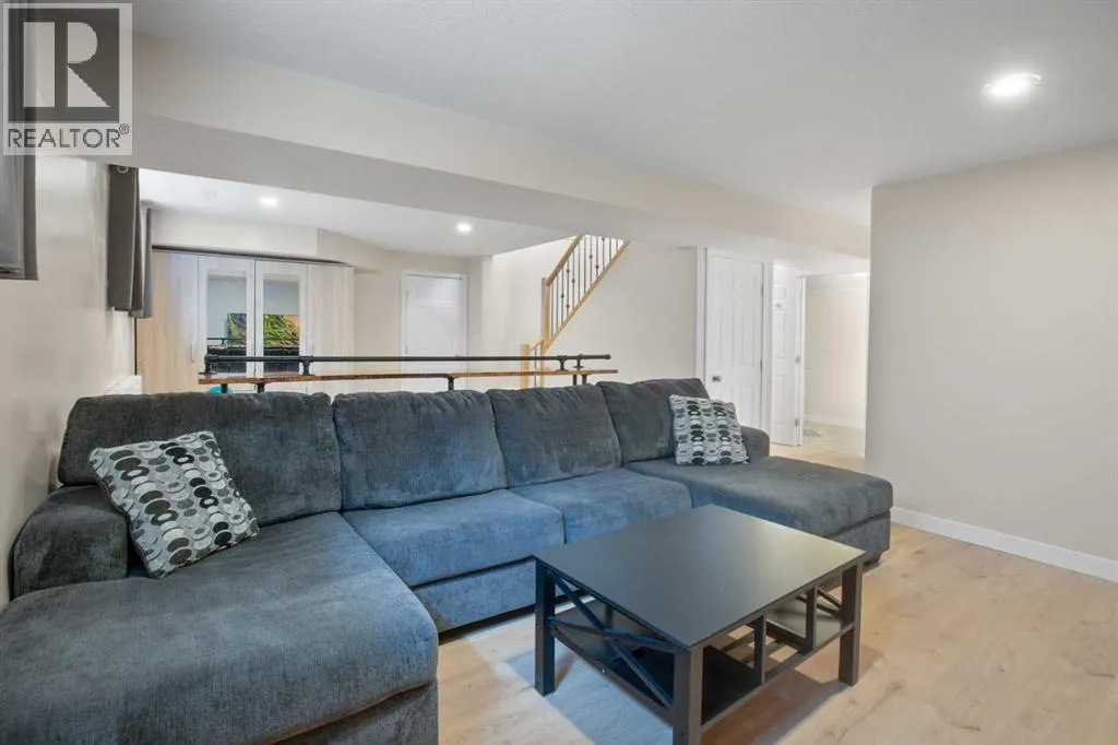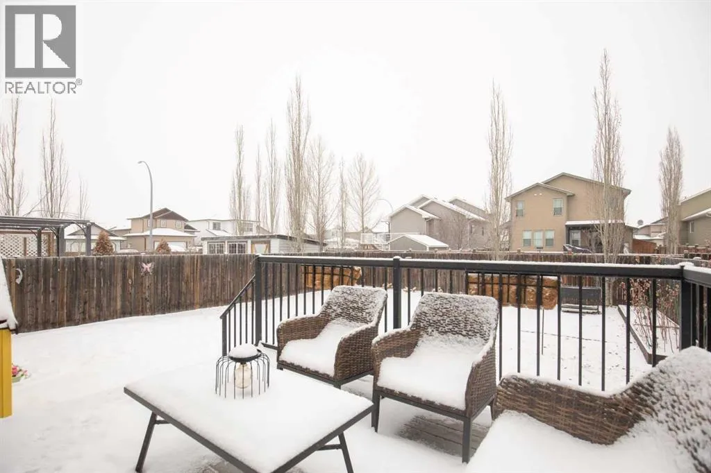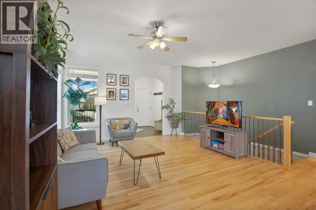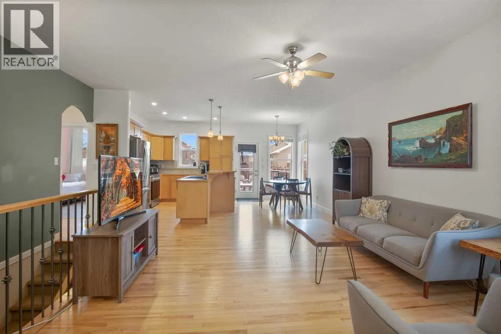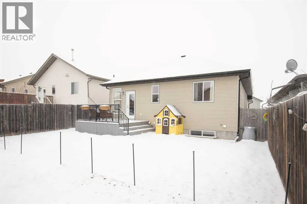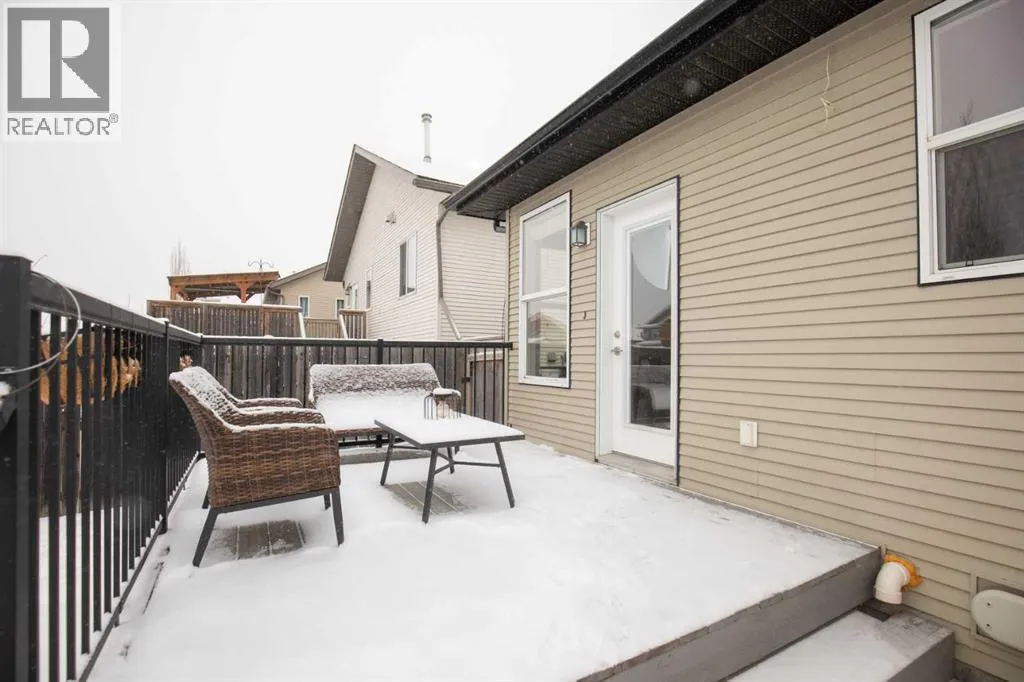 NOW OFFERING this fully finished family home with attached double garage on a quiet cul-de-sac! This home has great curb appeal with its dark garage door and trim, and covered front deck. Enter into a large tiled entrance and an open floor plan main floor. You'll love the warmth of the hardwood flooring, tall ceilings, and large windows. There are extensive cabinets, stainless steel appliances, tiled backsplash, and a large island in the kitchen. The master bedroom is spacious and has his and hers closets, and a three piece ensuite bathroom. There's a second bedroom and full bathroom upstairs as well. The basement is very large and has an open floor plan. The family room has plenty of room for your entertainment area, plus home office, play area or whatever you desire. There's a third and third and fourth bedroom and another full bathroom downstairs as well. Enjoy the back yard on your two-level deck with aluminum railing, overlooking the fully fenced and landscaped yard. The double attached garage is insulated and roughed in for in-floor heat. (id:27476)