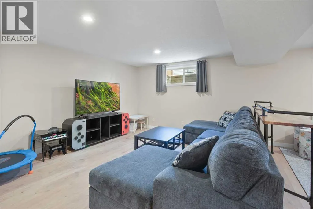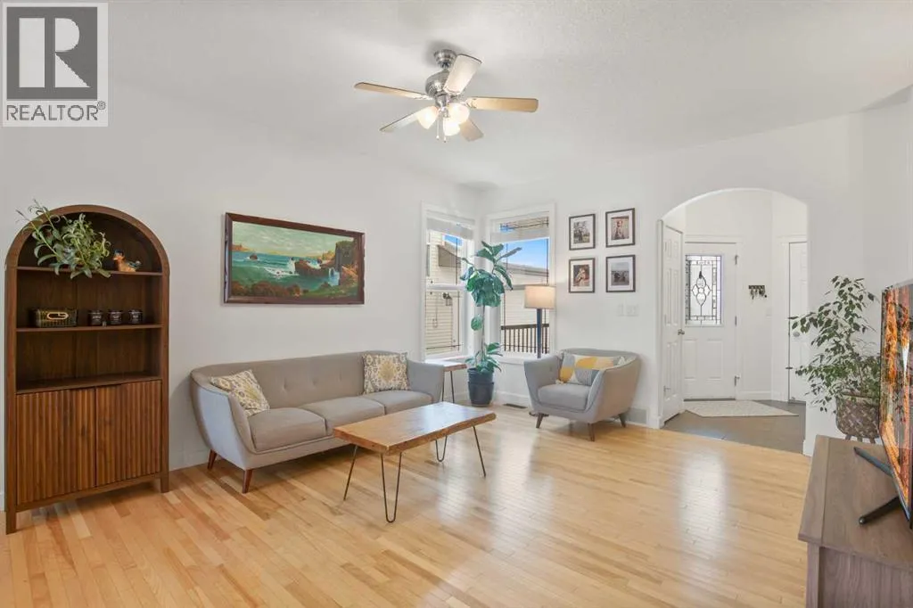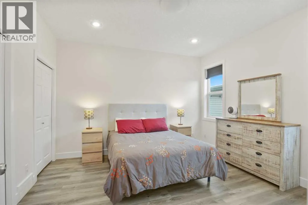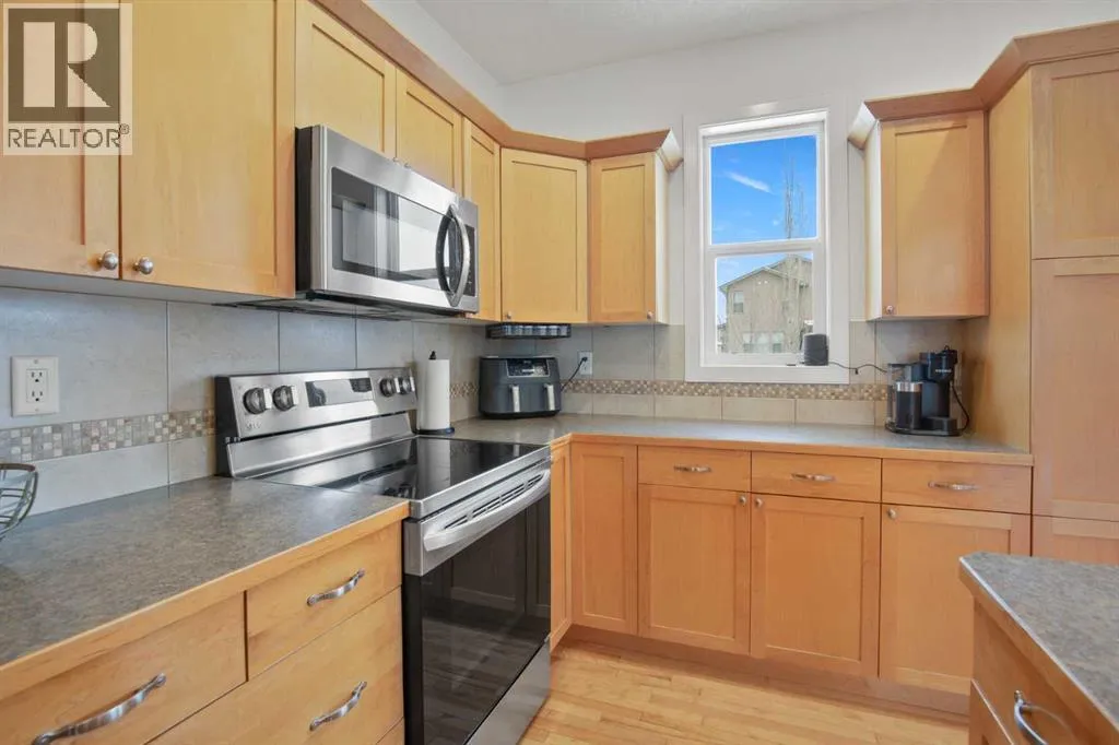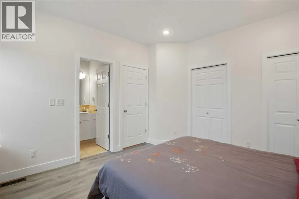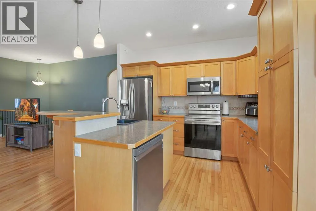 NOW OFFERING this fully finished family home with attached double garage on a quiet cul-de-sac! This home has great curb appeal with its dark garage door and trim, and covered front deck. Enter into a large tiled entrance and an open floor plan main floor. You'll love the warmth of the hardwood flooring, tall ceilings, and large windows. There are extensive cabinets, stainless steel appliances, tiled backsplash, and a large island in the kitchen. The master bedroom is spacious and has his and hers closets, and a three piece ensuite bathroom. There's a second bedroom and full bathroom upstairs as well. The basement is very large and has an open floor plan. The family room has plenty of room for your entertainment area, plus home office, play area or whatever you desire. There's a third and third and fourth bedroom and another full bathroom downstairs as well. Enjoy the back yard on your two-level deck with aluminum railing, overlooking the fully fenced and landscaped yard. The double attached garage is insulated and roughed in for in-floor heat. (id:27476)