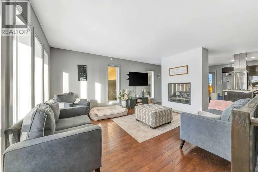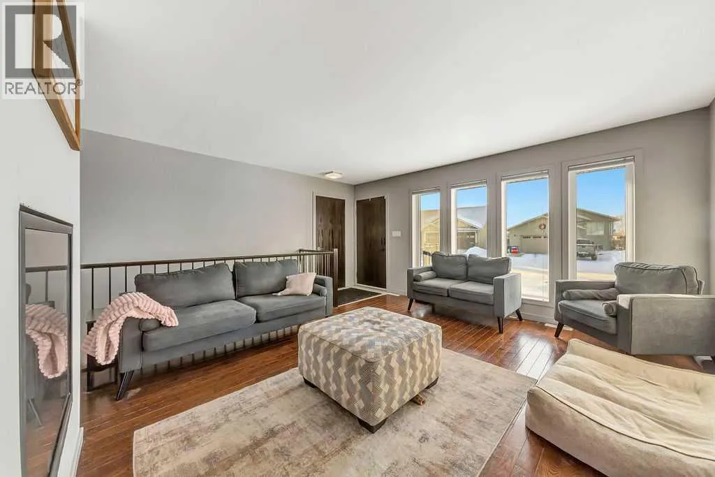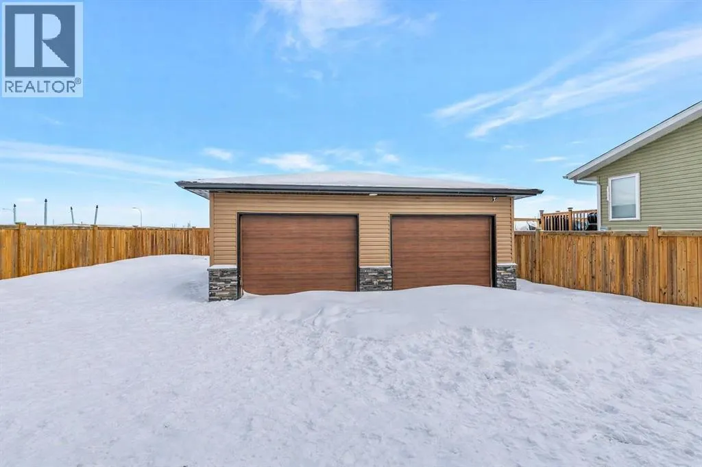 Welcome to this exceptional modern home in Blackfoot â where style, function, and comfort come together effortlessly.From the moment you arrive, the home impresses with great curb appeal and tasteful, low-maintenance landscaping, setting the tone for whatâs inside. Step through the front door and youâre welcomed into a bright, open-concept living, dining, and kitchen space, anchored by a striking double-sided modern gas fireplace â the perfect focal point for both everyday living and entertaining.The high-end kitchen is sure to steal the show, featuring sleek finishes and thoughtful design that blend beauty with practicality.The primary suite offers a private retreat, complete with direct deck access, a walk-in closet, and a luxurious 4-piece ensuite featuring dual sinks and a walk-in, multi-headed tiled shower. A second bedroom, stylish 3-piece bathroom with walk-in tiled shower, and a dedicated laundry room complete the main level.Downstairs, youâll find two additional bedrooms, plus a flex room ideal for a home office or optional bedroom, a 4-piece bathroom, and a spacious family room â perfect for movie nights, games, or relaxing with family.Outside, enjoy a covered deck, patio area, and a double detached heated garage, rounding out this thoughtfully designed property.Modern, functional, and move-in ready â this is one you wonât want to miss. (id:27476)