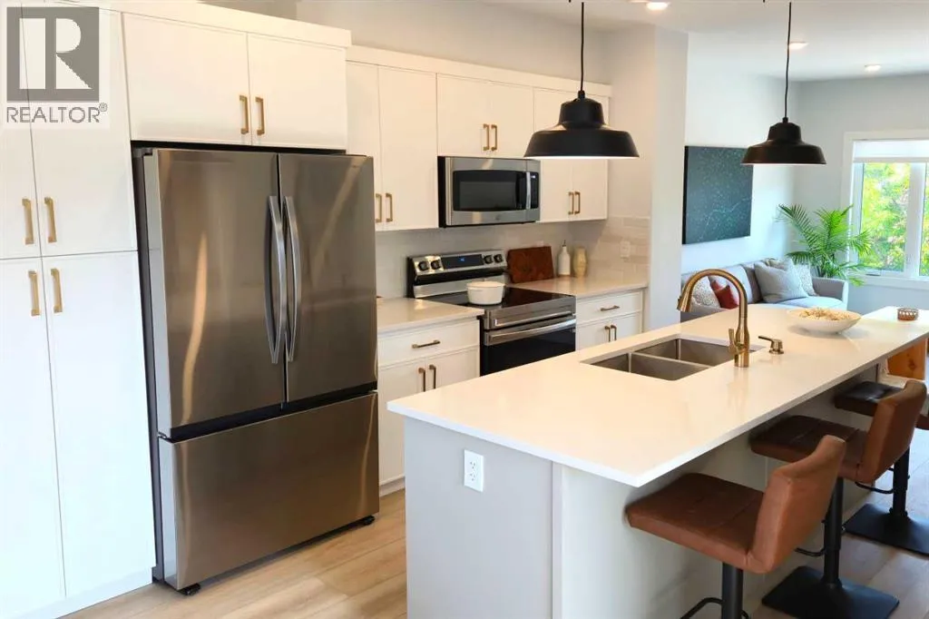 Listed price includes GST. Welcome to Centre 5! This perfectly located 4-bedroom, 3.5-bath, double-car garage infill development in downtown Blairmore is your chance to own a uniquely situated property in an up-and-coming mountain community. Designed for those seeking convenience and low-maintenance living, the property features a zero-maintenance exterior and landscaping, perfect for anyone eager to spend more time enjoying the mountains and less time on upkeep or yard work. Situated just steps away from local shops, cafes, and the riverside community trail, this is a perfect lifestyle property. The proximity to the ski hill, biking/hiking and other recreational amenities make it easy to leave your car at home and head out for adventure on foot or bike.Tall ceilings and large windows capture stunning views of the surrounding mountains and nearby ski hill. The covered, hot-tub-ready, rear decks lend themselves to relaxation after a day of recreation. The spacious open floor plan, along with a second master suite, makes this property ideal for entertaining friends and family or hosting overnight guests at your mountain getaway. With its walkable location, high-end finishes, exceptional features, and low-maintenance design, this property stands in a class of its ownâthereâs simply no comparable in Crowsnest Pass.Donât miss your chance to own this one-of-a-kind mountain home in an unparalleled location. Why hesitate; start living your best mountain life today! First time home buyer? You may be eligible for the New Housing GST rebate making this home even more affordable. (id:27476)