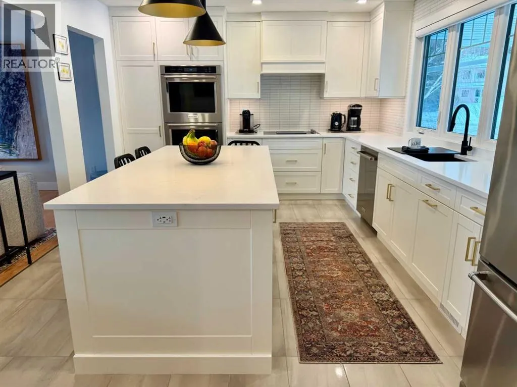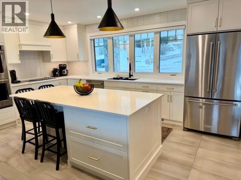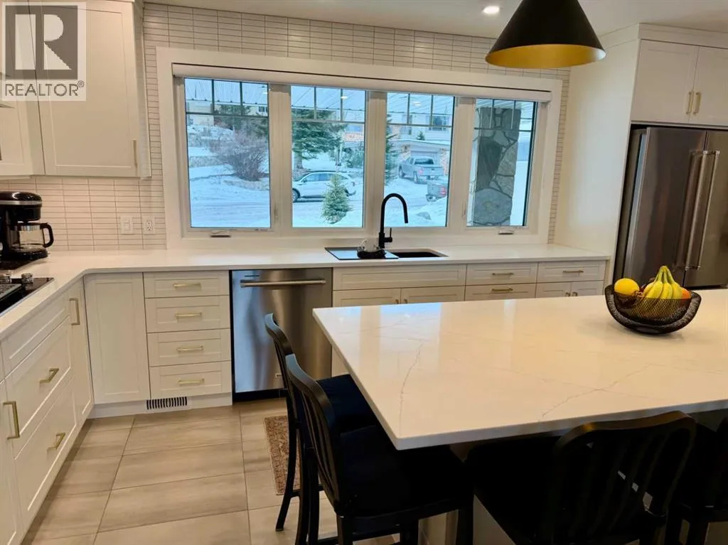 Location at its best, welcome to this S.E. Blairmore home in the Crowsnest Pass. This home has outstanding value, along with unsurpassed views of Crowsnest Mountain. Nestled on a corner lot in a desirable neighbourhood, just a block away from hiking trails. Extensively updated throughout, this low maintenance home showcases quality craftsmanship and thoughtful upgrades at every turn. The stunning kitchen features custom cabinets by Adora, quartz countertops, dual wall oven, and premium finishes. Recent improvements also include interior and exterior painting (2025), Jeld-wen doors and triple glazed windows, Hunter Douglas blinds (livingroom remote controlled), renovated bathrooms, recessed lighting, and two cozy fireplaces. Enjoy the convenience of abundant storage, fully developed walk-out basement, updated fascia and soffits, leaf filter gutter protection, newer furnace and (hot water tank 2025), central air conditioning (2023), and water softener (2023). This home must be viewed to appreciate the extensive renovations. The home is framed by beautifully updated landscaping creating a welcoming first impression and low maintenance outdoor living. The double attached garage and additional off-street parking complete the package. (id:27476)