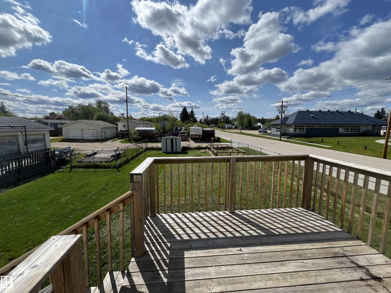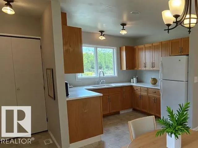Discover this delightful 4-bedroom, 2-bathroom bi-level in a family-friendly neighbourhood. Itâs perfectly located directly across from the Berry Nice Spray Park, Library, and Ice Rink. The main floor is bright and inviting, featuring a naturally illuminated living room with large windows. This level includes three bedrooms, all with good closet space and newer vinyl crank-out windows. A full bathroom is conveniently located here. The exceptional fully finished basement offers a versatile space, ideal for a private guest suite or extended family, as it includes a large living area, a second bathroom, and a kitchenette. This kitchenette offers easy conversion potential into a larger laundry room, workshop, or storage area. Outside, youâll find a fenced yard with a 10 ftÃ10 ft deck and a generous 10 ftÃ20 ft garden plot. Recent upgrades include the shingles, vinyl crank-out windows, and vinyl siding. Excellent location close to Whitecourt. (id:27476)