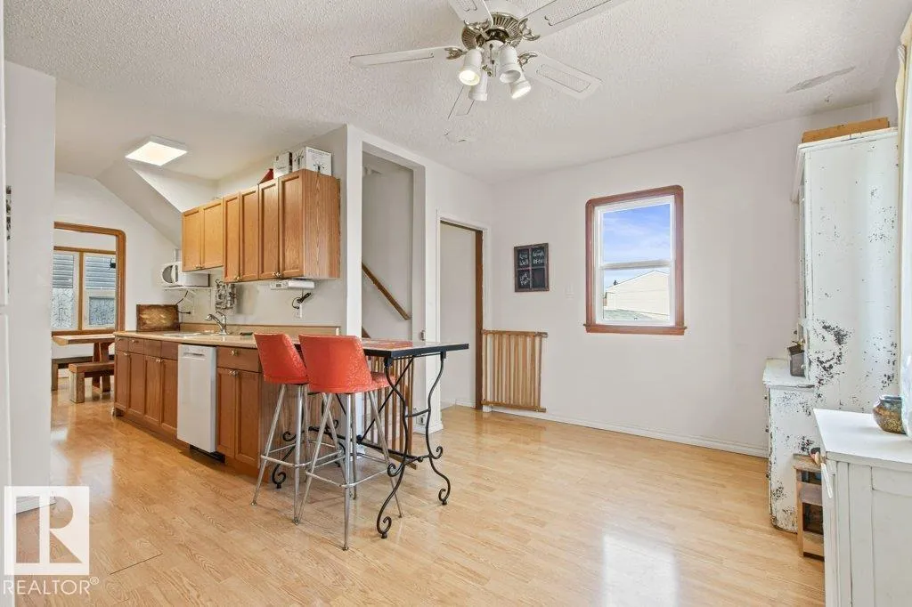 ***BON ACCORD GEM*** This beautiful 1950 Character home has much to be desired. There is over 1448sqft of living space, a HUGE DOUBLE GARAGE with workshop, a large fenced yard on a corner lot so less neighbours to deal with, upgrades including; MANY NEWER WINDOWS, FRONT DOOR PACKAGE, BACK DOOR in 2010 and ROOF in 2011. There is original wood trim throughout and original hardwood upstairs. The main floor offers a large open living and dining area, a spacious kitchen full of possibilities, a full washroom and large den. Upstairs features a large primary bedroom with 2 pc ensuite and 2 more spacious bedrooms. The basement is partly finished with a rec room space, lots of storage with a cold room and laundry. Outside you have a large deck with pergola, patio and a grassy area. Located in a quiet part of Bon Accord close to all amenities and 20 mins to North Edmonton. (id:27476)