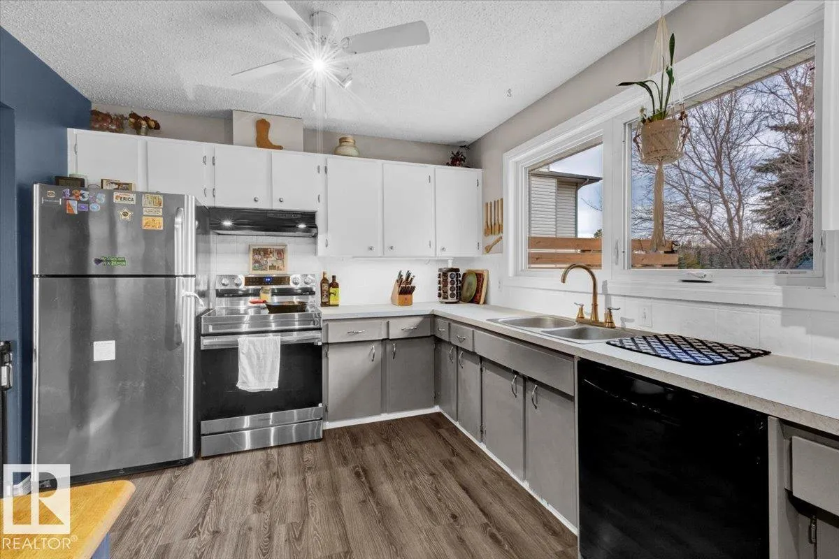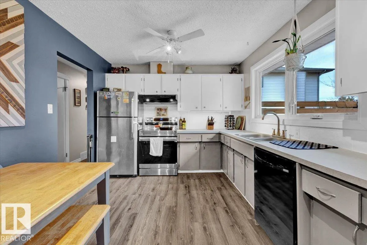 Perfect family bungalow backing on to a park! Upstairs has newer laminate & baseboards, three good sized bedrooms. Kitchen has a ton of cabinet & counter space with a deep pantry, room for a dining table, SS Stove(2025) & fridge. Large living room, 4pc bath thats been tastefully updated. Downstairs has been revamped with fresh paint, baseboards and crown molding. Cozy fourth bedroom. Large workshop/ storage (which could be turned into a walk in closet for the fourth bedroom) as well as a massive laundry room with ample storage area. DBL oversized detached garage is only 6 years old with pot lighting, epoxied flooring, insulated, 220 wiring, 8' tall door and 9'6 ceilings. Massive full fenced back yard with raised vegetable gardens, fire pit, beautiful mature trees.. Many upgrades over the years including vinyl windows, siding, roof, hot water tank. Don't miss out on this one! (id:27476)