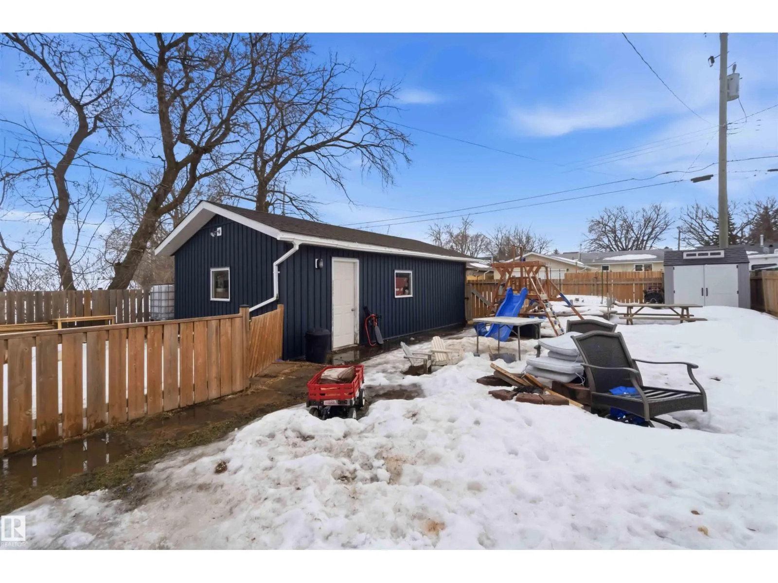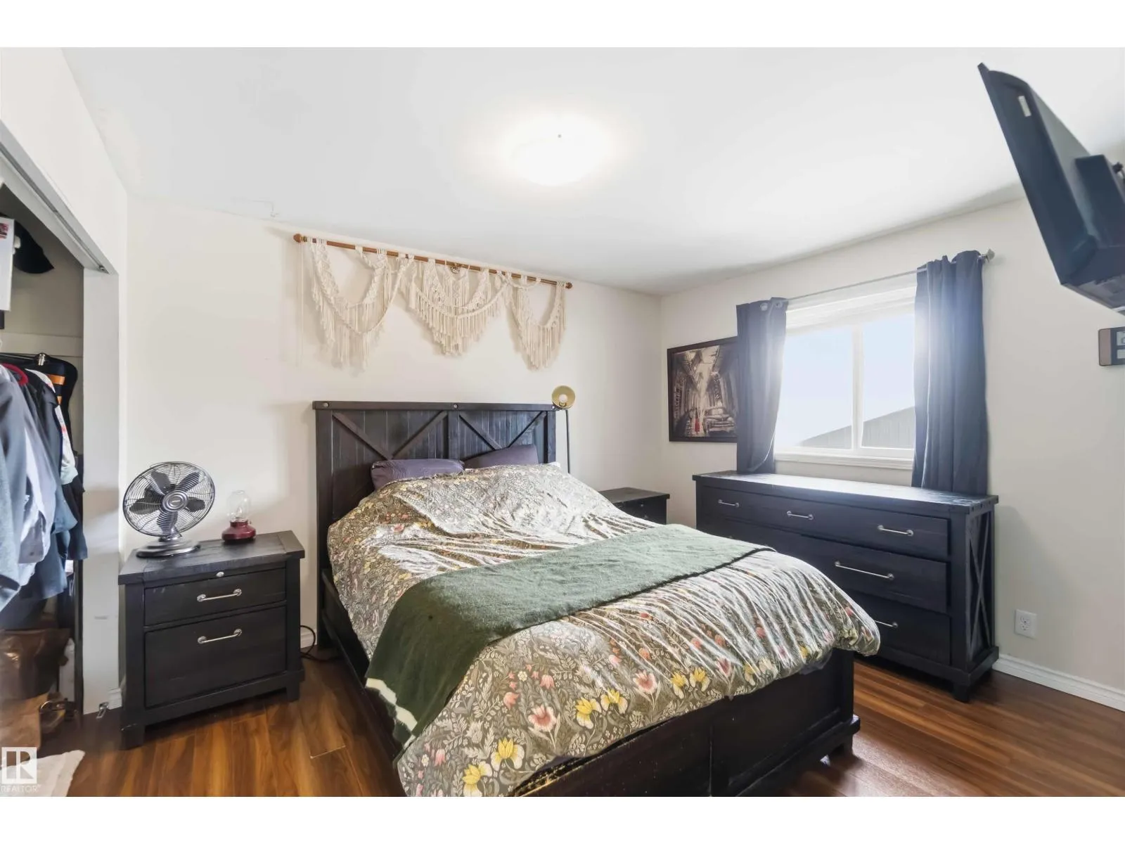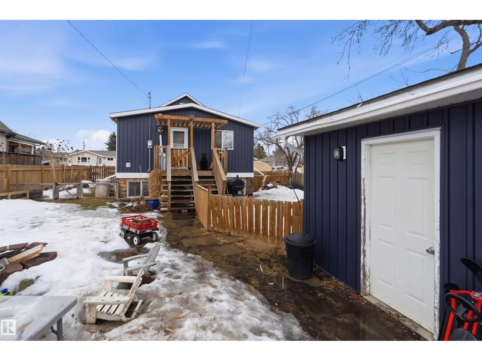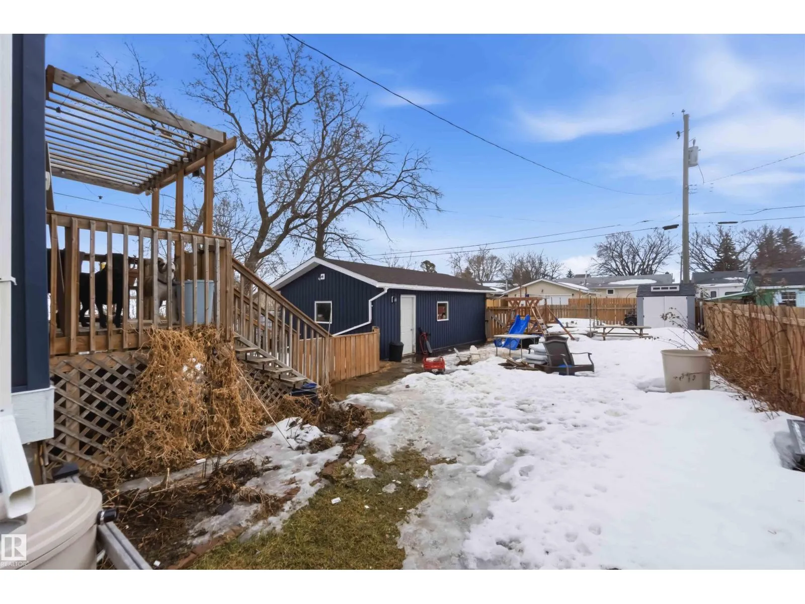 Get away from cookie cutter homes & come see this unique 1.5 storey home! This 1.5 storey home was moved onto a new ICF foundation in 2004 after a large addition was added in 1996. Modernized kitchen, great dining space & front living room overlooking the covered front deck. Primary bedroom, renovated 4 pc bathroom & main floor laundry. The upper floor maximizes use for another bedroom & bonus room perfect teen or hobby space! The basement level has 9 ft ceilings, 2 bedrooms, 3 pc bath with new shower, family room with huge windows, newer electrical, new sump pump, & H/E furnace. Gorgeous 50x125' lot with fenced back yard (newer fence), deck with pergola & an oversized single detached garage 26'x15' with 220 V & loads of extra parking space & RV parking on gravel pad. New siding (2026), shingles (2025) & some newer appliances. Steps away from the local amenities & 20 min drive to Edmonton Garrison & Anthony Henday. Fun town activities year-round in this great town of Bon Accord. (id:27476)