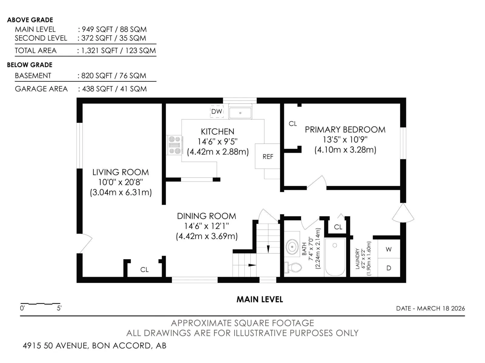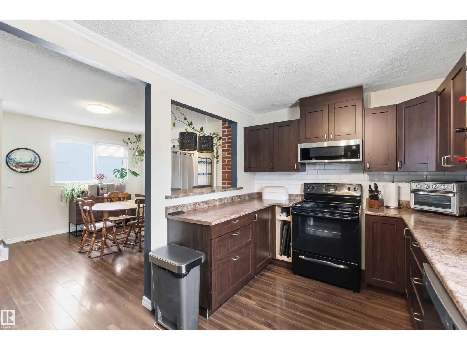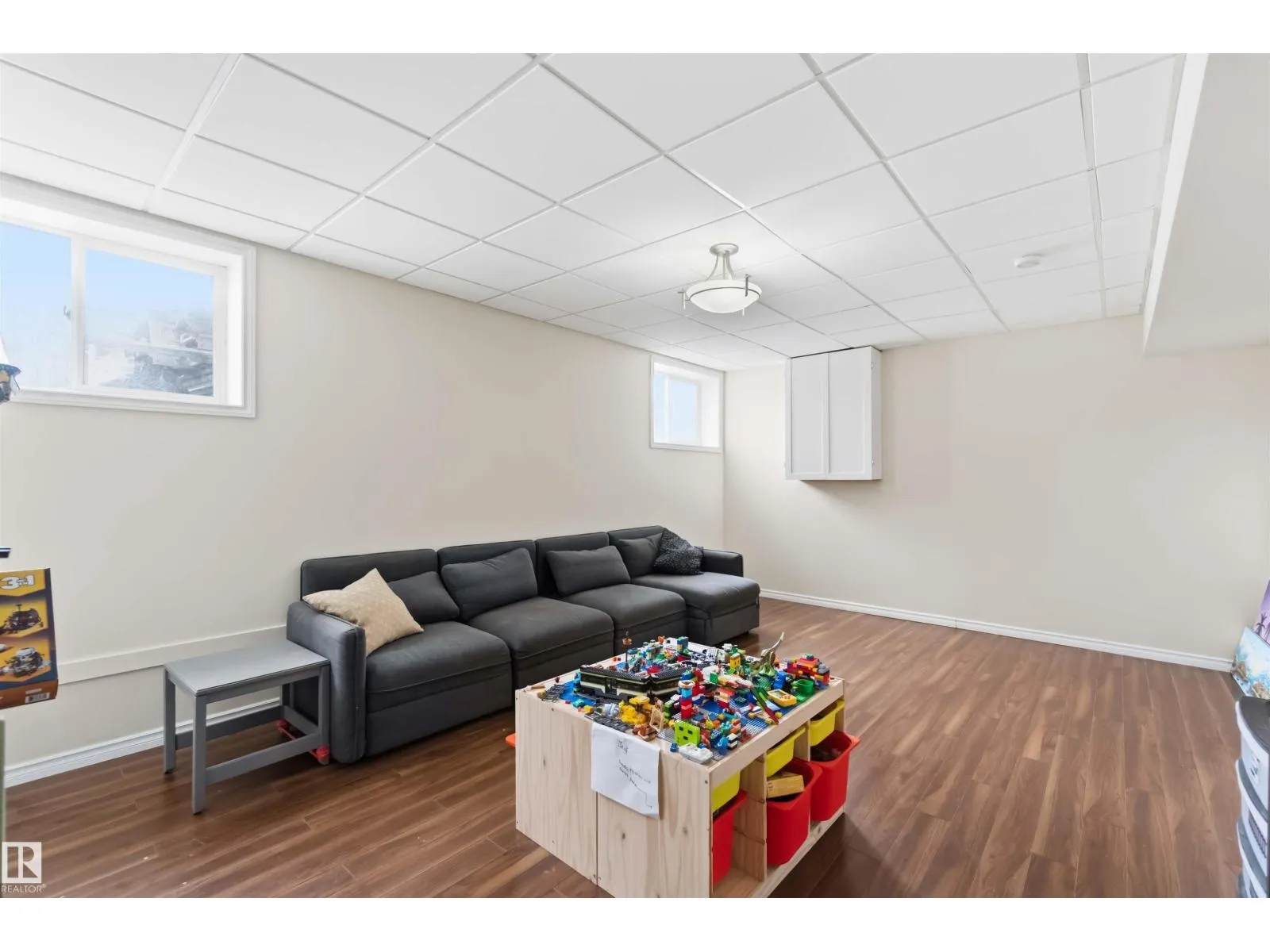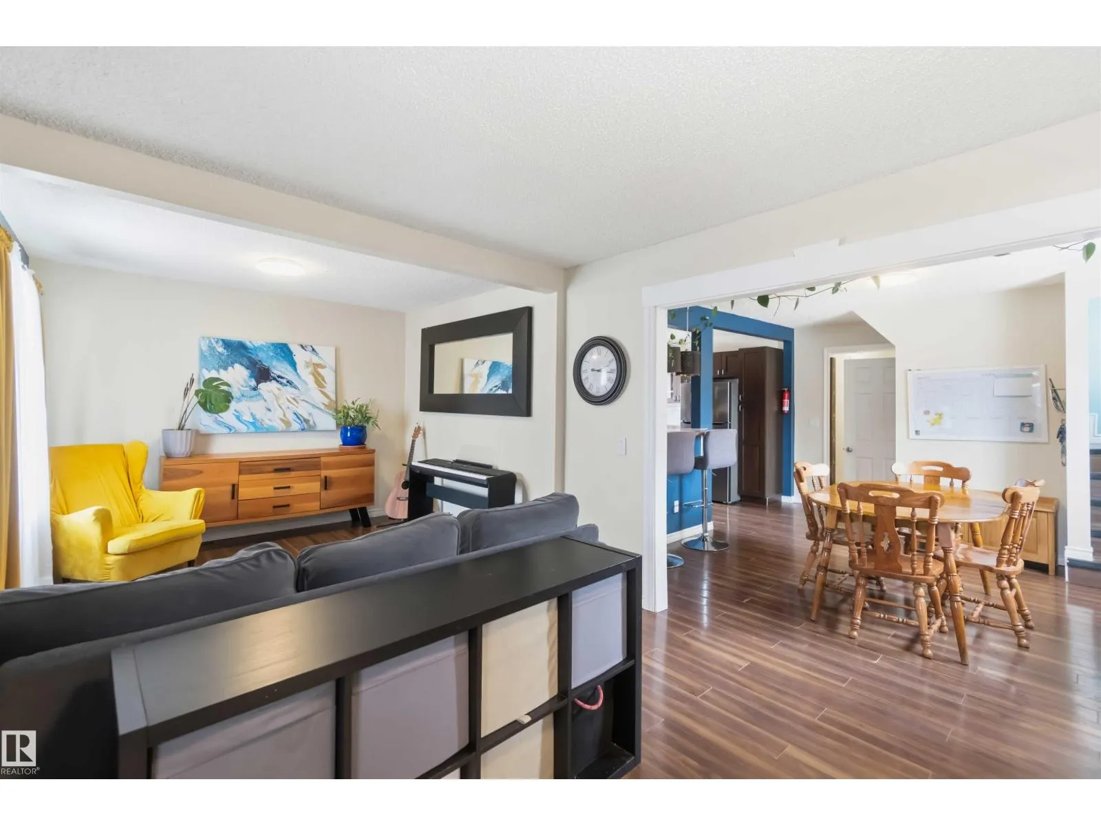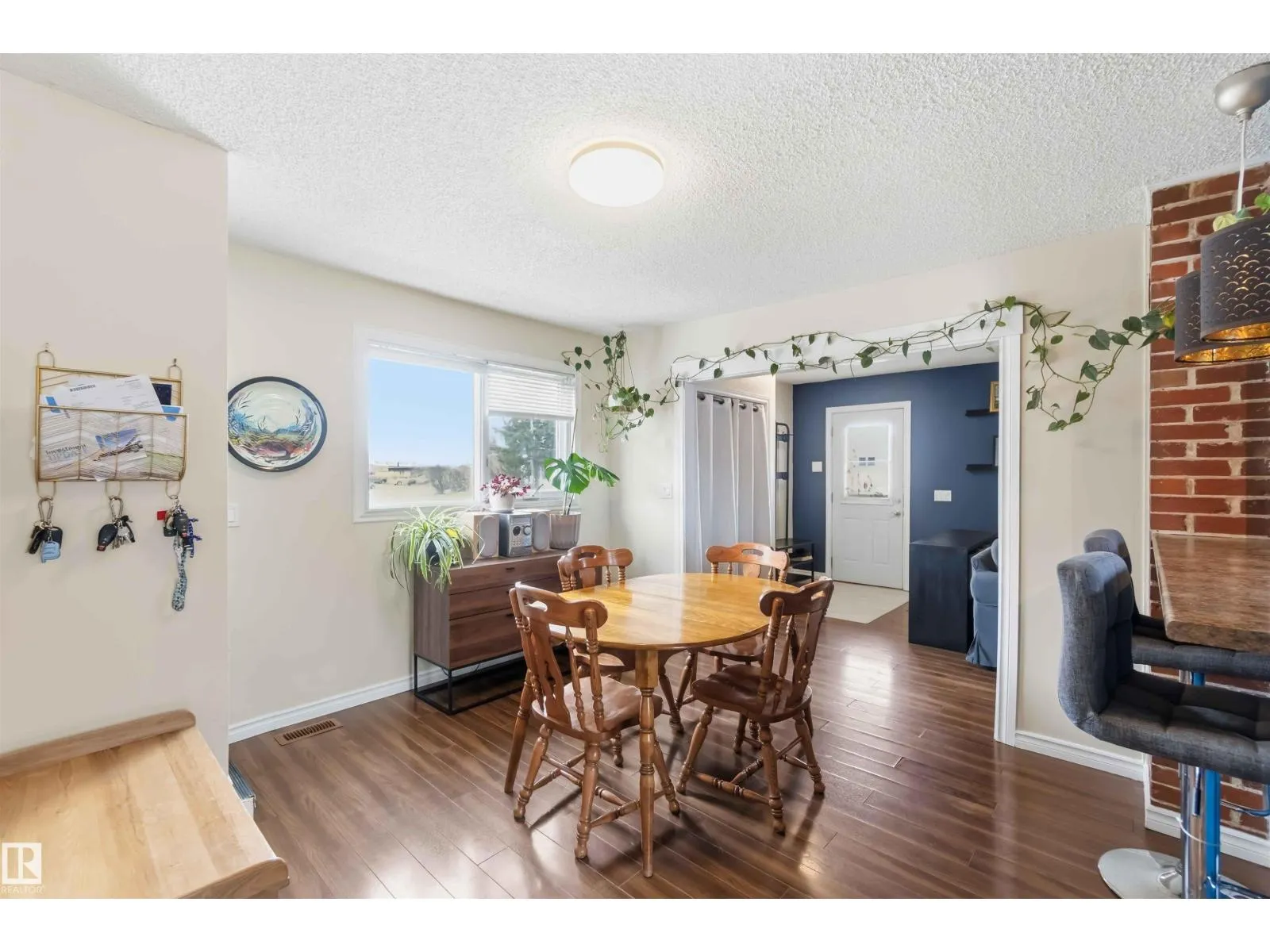 Get away from cookie cutter homes & come see this unique 1.5 storey home! This 1.5 storey home was moved onto a new ICF foundation in 2004 after a large addition was added in 1996. Modernized kitchen, great dining space & front living room overlooking the covered front deck. Primary bedroom, renovated 4 pc bathroom & main floor laundry. The upper floor maximizes use for another bedroom & bonus room perfect teen or hobby space! The basement level has 9 ft ceilings, 2 bedrooms, 3 pc bath with new shower, family room with huge windows, newer electrical, new sump pump, & H/E furnace. Gorgeous 50x125' lot with fenced back yard (newer fence), deck with pergola & an oversized single detached garage 26'x15' with 220 V & loads of extra parking space & RV parking on gravel pad. New siding (2026), shingles (2025) & some newer appliances. Steps away from the local amenities & 20 min drive to Edmonton Garrison & Anthony Henday. Fun town activities year-round in this great town of Bon Accord. (id:27476)