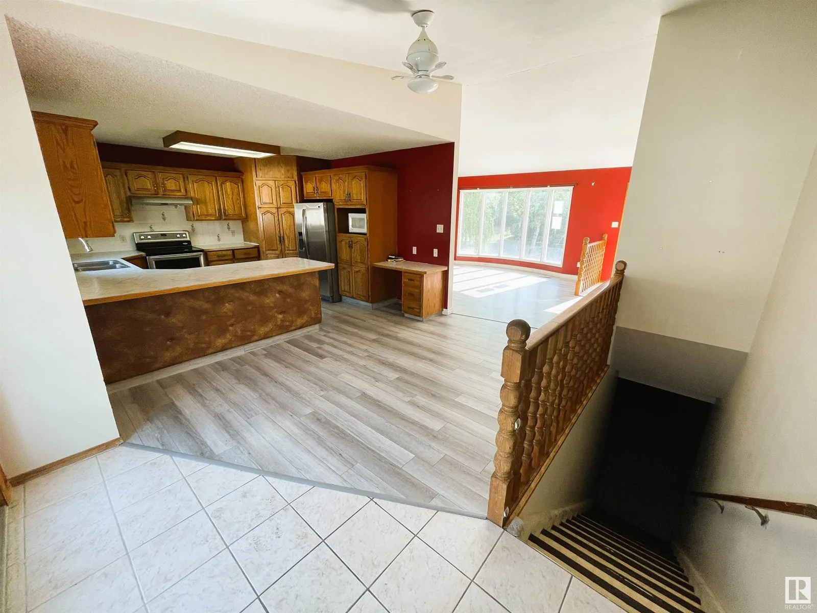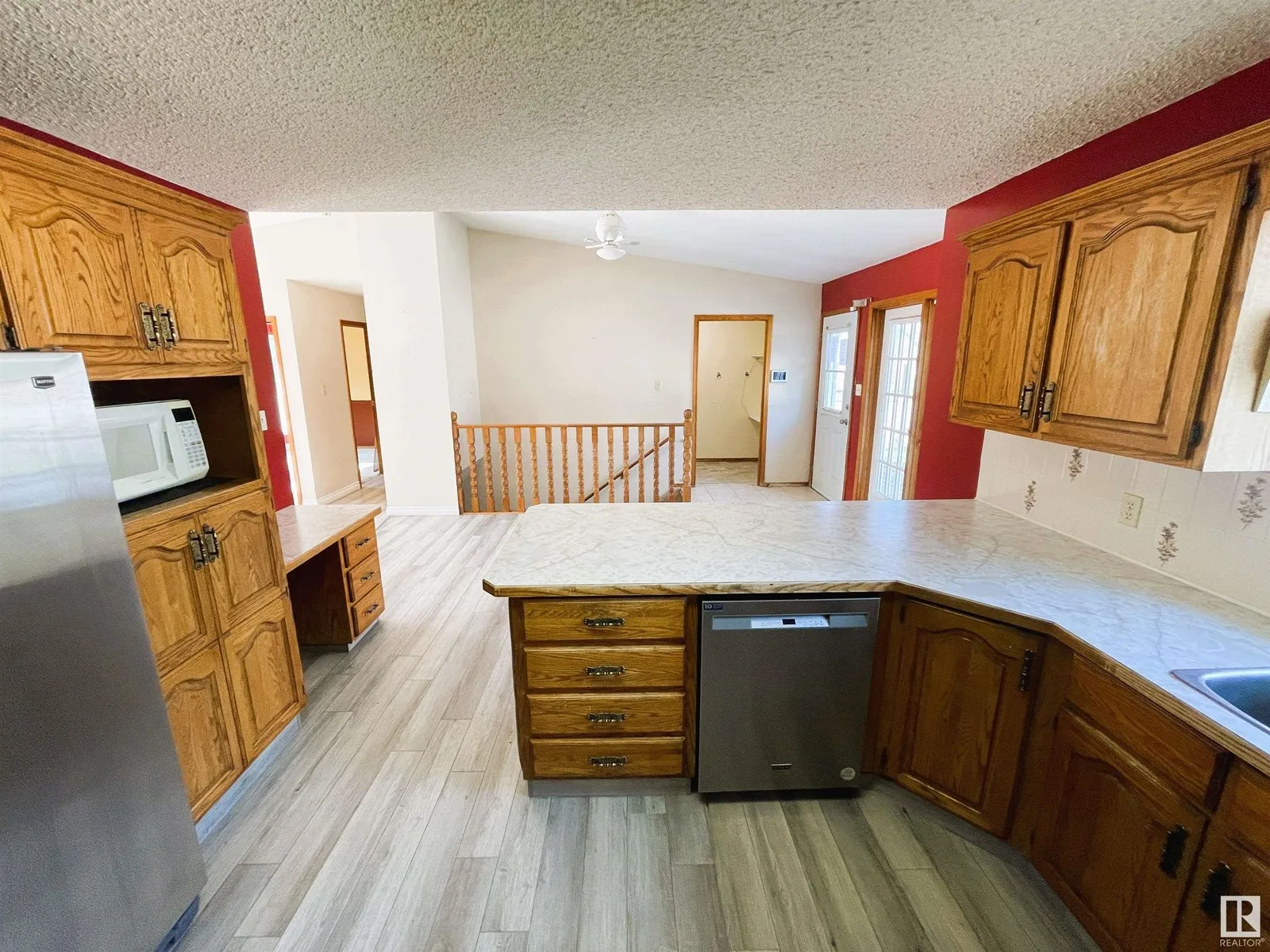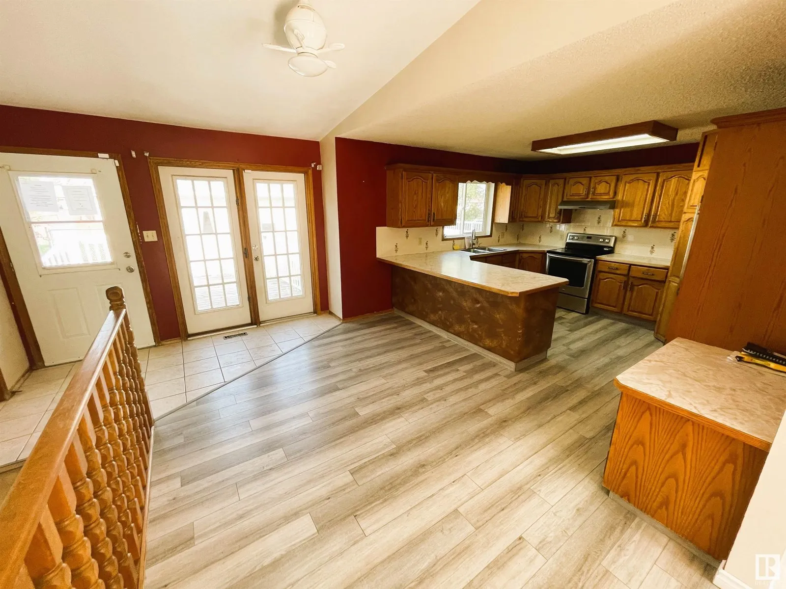 This spacious 1,343 sq. ft. bungalow offers 5 bedrooms and a welcoming layout, featuring oak kitchen cabinets and a large corner pantry. The dining area boasts French doors that open onto a 14â x 14â deckâperfect for entertaining. Enjoy new vinyl flooring, vaulted ceilings, a cozy fireplace, and a finished basement. The home includes 3 bathrooms, main floor laundry, heated 26â x 28â detached garage and fully fenced yard. Property sold AS IS WHERE IS. (id:27476)