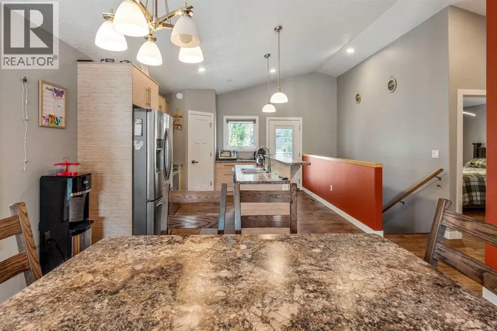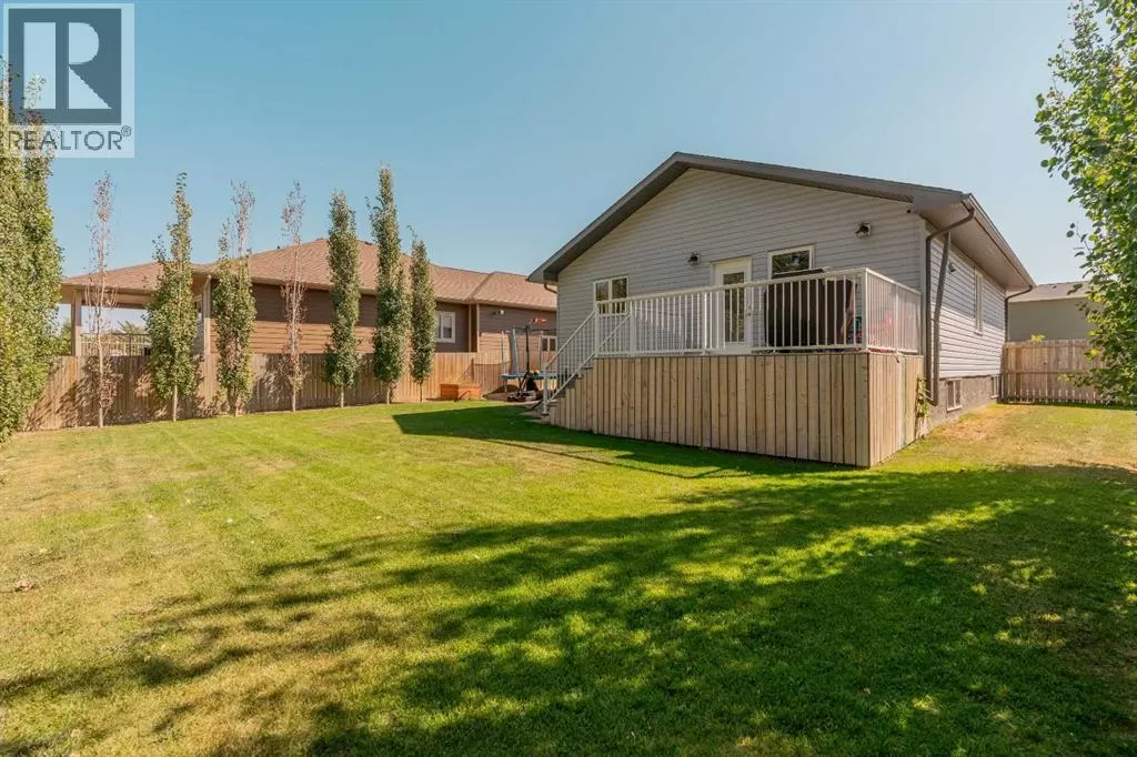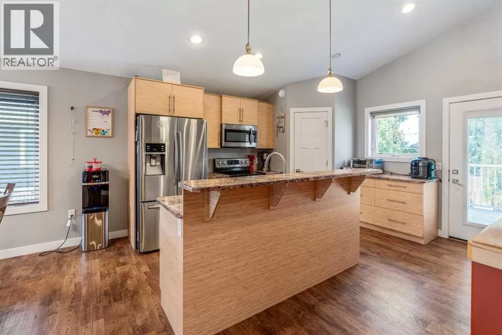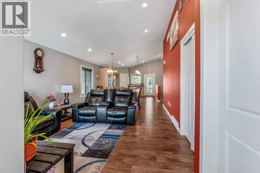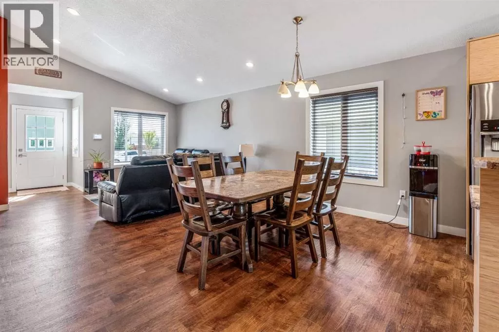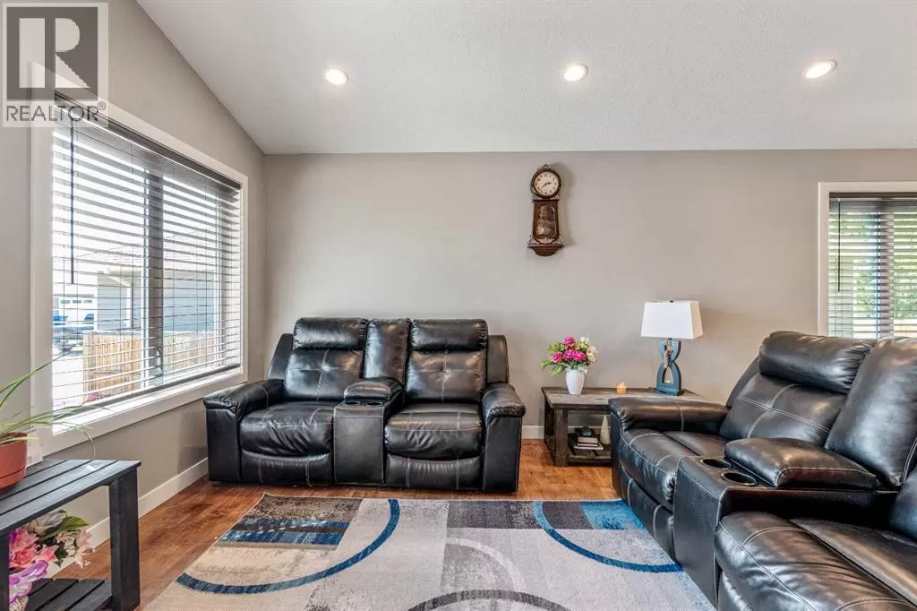 Welcome to this well-maintained home located in a newer neighborhood in Bow Island! Situated on a landscaped and fully fenced lot, this property features a super single attached garage and a gravel pad for convenient RV parking. Inside, the main floor boasts vaulted ceilings, pot lights, and stylish vinyl plank flooring throughout. The spacious kitchen offers, ample cabinetry, a pantry, and modern appliancesâperfect for both everyday living and entertaining. The finished basement includes a large bedroom, a dedicated office space, and a 3 piece bathroom. Additional highlights include a high-efficiency furnace with A/C and hot water on demand system, ensuring year-round comfort and energy savings. A fantastic opportunity to own a quality home in a growing communityâdonât miss out! (id:27476)