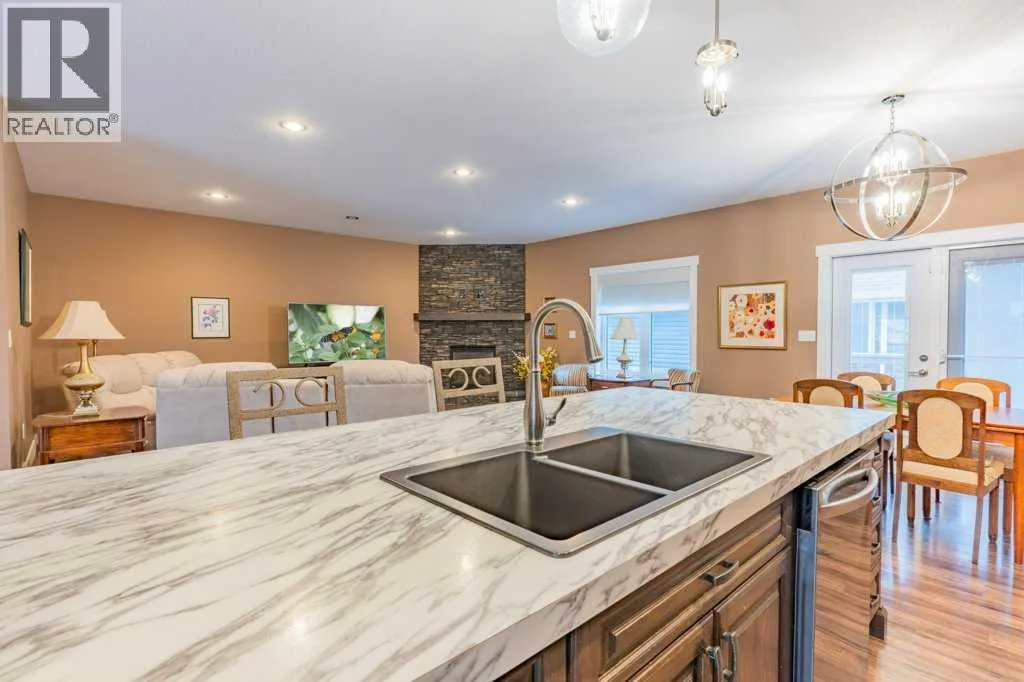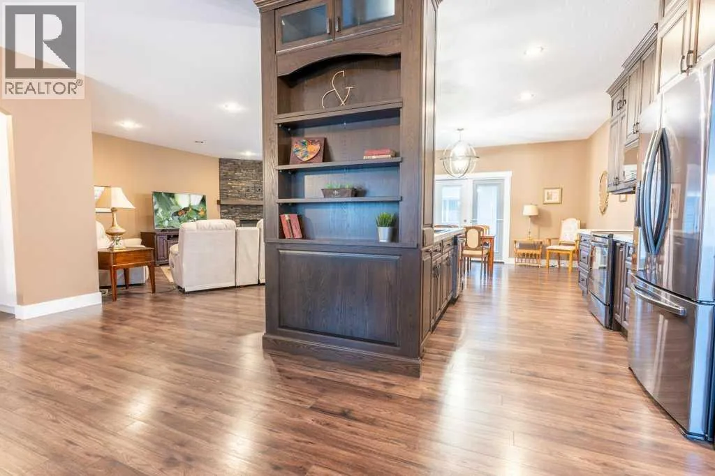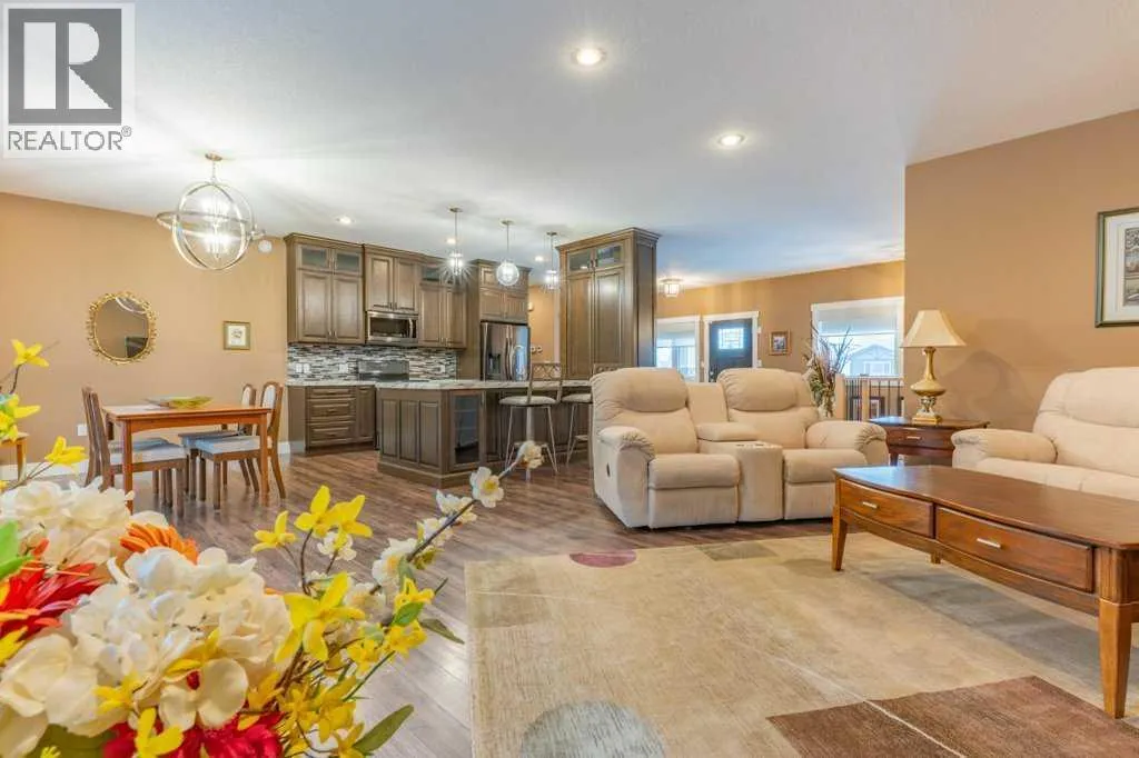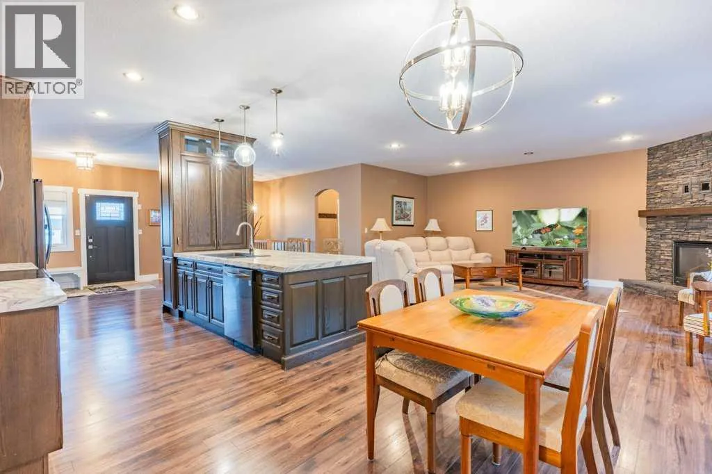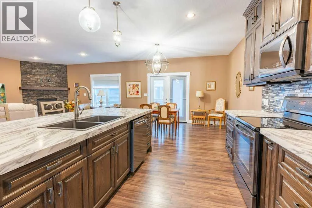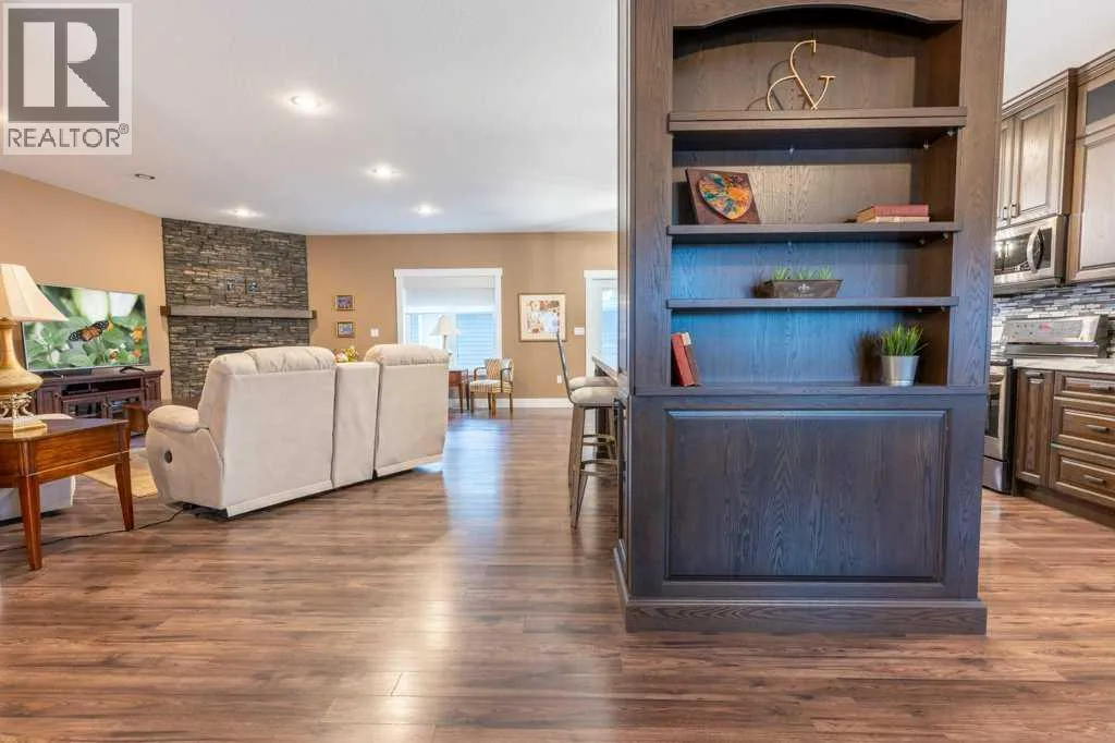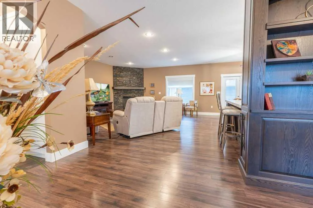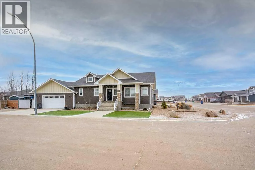 Welcome to this stunning 1578 sq. ft. bungalow located on a corner lot in Westvew Crescent, Bow Island - a former show home by Jade Homes that truly stands out from the rest! From the moment you step inside, you'll be impressed by openness of the layout, starting with the spacious front entryway. Just off the entrance is a bright and functional office, complete with a Murphy bed, perfect for accommodating overnight guests while maintaining everyday workspace convenience. The main floor features a beautiful primary bedroom retreat with a luxurious five-piece en suite, offering comfort and style and a 9 x 4 ft. walk-in closet. The heart of the home is the gorgeous kitchen, showcasing rich dark cabinetry, abundant storage and an open concept design that seamlessly connects the kitchen, dining and living areas. The living room is warm and inviting with a cozy gas fireplace - ideal for relaxing evenings. Also on the main floor you'll find a large rear entrance, with built in cabinets for additional storage, a four piece bathroom and thoughtful design touches throughout that reflect it's show home quality. The fully finished basement offers even more living space with three spacious bedrooms, a generous family room and a dedicated laundry area - perfect for a growing family or hosting guests. The 28'x30' attached heated garage provides ample space for vehicles, storage and projects. Outside, the low maintenance yard is beautifully landscaped with decorative rock and artificial turf, giving you great curb appeal without the upkeep. This exceptional property combines quality craftsmanship, functional design and stylish finishes. A must-see home in Westview Crescent! (id:27476)