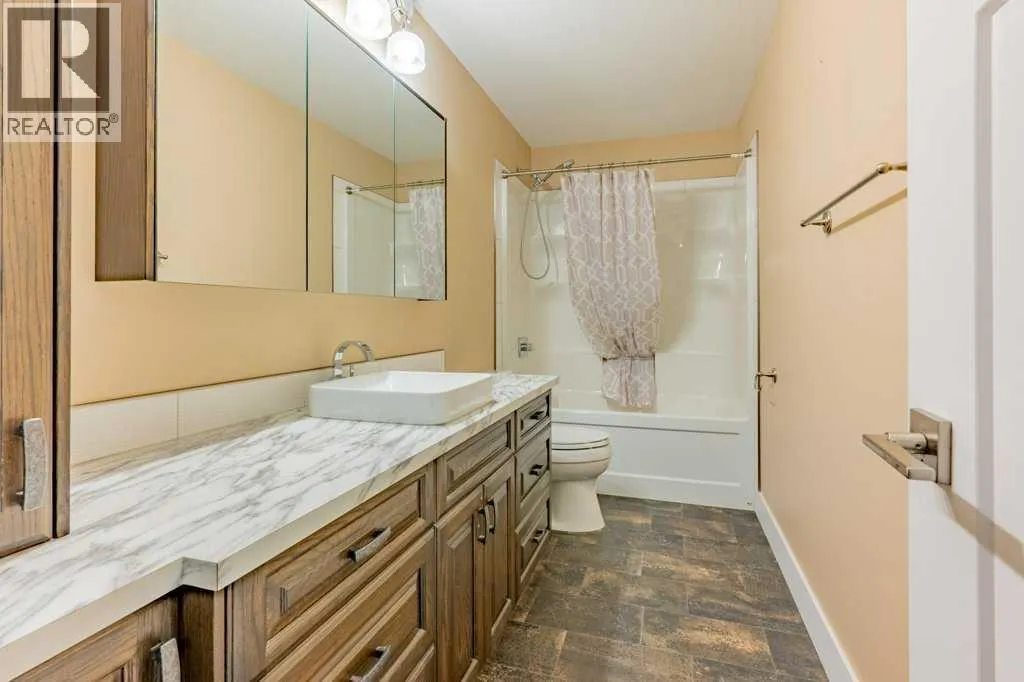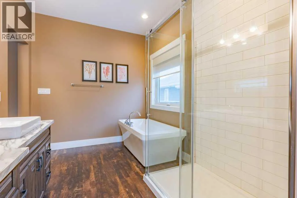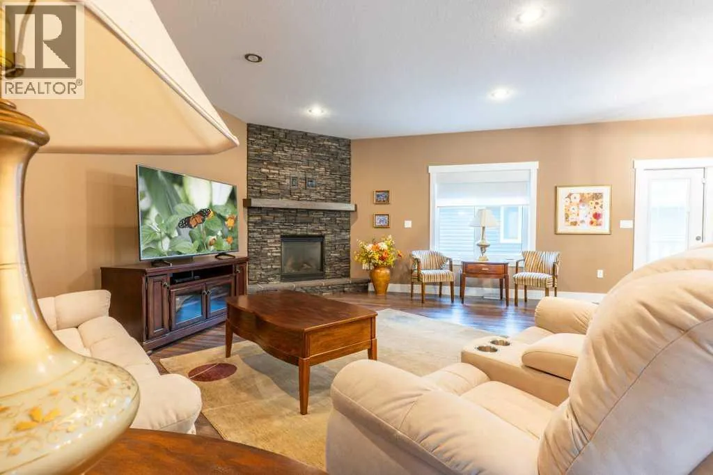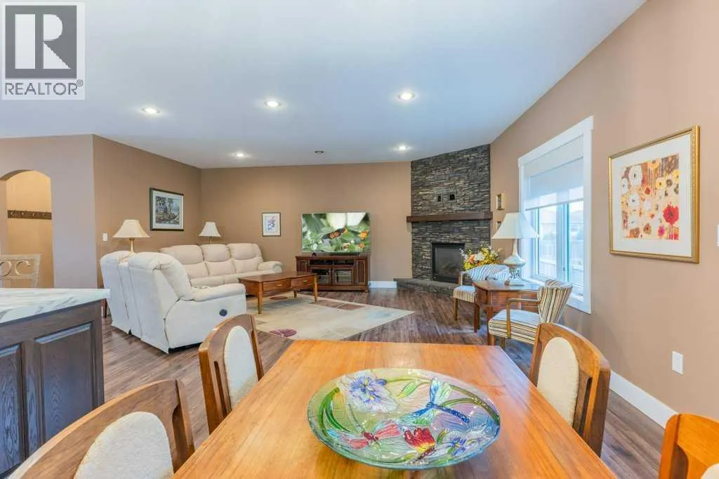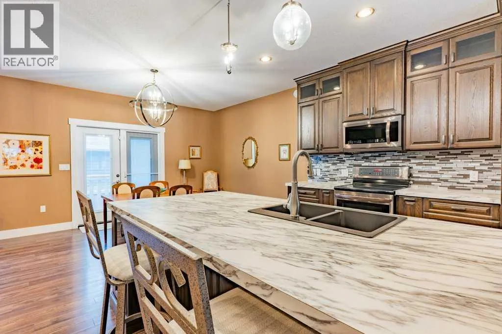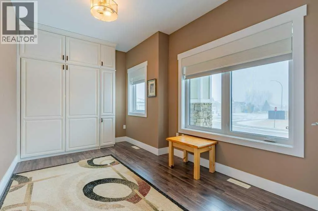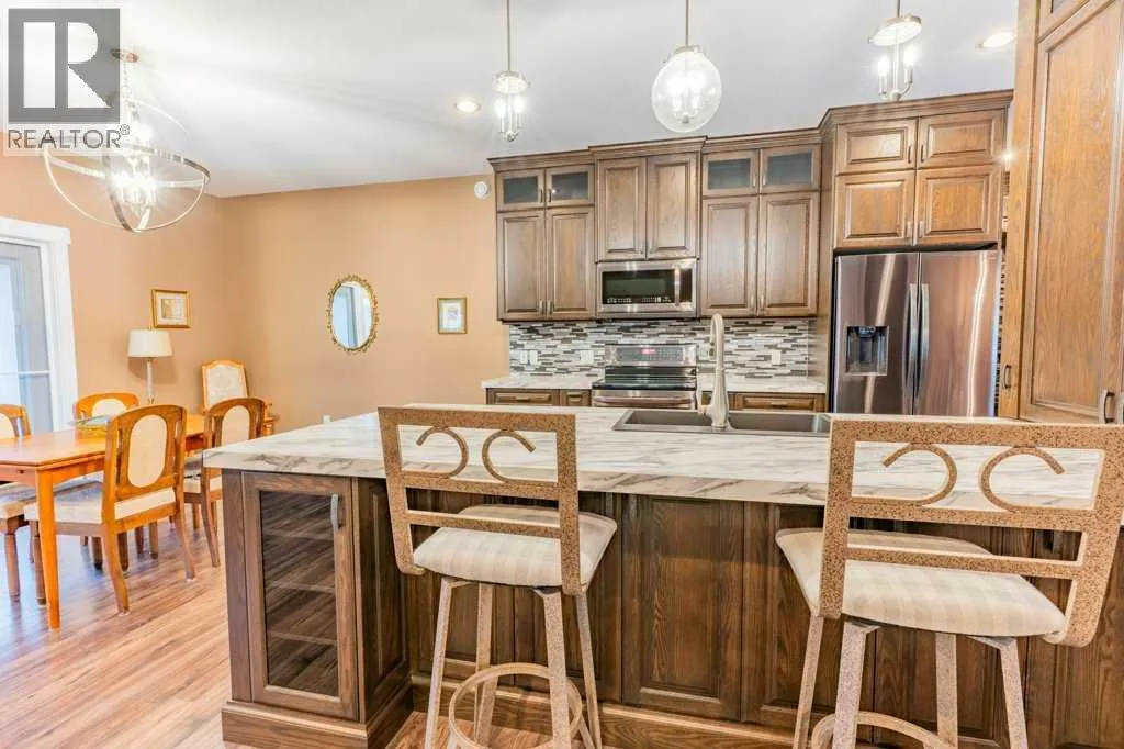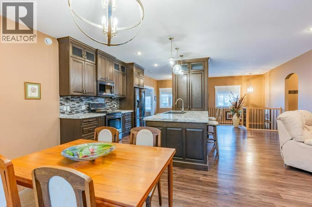 Welcome to this stunning 1578 sq. ft. bungalow located on a corner lot in Westvew Crescent, Bow Island - a former show home by Jade Homes that truly stands out from the rest! From the moment you step inside, you'll be impressed by openness of the layout, starting with the spacious front entryway. Just off the entrance is a bright and functional office, complete with a Murphy bed, perfect for accommodating overnight guests while maintaining everyday workspace convenience. The main floor features a beautiful primary bedroom retreat with a luxurious five-piece en suite, offering comfort and style and a 9 x 4 ft. walk-in closet. The heart of the home is the gorgeous kitchen, showcasing rich dark cabinetry, abundant storage and an open concept design that seamlessly connects the kitchen, dining and living areas. The living room is warm and inviting with a cozy gas fireplace - ideal for relaxing evenings. Also on the main floor you'll find a large rear entrance, with built in cabinets for additional storage, a four piece bathroom and thoughtful design touches throughout that reflect it's show home quality. The fully finished basement offers even more living space with three spacious bedrooms, a generous family room and a dedicated laundry area - perfect for a growing family or hosting guests. The 28'x30' attached heated garage provides ample space for vehicles, storage and projects. Outside, the low maintenance yard is beautifully landscaped with decorative rock and artificial turf, giving you great curb appeal without the upkeep. This exceptional property combines quality craftsmanship, functional design and stylish finishes. A must-see home in Westview Crescent! (id:27476)