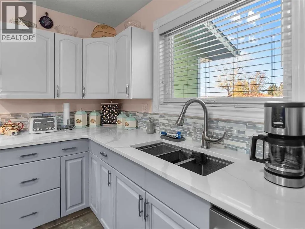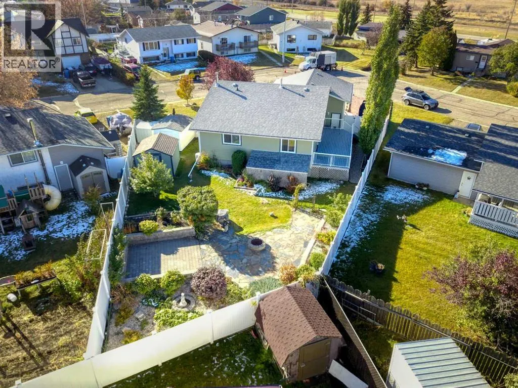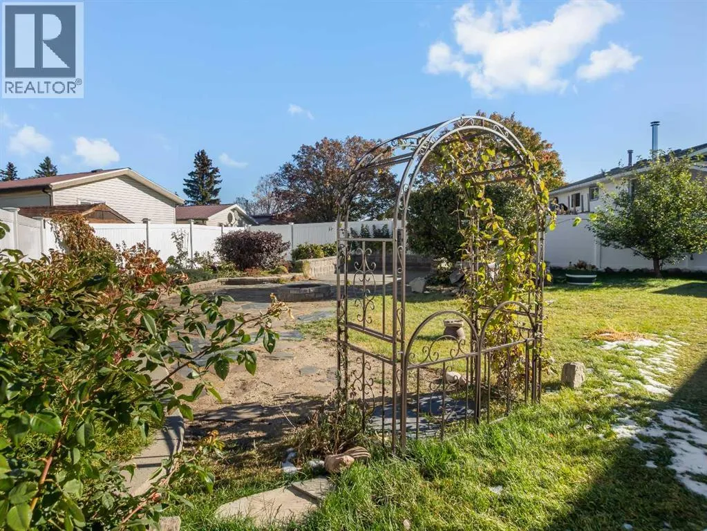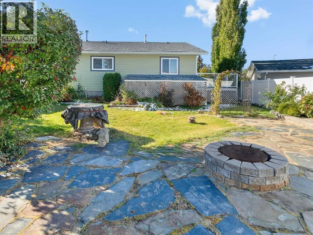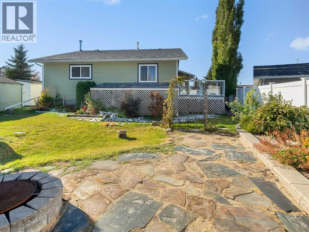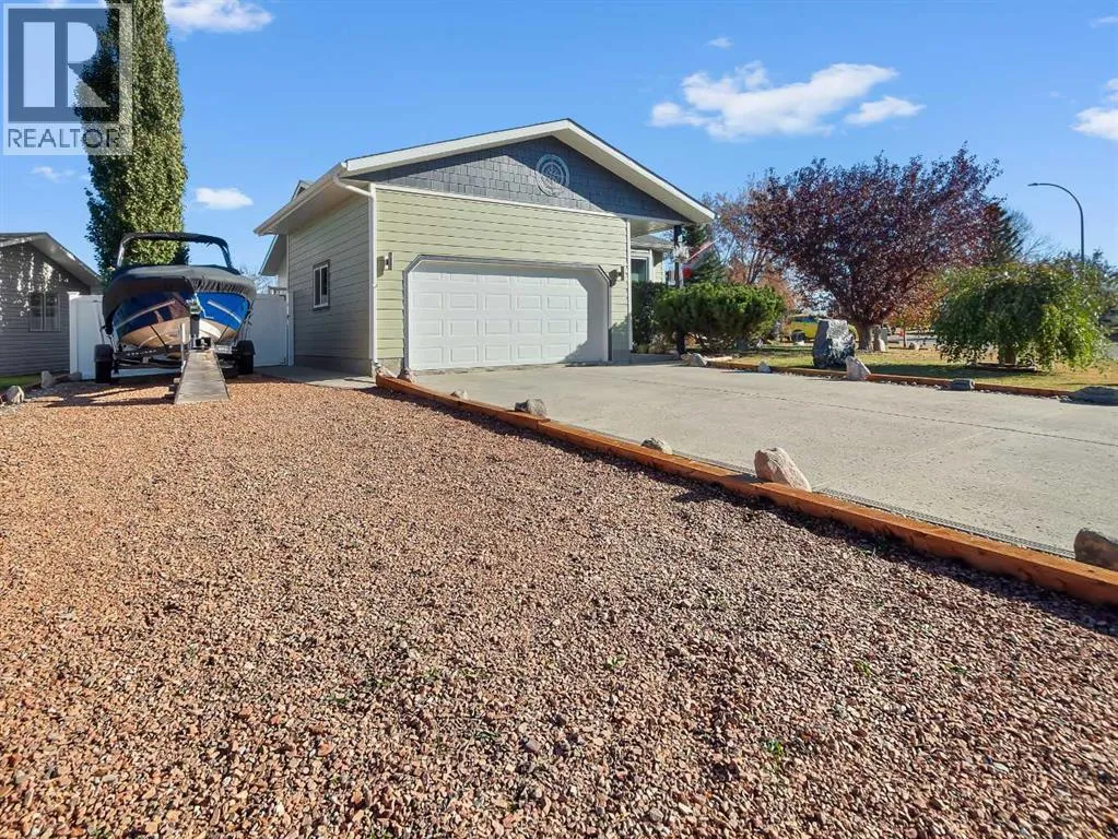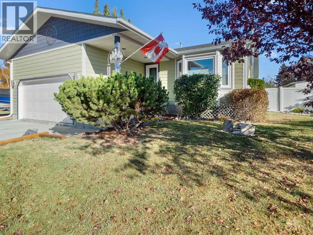 This beautifully updated bungalow in Bowden is located on a family-friendly street and shows true pride of ownership. Offering plenty of finished living space on both levels, the home features a remodelled kitchen with quartz counters and refinished cupboards (2024), updated bathrooms with new vanities, fixtures, sinks, tiles, and toilets (2024), and gorgeous laminate flooring throughout the main floor. The lower level includes a spacious family room with new carpet, ceiling tiles, and lighting, while recent upgrades also include a new furnace (2021), hot water tank (2015), and newer windows and doors. Outside, the property has been extensively improved with Hardie board siding, soffit, fascia, eavestroughs, shingles (2022), and a new garage door, plus a landscaped yard with slate rock, brickwork, fruit trees, and perennials, all enclosed by a vinyl fence (2024). A 10' x 30' deck with glass railing and lights is perfect for entertaining, and three sheds provide extra storage, while RV parking adds convenience. This move-in-ready home truly combines modern updates with timeless charm. (id:27476)