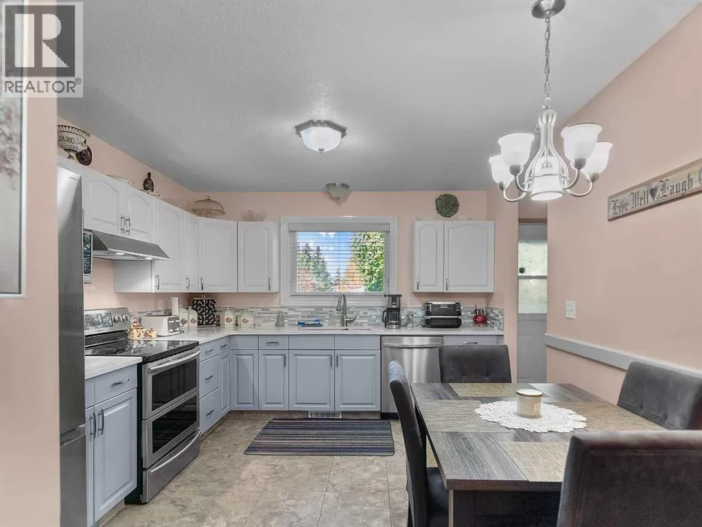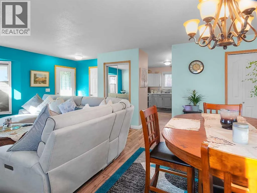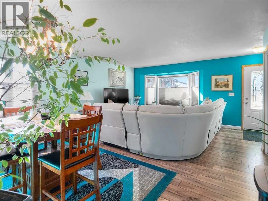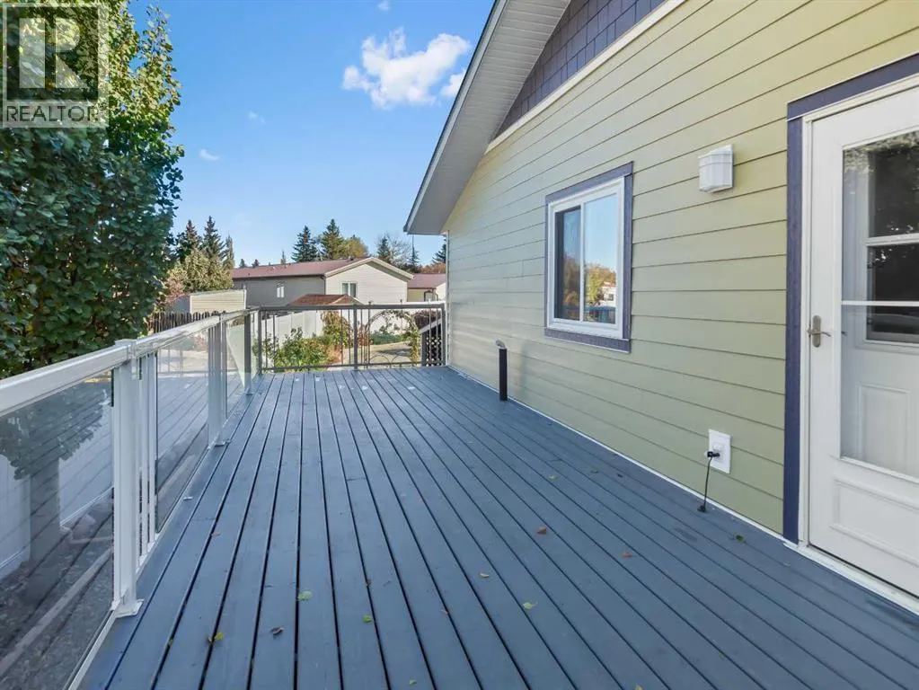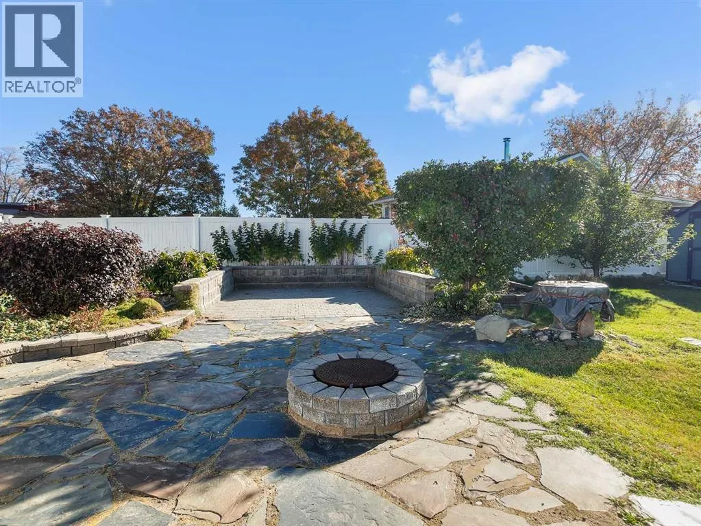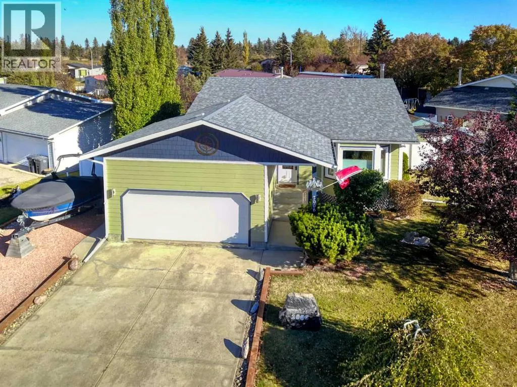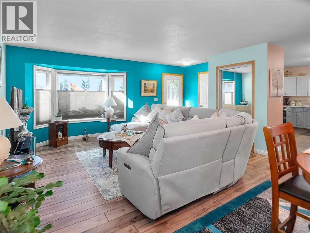 This beautifully updated bungalow in Bowden is located on a family-friendly street and shows true pride of ownership. Offering plenty of finished living space on both levels, the home features a remodelled kitchen with quartz counters and refinished cupboards (2024), updated bathrooms with new vanities, fixtures, sinks, tiles, and toilets (2024), and gorgeous laminate flooring throughout the main floor. The lower level includes a spacious family room with new carpet, ceiling tiles, and lighting, while recent upgrades also include a new furnace (2021), hot water tank (2015), and newer windows and doors. Outside, the property has been extensively improved with Hardie board siding, soffit, fascia, eavestroughs, shingles (2022), and a new garage door, plus a landscaped yard with slate rock, brickwork, fruit trees, and perennials, all enclosed by a vinyl fence (2024). A 10' x 30' deck with glass railing and lights is perfect for entertaining, and three sheds provide extra storage, while RV parking adds convenience. This move-in-ready home truly combines modern updates with timeless charm. (id:27476)