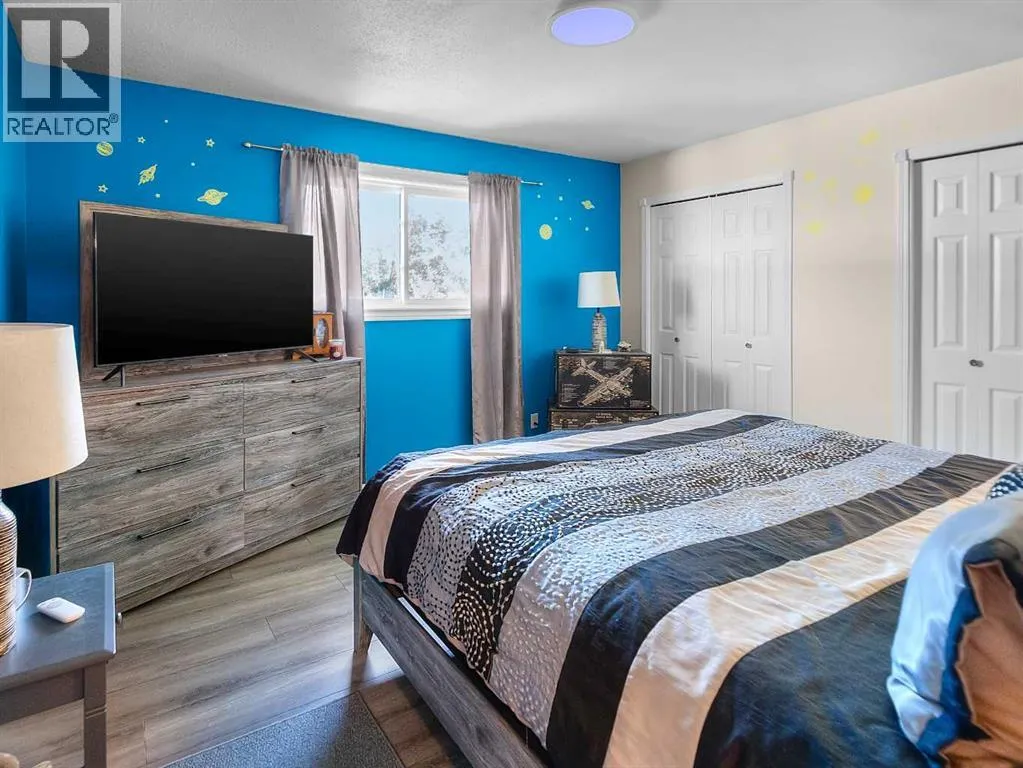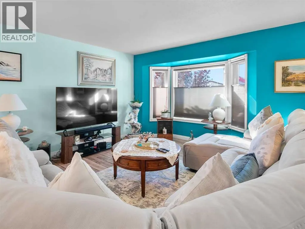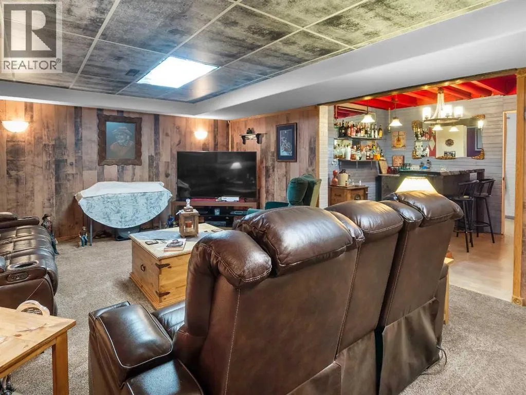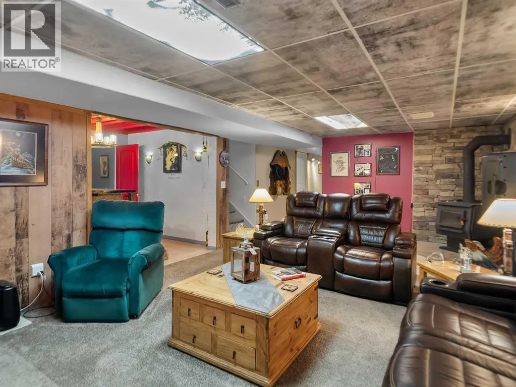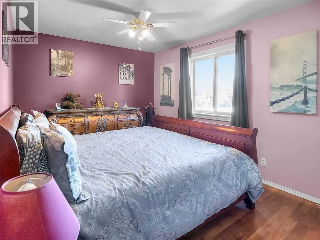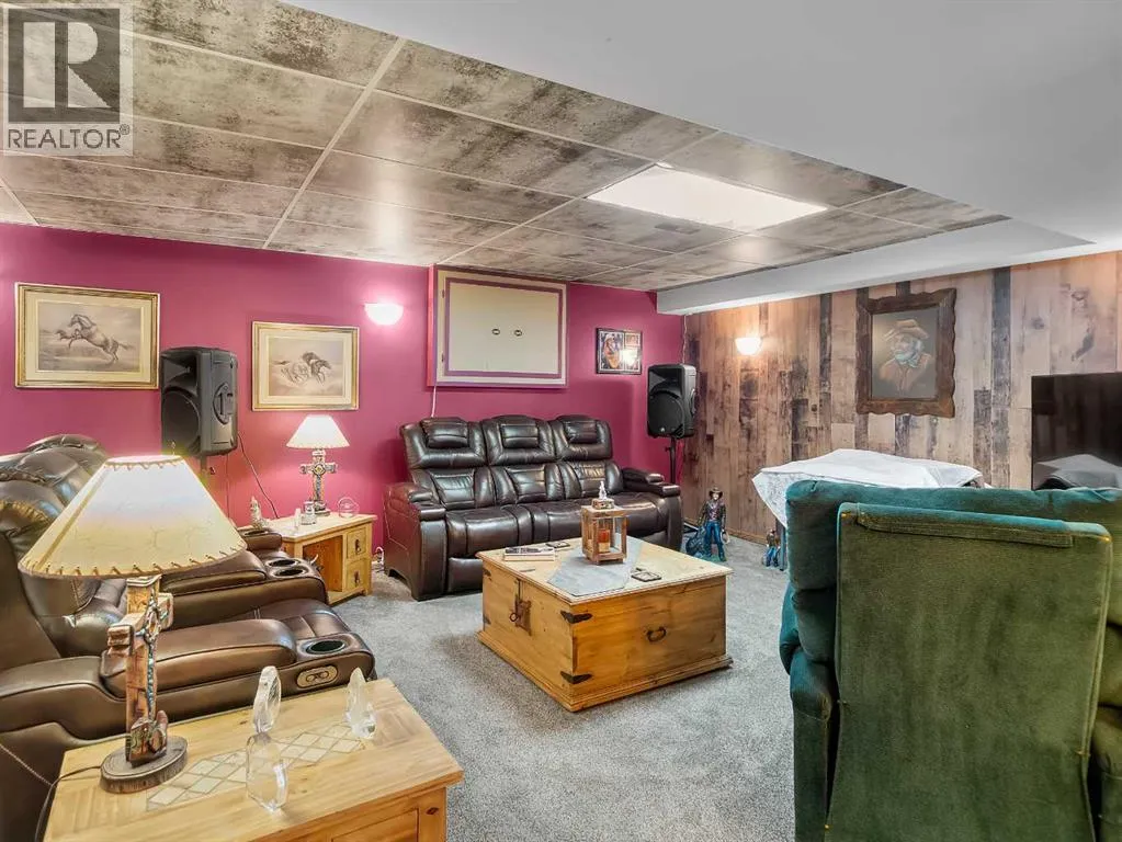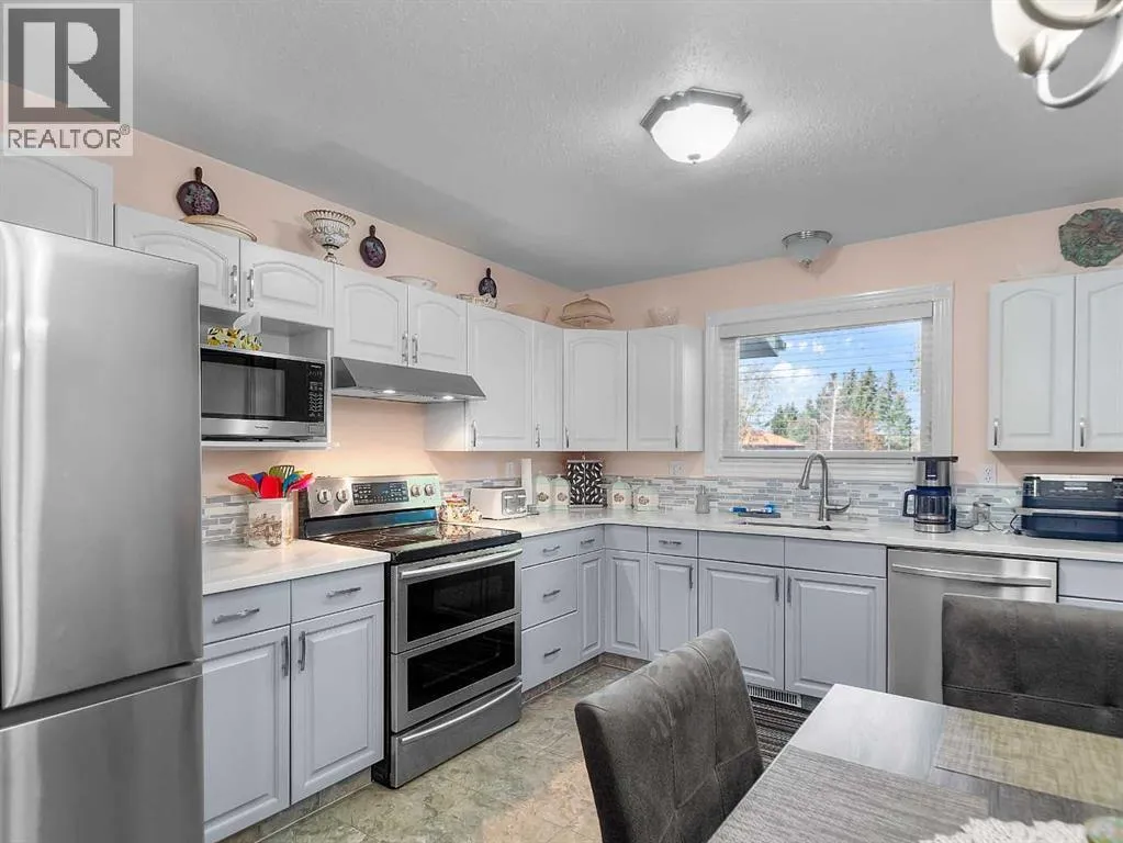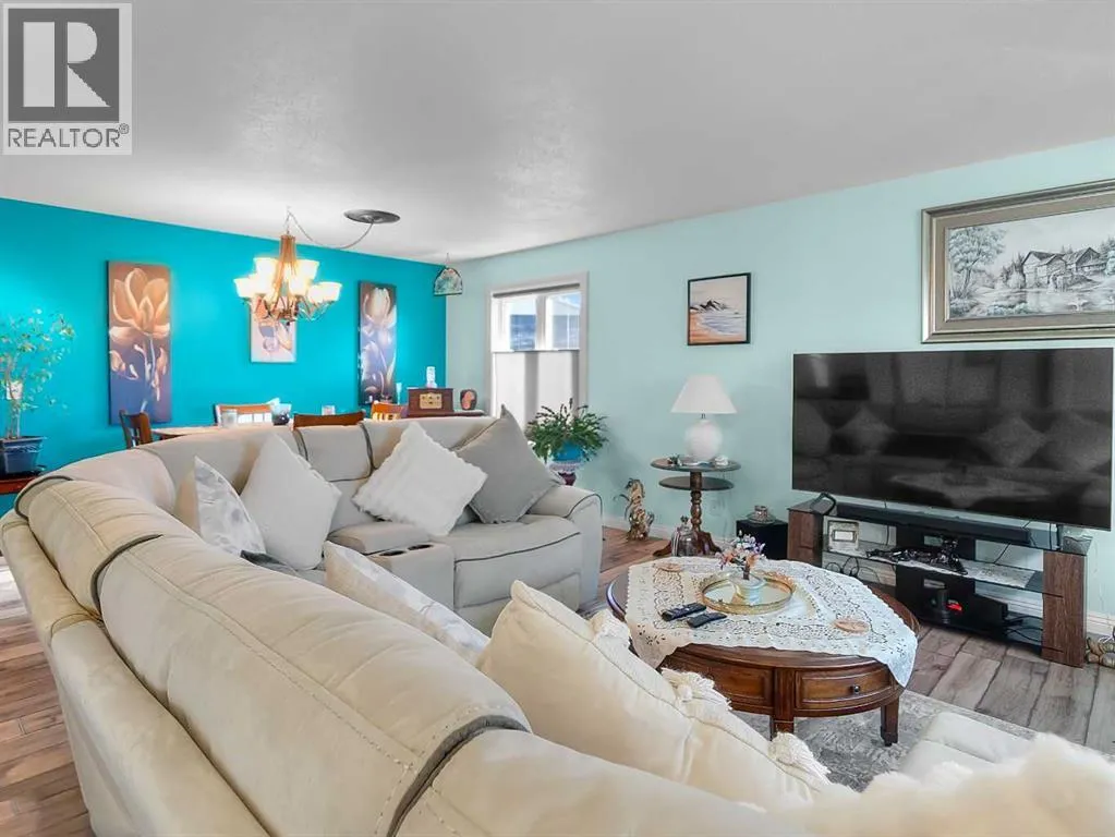 This beautifully updated bungalow in Bowden is located on a family-friendly street and shows true pride of ownership. Offering plenty of finished living space on both levels, the home features a remodelled kitchen with quartz counters and refinished cupboards (2024), updated bathrooms with new vanities, fixtures, sinks, tiles, and toilets (2024), and gorgeous laminate flooring throughout the main floor. The lower level includes a spacious family room with new carpet, ceiling tiles, and lighting, while recent upgrades also include a new furnace (2021), hot water tank (2015), and newer windows and doors. Outside, the property has been extensively improved with Hardie board siding, soffit, fascia, eavestroughs, shingles (2022), and a new garage door, plus a landscaped yard with slate rock, brickwork, fruit trees, and perennials, all enclosed by a vinyl fence (2024). A 10' x 30' deck with glass railing and lights is perfect for entertaining, and three sheds provide extra storage, while RV parking adds convenience. This move-in-ready home truly combines modern updates with timeless charm. (id:27476)