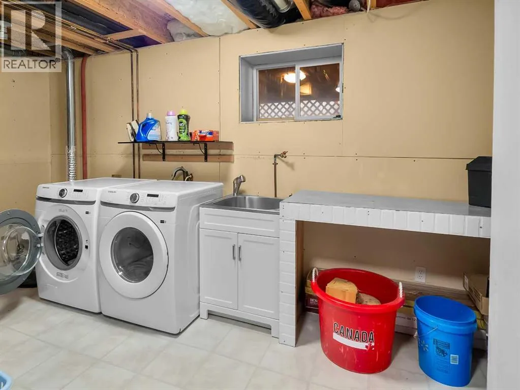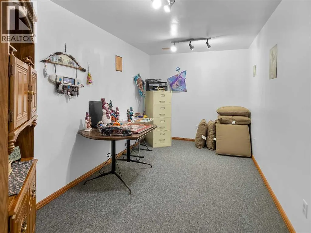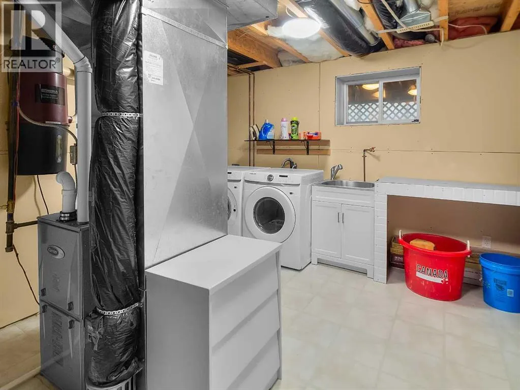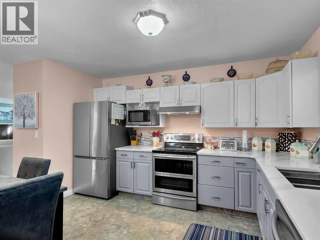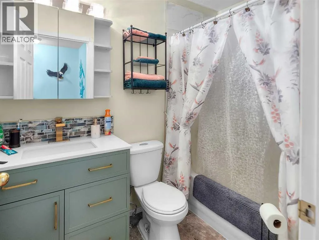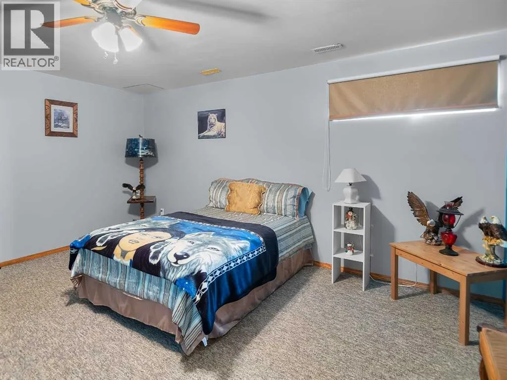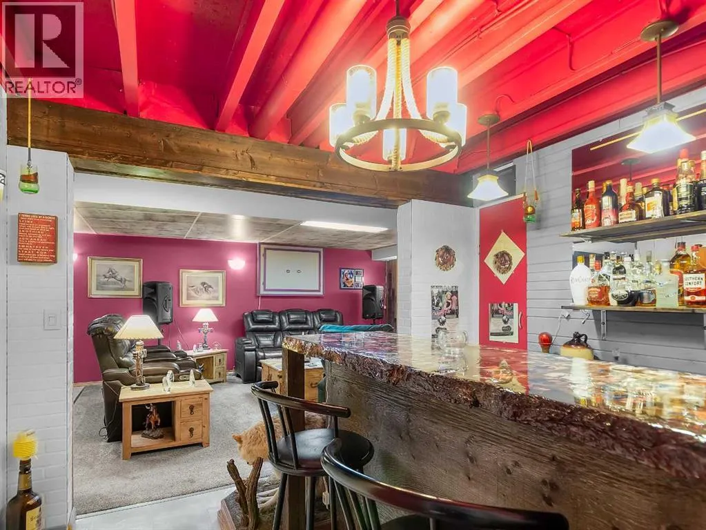 This beautifully updated bungalow in Bowden is located on a family-friendly street and shows true pride of ownership. Offering plenty of finished living space on both levels, the home features a remodelled kitchen with quartz counters and refinished cupboards (2024), updated bathrooms with new vanities, fixtures, sinks, tiles, and toilets (2024), and gorgeous laminate flooring throughout the main floor. The lower level includes a spacious family room with new carpet, ceiling tiles, and lighting, while recent upgrades also include a new furnace (2021), hot water tank (2015), and newer windows and doors. Outside, the property has been extensively improved with Hardie board siding, soffit, fascia, eavestroughs, shingles (2022), and a new garage door, plus a landscaped yard with slate rock, brickwork, fruit trees, and perennials, all enclosed by a vinyl fence (2024). A 10' x 30' deck with glass railing and lights is perfect for entertaining, and three sheds provide extra storage, while RV parking adds convenience. This move-in-ready home truly combines modern updates with timeless charm. (id:27476)