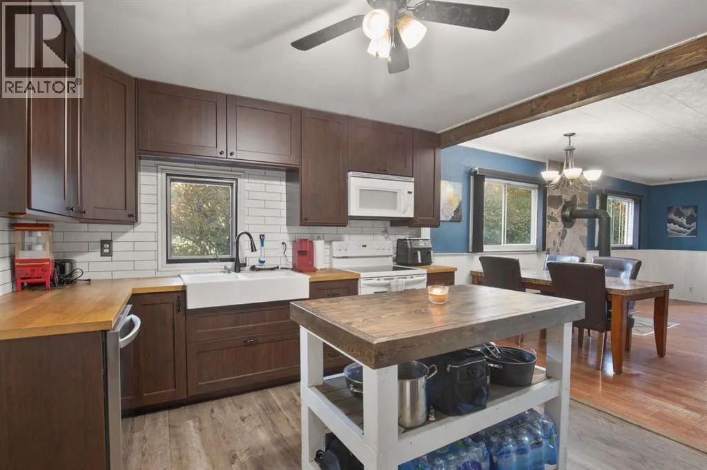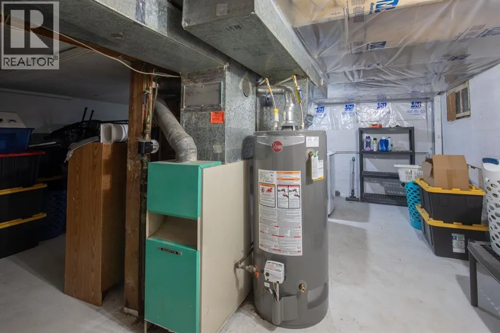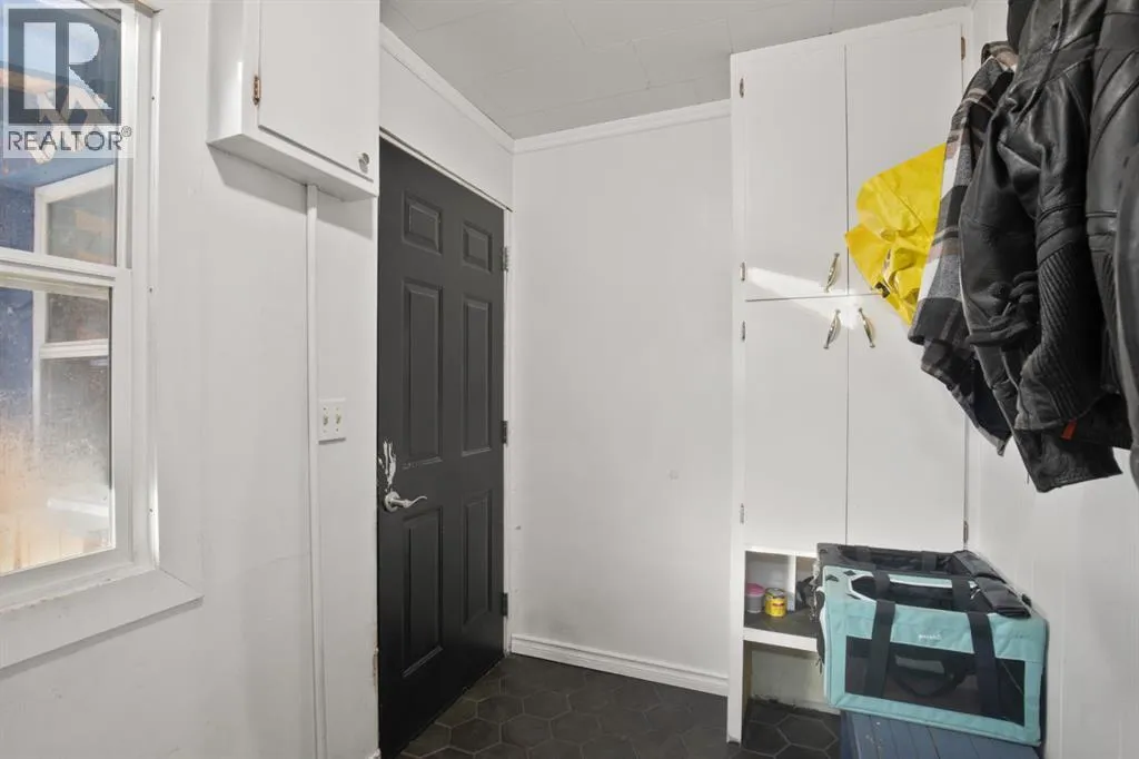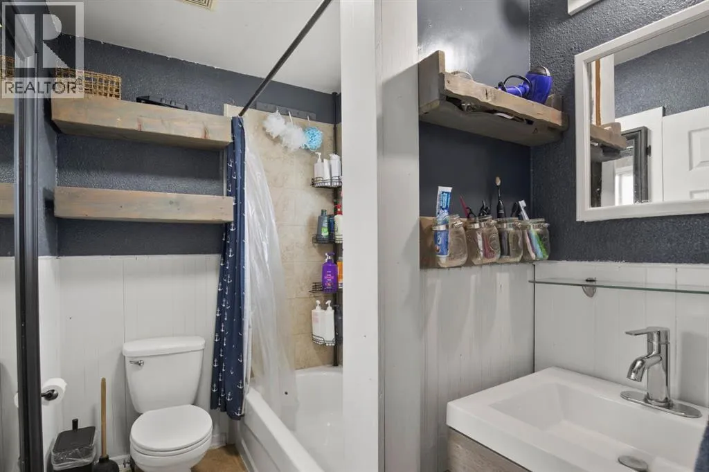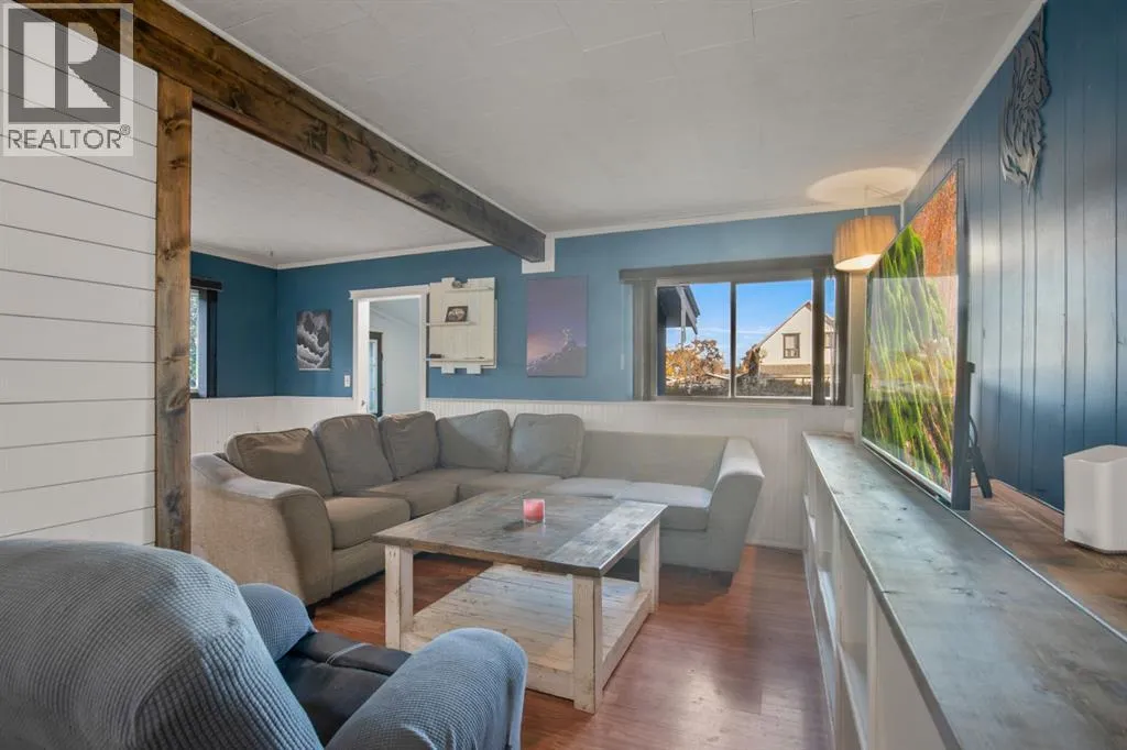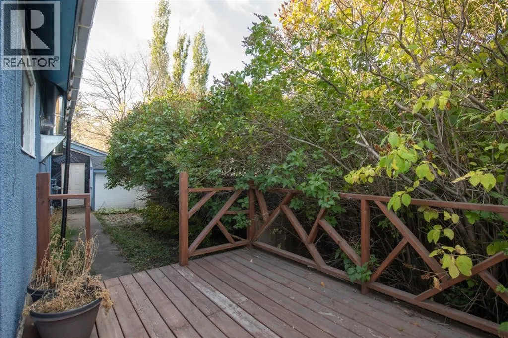 This charming 1946 bungalow blends timeless character with thoughtful modern updates, set on a spacious 6,000 sq ft lot in the heart of Bowden. Framed by mature hedges for privacy, the home welcomes you with a west-facing front deck and a generous entry foyer. Inside, the open-concept dining area flows into both the updated kitchen and cozy living room. Rustic wood beams and a wood-burning stove with a striking stone mosaic surround create a warm, inviting atmosphere.The kitchen features dark cabinetry, a modern white pantry, butcher-block countertops, a farmhouse sink, tile backsplash, a centre island, and an almost-new dishwasher. Three bedrooms, including a spacious primary, and a fully updated 4-piece bathroom complete the main floor. Recent updates include a new washer and dryer, new central vacuum system, re-shingled front porch, furnace servicing, and a new hot water tank. An upgraded electrical panel and service are also planned.Out back, a fully enclosed breezeway connects to a single detached garage and a large storage room. The south-facing backyard is fully fencedâideal for pets, gardening, or simply relaxing in the sun. A rear parking pad provides extra room for vehicles, a trailer, or RV. The durable metal roof on the main house adds long-term peace of mind, and the Bowden Golf Course is just a short walk away. A great opportunity for first-time buyers, investors, or anyone looking for a move-in-ready home with character, comfort, and lasting value. (id:27476)