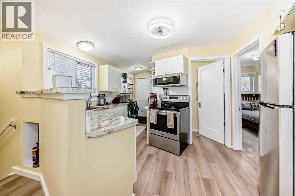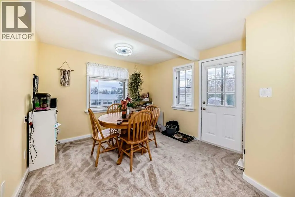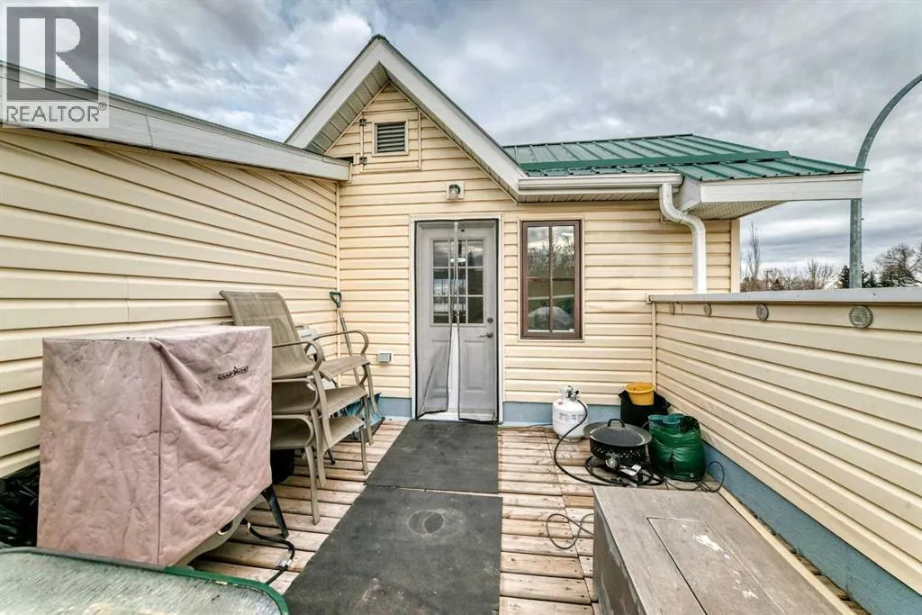 Welcome to this bright and inviting character home on Main Street in Bowden â a charming up-and-down DUPLEX perfectly positioned for small-town living with easy access to the QEII Highway, just minutes from both Red Deer and Calgary. Built in 1926, this home carries a unique piece of Bowdenâs history, with the garage once serving as the original Bowden Fire Hall and the main floor formerly home to a store and barber shop. Extensively RENOVATED in 2011, both the home and GARAGE now blend timeless character with modern comfort and solid craftsmanship throughout. This distinctive property features two self-contained one-bedroom units, each offering its own style and comfort â ideal for extended family living, or a live-and-work setup. THE UPPER UNIT ( B) offers just over 720 sq. ft. of bright, spacious living, FULLY RENOVATED IN 2024 to showcase modern finishes and a warm, contemporary aesthetic. It includes a new hot water tank (installed in November 2025), a large 10x15 private East facing deck, perfect for morning coffee or evening relaxation with panoramic views of the town and surrounding countryside, one bedroom, and one full bathroom. Off the back deck, you can see the mountains to the West on a clear day. Thoughtfully designed with an open-concept layout, the space captures abundant natural light while maintaining its charming character. THE LOWER UNIT (A) features approximately 890 sq. ft. of comfortable, accessible single-level living. It is completely WHEELCHAIR accessible, with a barrier-free kitchen and bathroom, including a pull-up stove, lowered countertops, and a roll-in shower with open flooring and drain system. Cozy and well-maintained, unit offers one bedroom, one bathroom, and a functional, inviting layout designed for ease and comfort. Each unit has two separate entrances, its own furnace and hot water tank, ensuring privacy and independence. A shared laundry area with a new washer and dryer is conveniently located on the main floor, while the ba sement offers additional storage. The generous 50' x 120' lot is enhanced with mature trees, gravel landscaping, and partial fencing for a low-maintenance yard. The double detached garage â once the townâs fire hall â provides ample parking and space for RV storage, and the durable METAL ROOF ensures minimal upkeep and long-term value. An interior doorway connects both units, allowing flexibility to use the home as one large family residence or maintain it as two separate units. Both units are currently fully rented, making this property a fantastic turnkey investment opportunity. Whether youâre seeking a residence with a low-maintenance rental property, this character home stands as a true gem in the heart of Bowden â rich in history, charm, and opportunity. (id:27476)