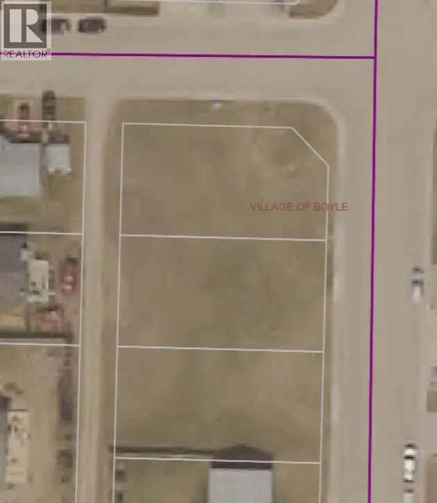 Welcome to the Village of Boyle! This bare residential lot offers a fantastic opportunity to build your dream home or investment property in a quiet, family-friendly community. Ideally located, this lot is part of a grouping—two adjacent lots are also available for sale, allowing for expanded development potential or a larger private space.Boyle is a welcoming village just 90 minutes north of Edmonton, known for its small-town charm, strong community spirit, and easy access to beautiful outdoor spaces like Long Lake Provincial Park. Enjoy local amenities including schools, healthcare, shopping, and recreation—all within a supportive and growing community.Whether you're building new or investing for the future, this is a chance to become part of a great Alberta village with plenty of upside. Buy one, two, or all three lots—your choice! (id:27476)