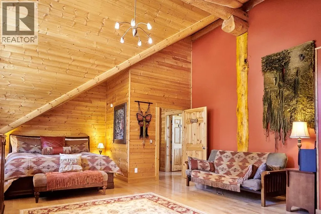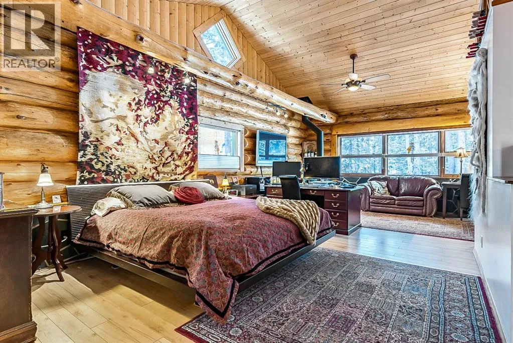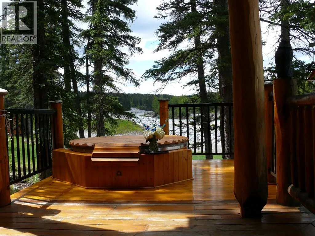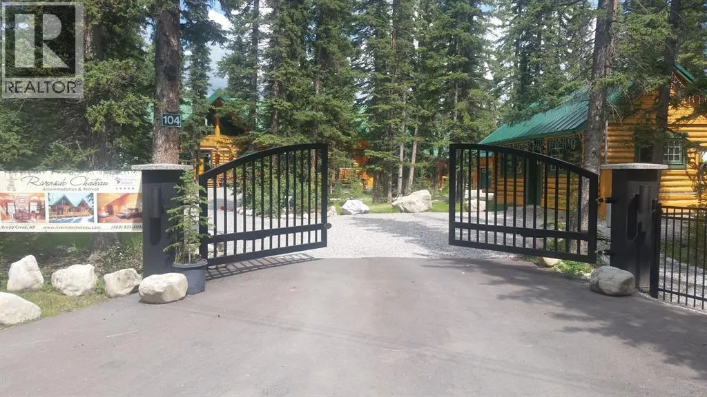 Rare lifestyle at the foothills of The Canadian Rocky Mountains. Only 30 min. drive to Calgary downtown. Welcome to the 104 White Ave. property, a unique 1.34-acre contemporary log home country estate nestled between the hamlet of Bragg Creek and Bragg Creek Provincial Park within walking distance to both and bordering 16 acres environmental reserve along Elbow River. The Douglas fir log elegant manor home features 6+1 bedrooms including 3 en-suites, a self-contained bachelor with separate entry and featuring in-floor heating and wood-burning stove, and a separate kitchenette living space above the detached 3-car garage. The bright & elegant 5000 sf south-western exposure main lodge features an impressive 26â vaulted ceiling with river rock stone masonry/indoor gas fireplace, maple hardwood floors throughout, a pair of stained glass doors, gourmet Chefâs Alder kitchen with granite countertops, stainless steel appliances/gas range and an impressive granite 9âx 3â kitchen island. Underneath the entire main house runs heated concrete crawling space (5â height). In addition, there is a fully restored & electrified 1927 vintage cabin with water rough-in and adjacent storage shed. The house is connected to the townsite water/sewer system and it is supplied by tankless/on-demand water heater. There is a separate/emergency back-up cistern system/septic tank. This R-URB zoned trophy property is within coveted commercial designation; it has a potential to serve as a unique multi-generation family home. The forested parcel has direct access to the low bank Elbow River/pebble beach, is protected by the newly constructed dyke, features detached infrared heated 3-car garage with 220V outlet for EV car charger, newly professionally surfaced asphalt driveway and spacious guest parking area, wrap-around veranda with a river rock stones masonry outdoor gas fireplace, outdoor 6-person deep-soak cedar jacuzzi tub, 4-person wet sauna, fire pit, commercial 200 Amps main electric panel. T his is your rare opportunity to capitalize on various life opportunities at the very footsteps of pristine Kananaskis Country and in the thriving Bragg Creek hamlet. Showings are by appointment only. (id:27476)