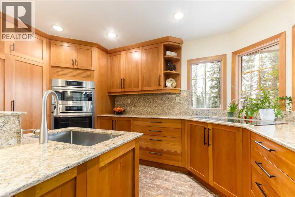 **OPEN HOUSE Saturday, November 15th 2-4 pm** Opportunities like this are rarely offered. Set on 19.52 acres of untouched West Bragg Creek wilderness, backing directly onto the vast expanse of Kananaskis Country, this property represents one of the few remaining chances to own land of this scale, privacy, and natural beauty. Tucked deep within a private sanctuary, where the rhythm of the forest replaces the noise of the city, this walk-out bungalow feels less like a house and more like an invitation to live differently. Mornings start quietly here. The first blush of sunrise spills into the east-facing breakfast nook, casting warm light across treetops as deer wander unhurriedly past your windows. With the West Bragg Creek trail system just minutes from your doorstep, this is a landscape designed for the outdoor soul: bike at dawn, cross-country ski at noon, hike until the sky turns gold, then be home within moments. Inside, the home features a thoughtful custom kitchen renovation by Bragg Creek artisan Vertex Carpentry - a true celebration of local craftsmanship. Cherry-wood cabinetry is paired with quartz counters and a full suite of professional-grade appliances. Hidden among the woodwork are clever, custom-built storage solutions and tailored organizational details, making the space as functional as it is beautiful. A bakerâs dream is found in the dual built-in wall ovens (steam + convection), the 5-burner induction cooktop, and the whisper-quiet dishwasher, bringing both artistry and intention to everyday living. The main level unfolds through an open living and dining area wrapped in windows, framing the forest as living artwork. A versatile bedroom on this level offers flexibility, serving beautifully as a home office, studio, or quiet reading retreat. Below, the walk-out level offers three additional spacious bedrooms - one currently used as a home gym. The oversized primary suite provides a generous walk-in closet and private ensuite, creating a retreat tha t feels grounding and serene. Though the Hamlet of Bragg Creek is only a short drive away, the feeling here is unmistakably private - quiet, wild, and deeply connected to nature. This is more than a home. It is a once-in-a-generation opportunity to own a rare stretch of land along the edge of Kananaskis Country - your own piece of nature's paradise, waiting to be lived in. (id:27476)