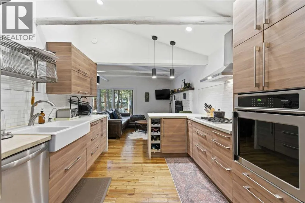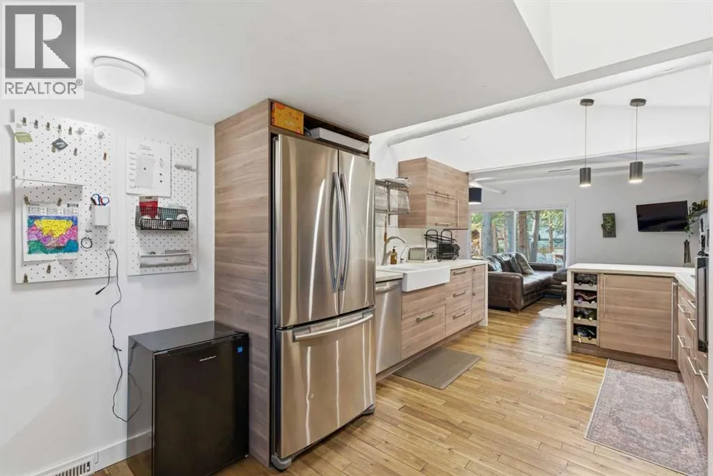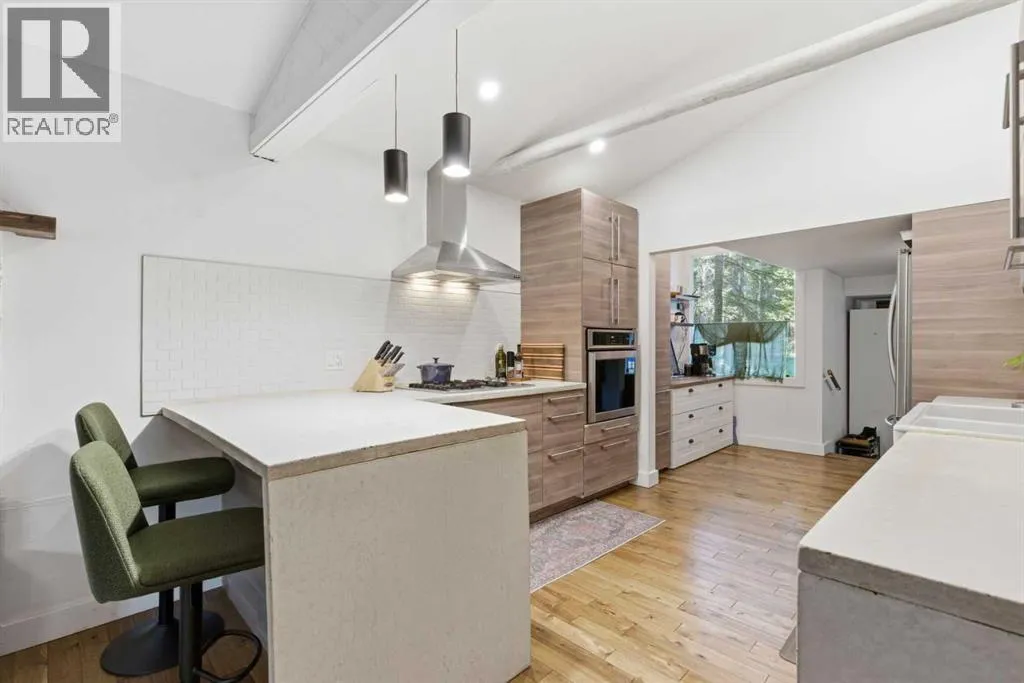 Discover exceptional privacy and natural beauty in the heart of Bragg Creek. Tucked away on a serene one-acre parcel, this charming property offers the perfect blend of peaceful country living and modern convenienceâjust a short walk to the river, pathways, shops, and restaurants. And a quick 20-minute commute to Calgary. Thoughtfully updated over the years, the home features a welcoming main floor with a newer kitchen showcasing stainless steel appliances, abundant workspace, and warm cabin-inspired details that honor the propertyâs history. A sun-filled flex room with patio access provides an ideal office or creative space, while a separate main-floor area with its own entrance and full bath offers a perfect retreat for guests. Upstairs, three comfortable bedrooms and a NEW 5-piece bath provide a quiet place to unwind. Whether enjoying morning coffee on the deck or entertaining in the spacious yard, youâll feel immersed in nature while remaining connected to all that this vibrant hamlet has to offer. With a brand new double detached garage and new municipal water and sewer connections, this is more than a homeâitâs a gateway to the unmatched lifestyle, outdoor adventure, and community spirit of Bragg Creek. (id:27476)